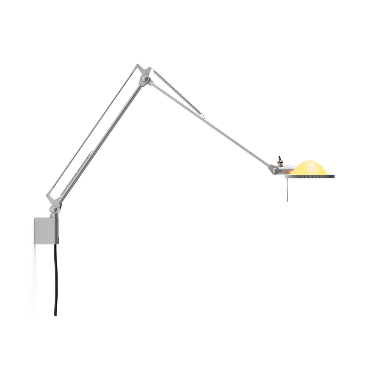 Dostępna w dwóch rozmiarach – z ramionami 45x45 cm lub 30x30 cm – oraz w różnych wariantach kolorystycznych, Berenice pozwala na dopasowanie do indywidualnych preferencji. Metalowy reflektor występuje w wersji aluminiowej, czarnej lub mosiężnej, a szklane wersje oferują odcienie różu, bieli, zieleni i żółci. Lampa jest niezwykle praktyczna i zajmuje minimalną przestrzeń, co czyni ją idealnym rozwiązaniem do małych pomieszczeń, sypialni czy gabinetów.