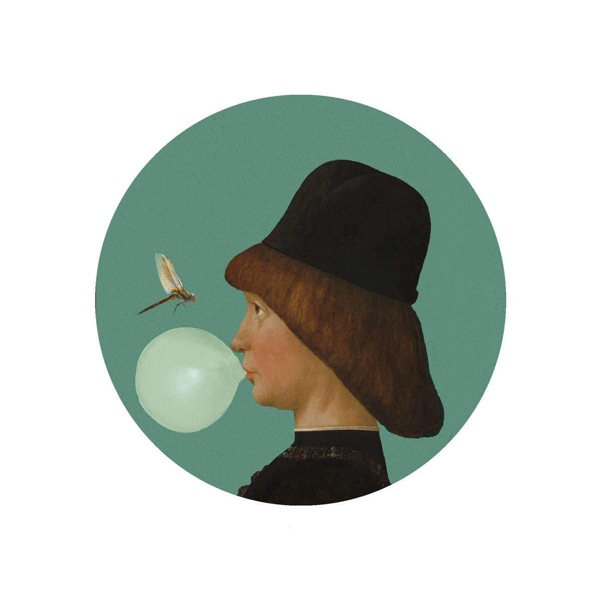 Mural w kształcie koła DOTS - BOY AND DRAGONFLY zielony