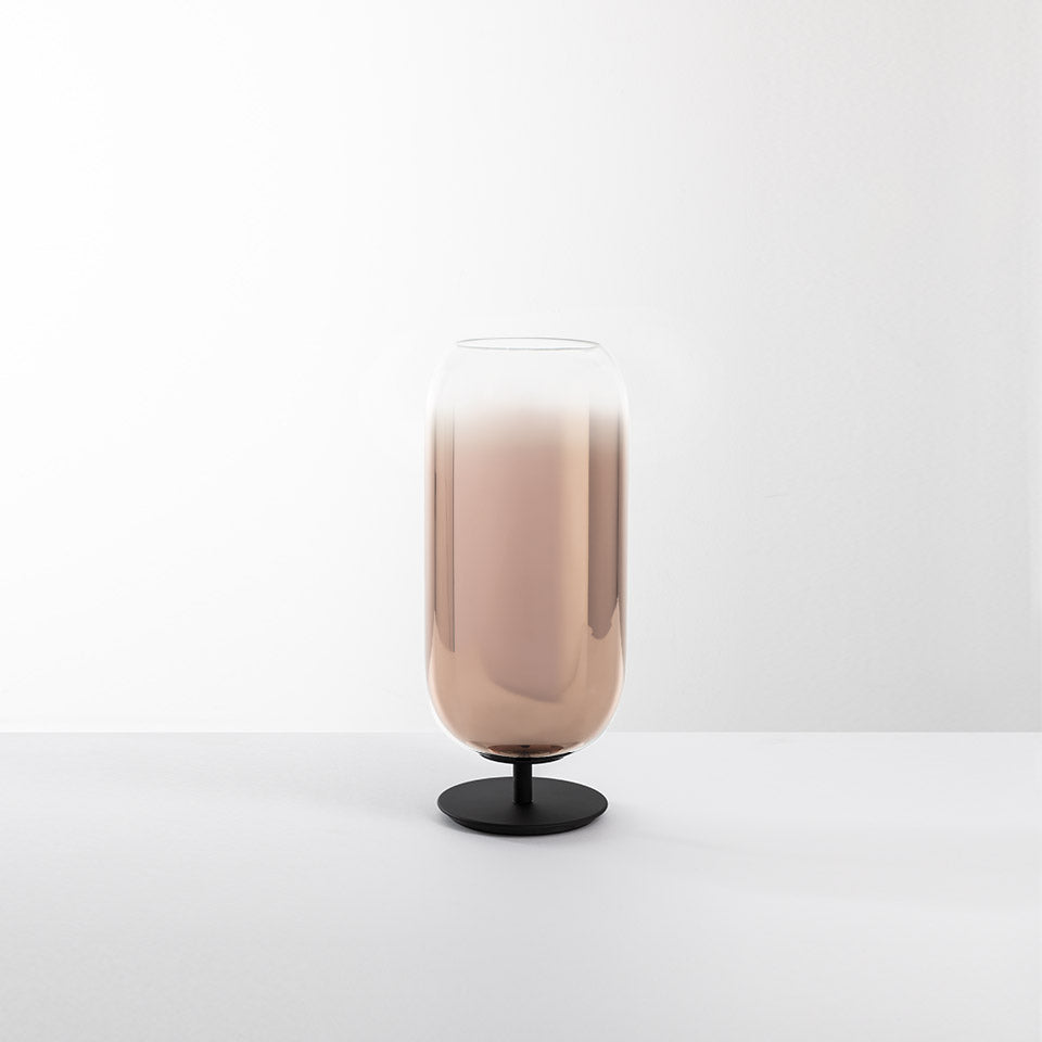 Lampa stołowa Gople to połączenie szlachetnego rzemiosła i nowoczesnego designu. Jej charakterystyczny kształt i ręcznie dmuchane szkło sprawiają, że każda sztuka jest unikatowa. Wersja biała powstaje w oparciu o tradycyjną wenecką technikę łączenia białego szkła z kryształem, co daje wyjątkowo elegancki efekt. Designerska lampa stołowa Gople w kolorze niebieskim, miedzianym, brązowym lub srebrnym pokrywana jest ekologiczną powłoką metaliczną metodą PVD – technologią, która nie obciąża środowiska, eliminując emisje kwasu siarkowego czy cyjanków.