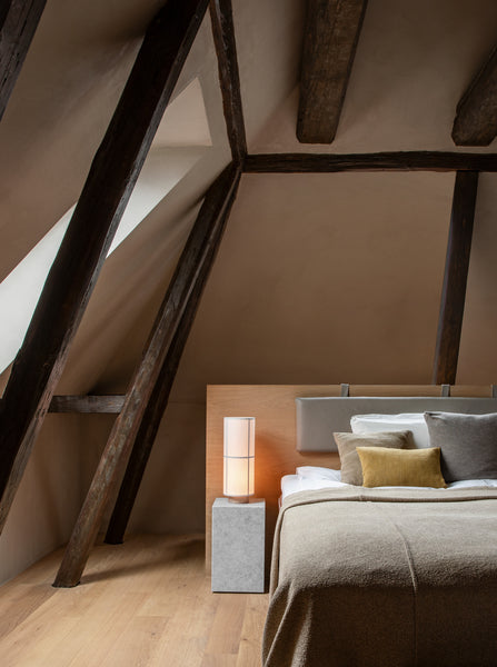 Lampa stołowa HASHIRA len z jesionową podstawą