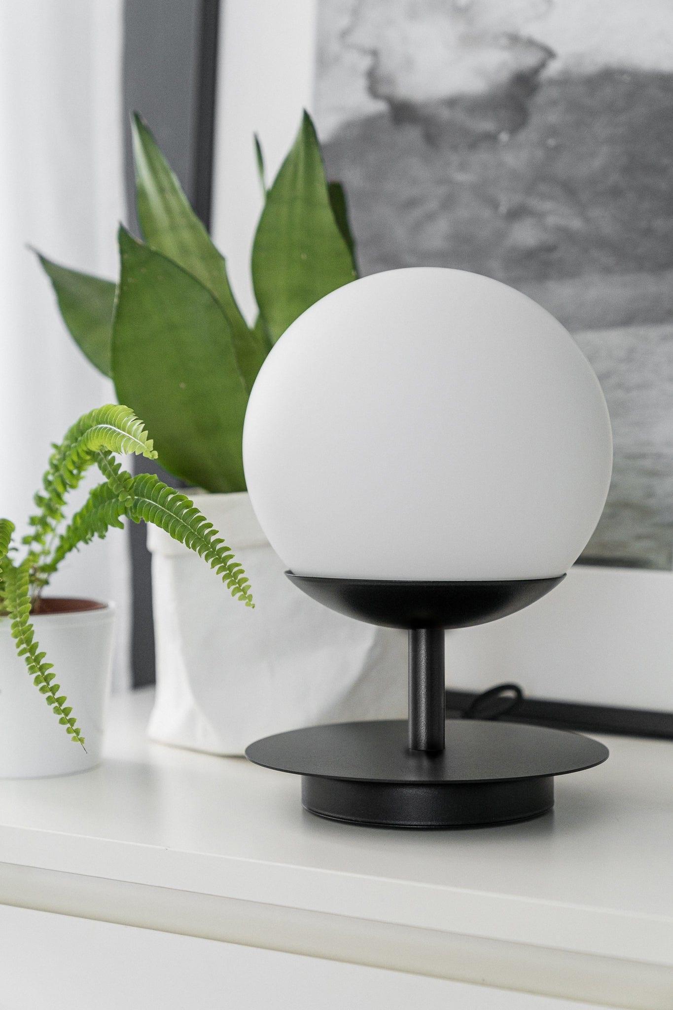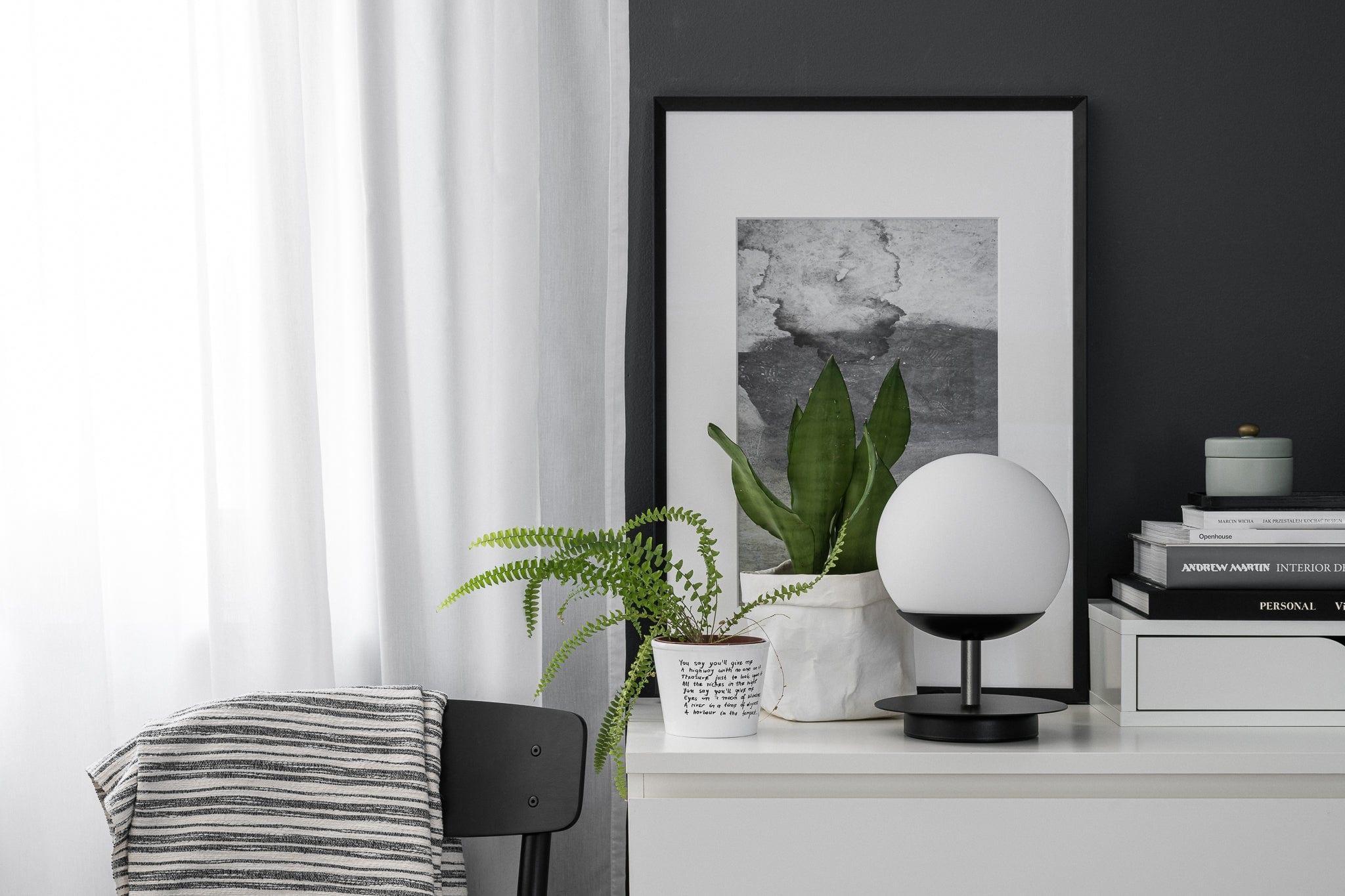 Lampa stołowa Plaat to propozycja dla tych, którzy szukają czegoś więcej niż tylko światła. jej forma nawiązuje do geometrii i poezji – klosz w kształcie kuli osłonięty metalowym dyskiem przypomina elegancki parasol, tworząc subtelny, ale mocny akcent wizualny. Dzięki kompaktowym rozmiarom świetnie sprawdzi się na stoliku nocnym, biurku, konsoli czy w przestrzeni do czytania.