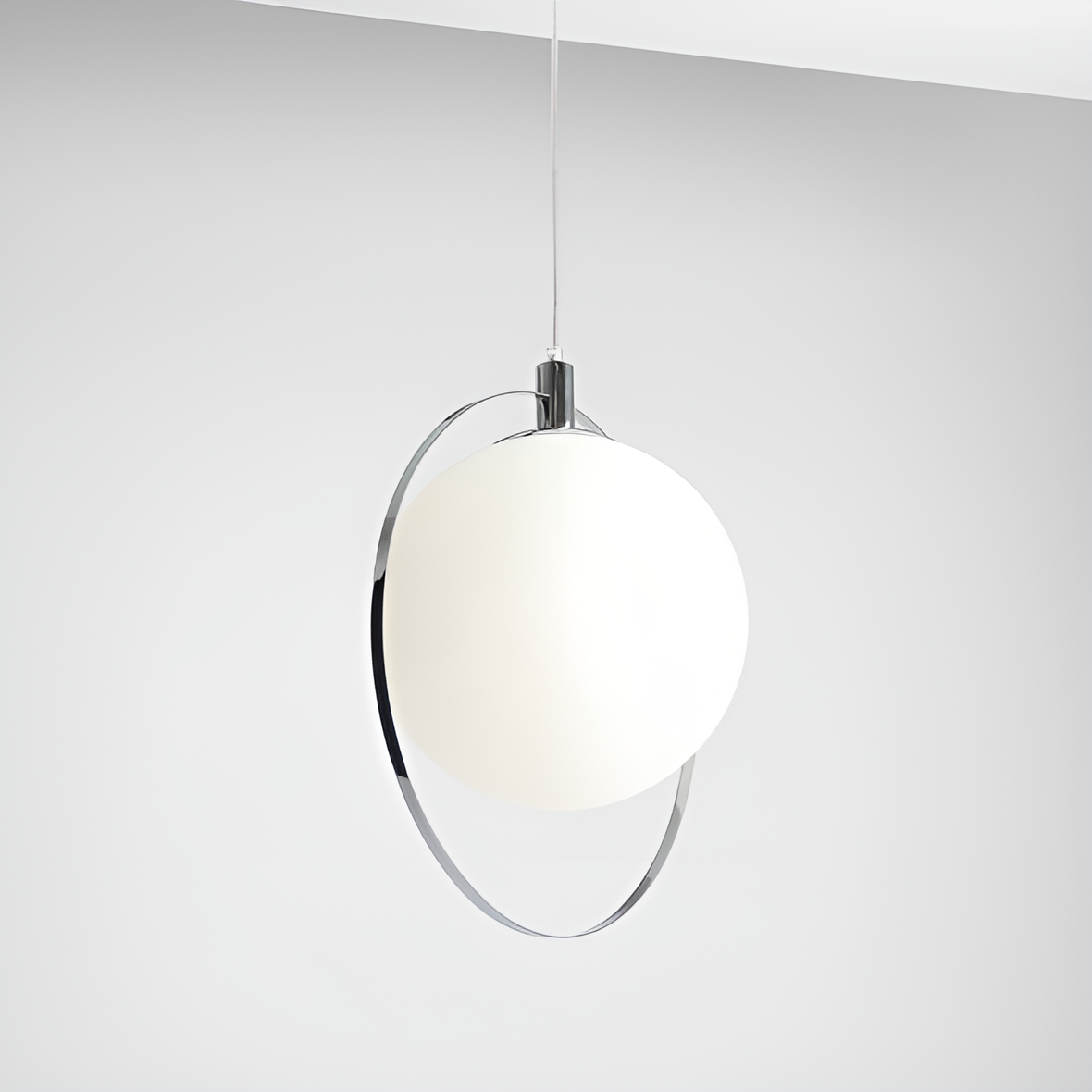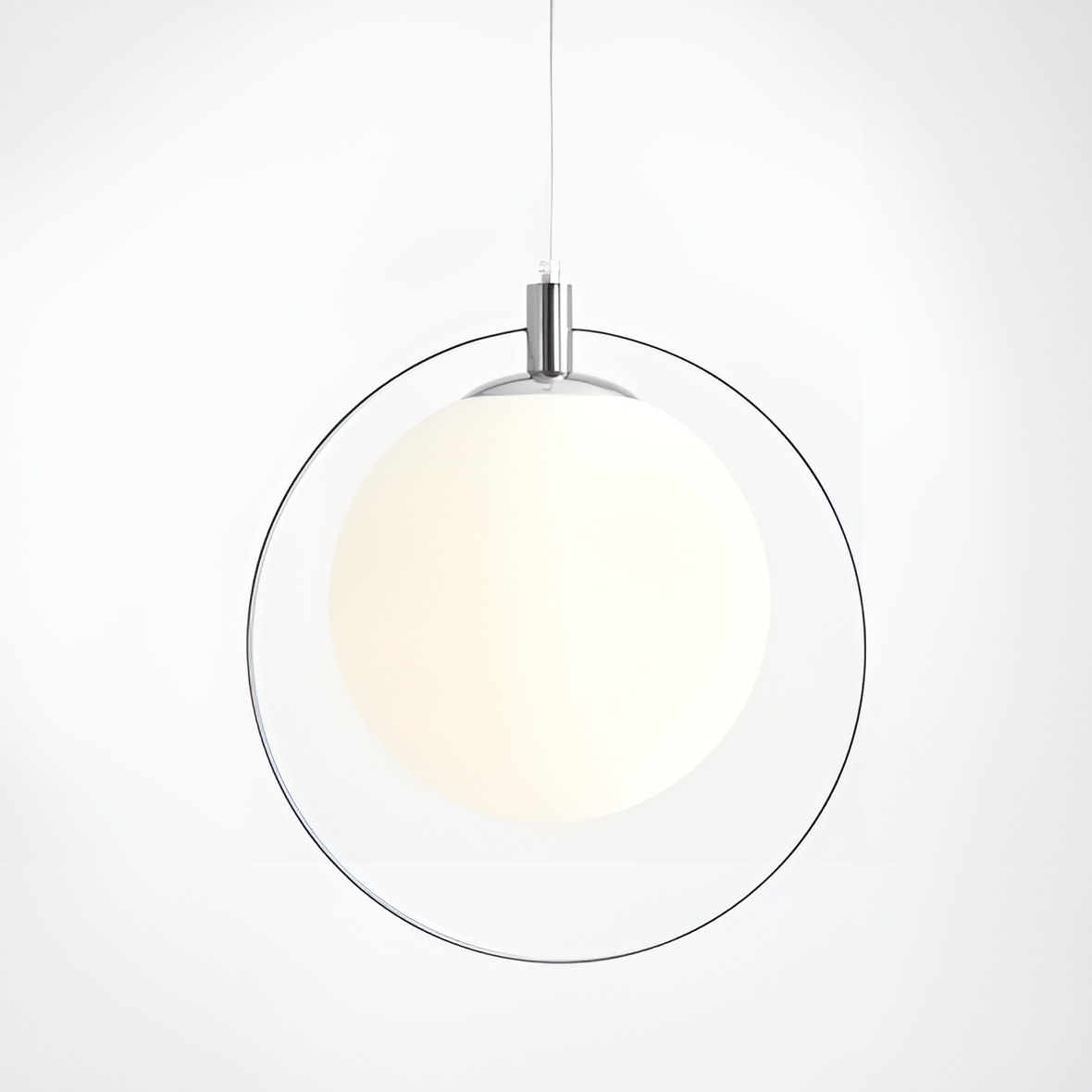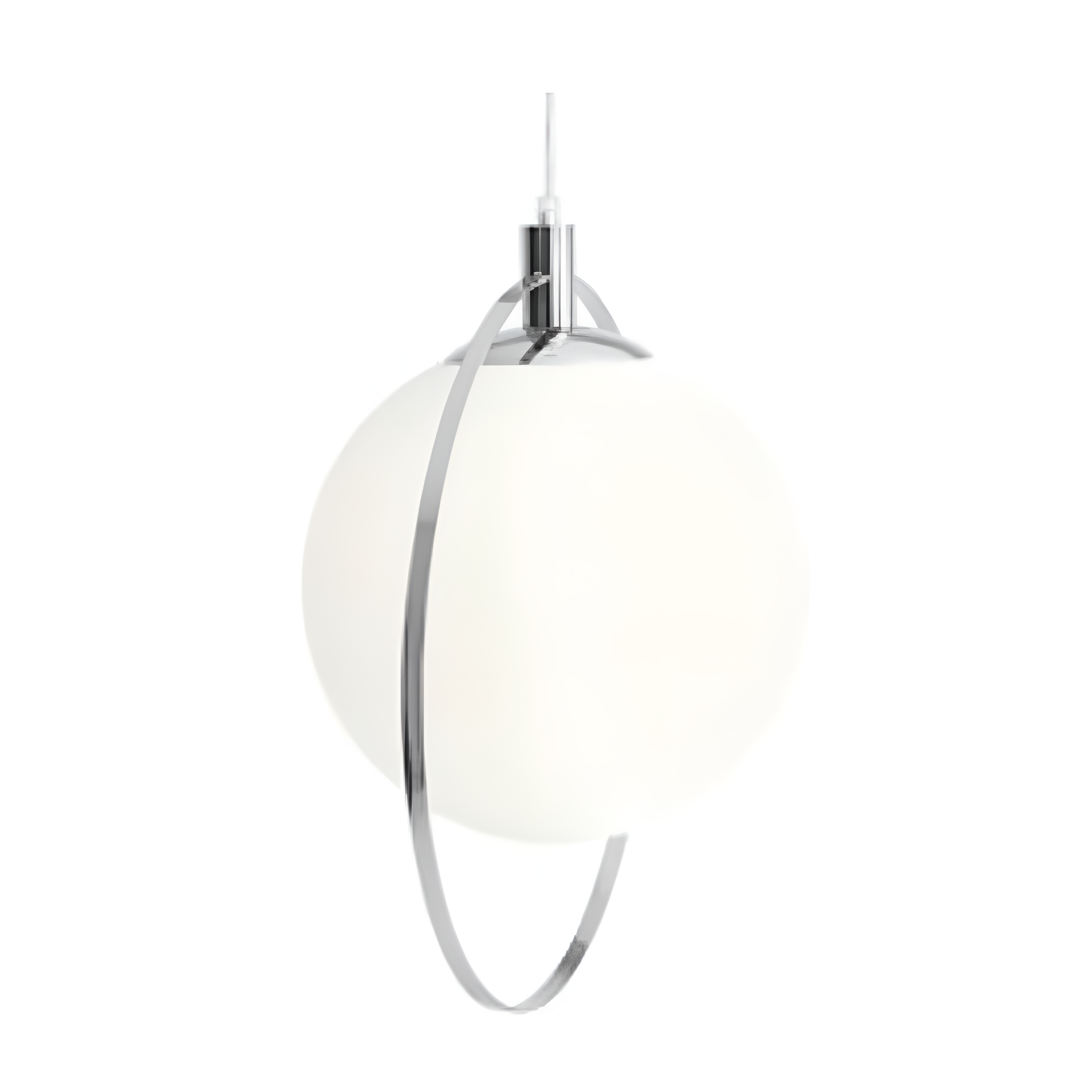 Lampa wisząca Aura w kolorze chromowanym, to niebanalna propozycja oświetlenia idealna do nowoczesnego salonu, monochromatycznej kuchni lub też modernistycznej jadalni. Model ten wprost idealnie zaprezentuje się wisząc pojedynczo, jak i w grupie. Charakterystyczny, mleczny, matowy klosz o średnicy 30 cm równomiernie rozproszy światło sprawiając, że dotrze ono do każdego zakamarka w pomieszczeniu.