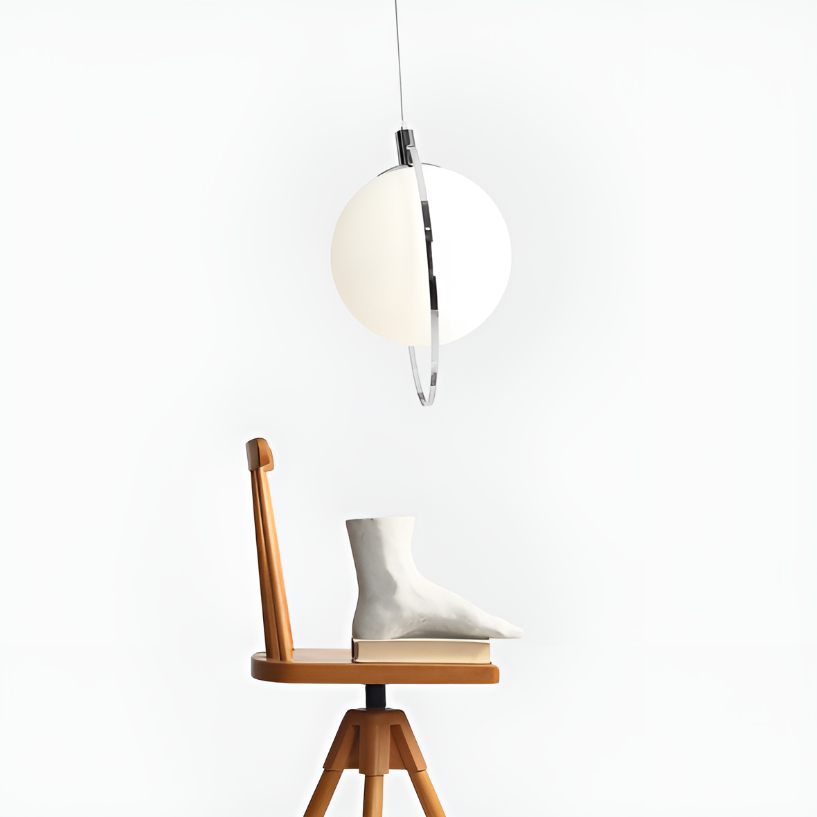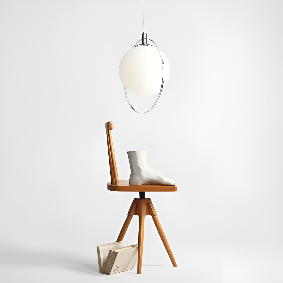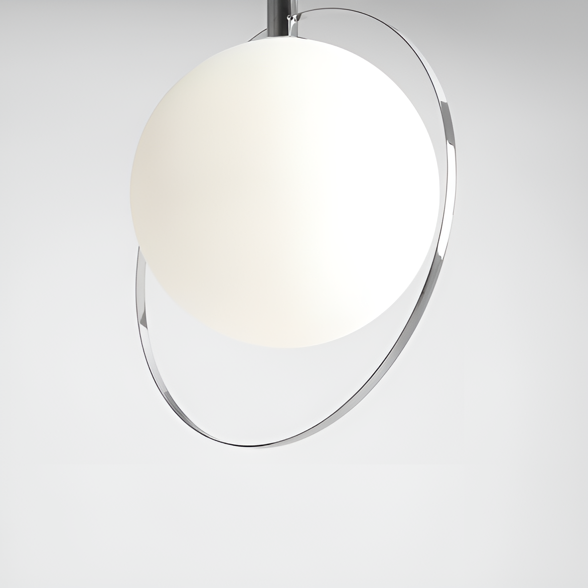 Lampa wisząca Aura w kolorze chromowanym, to niebanalna propozycja oświetlenia idealna do nowoczesnego salonu, monochromatycznej kuchni lub też modernistycznej jadalni. Model ten wprost idealnie zaprezentuje się wisząc pojedynczo, jak i w grupie. Charakterystyczny, mleczny, matowy klosz o średnicy 30 cm równomiernie rozproszy światło sprawiając, że dotrze ono do każdego zakamarka w pomieszczeniu.