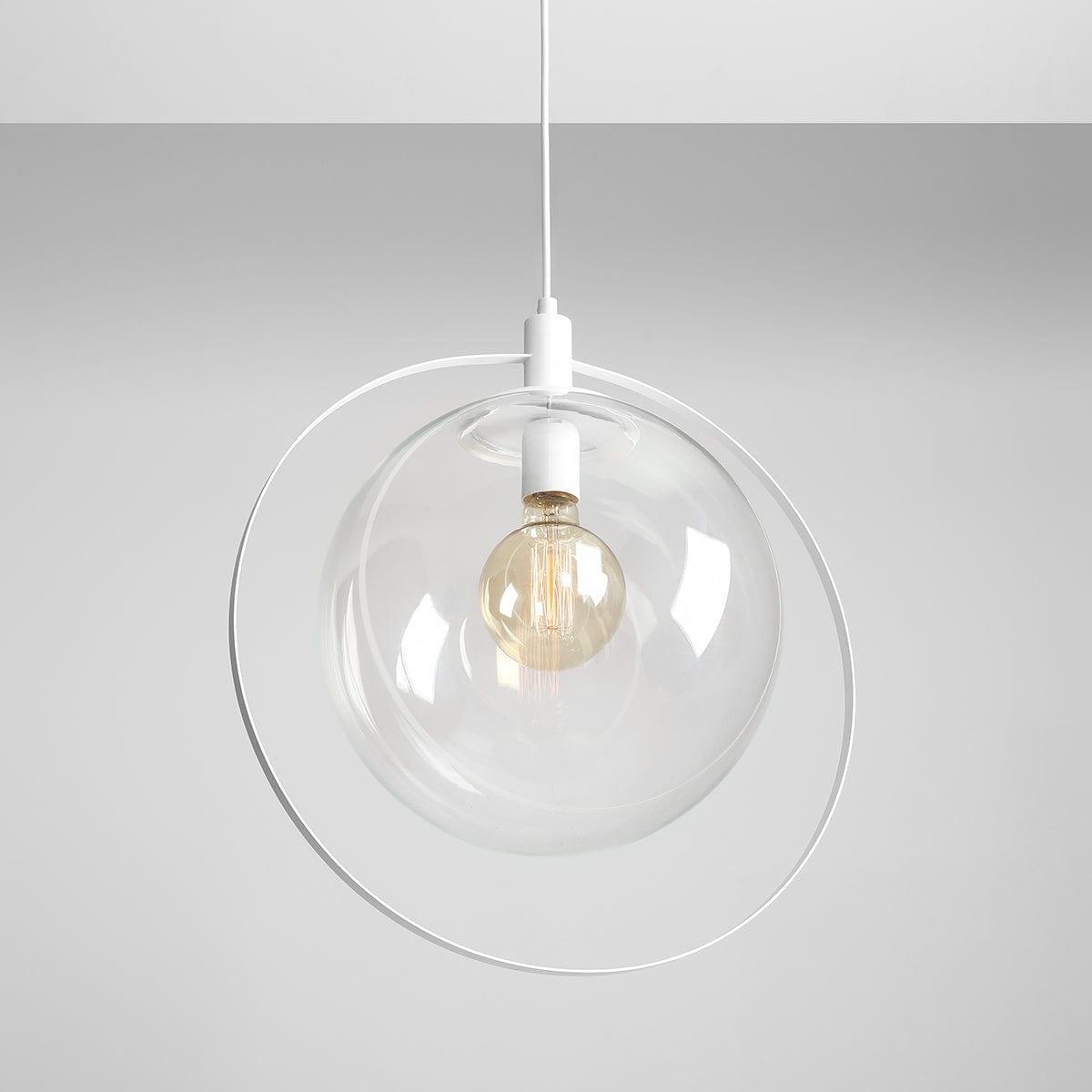 Lampa wisząca Aura w kolorze białym, to niebanalna propozycja oświetlenia idealna do nowoczesnego salonu, monochromatycznej kuchni lub też modernistycznej jadalni. Model ten wprost idealnie zaprezentuje się wisząc pojedynczo, jak i w grupie. Charakterystyczny, mleczny, matowy klosz o średnicy 30 cm równomiernie rozproszy światło sprawiając, że dotrze ono do każdego zakamarka w pomieszczeniu.