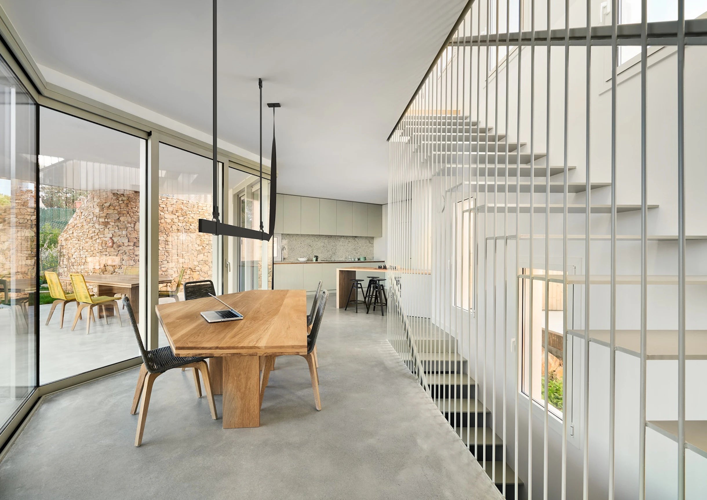 Montaż lampy odbywa się za pomocą pasków przeciąganych przez metalowe klamry, pełniące funkcję zaczepów sufitowych. Regulacja długości pasków pozwala dopasować kompozycję do różnych układów przestrzennych. Zasilanie oraz system sterowania ukryto wewnątrz pasków, co zapewnia czystość formy i maksymalną estetykę. Każde źródło światła można kontrolować niezależnie dzięki wbudowanemu systemowi CASAMBI, obsługiwanemu z poziomu dedykowanej aplikacji. Belt to oświetlenie, które zachwyca zarówno formą, jak i funkcjonalnością.