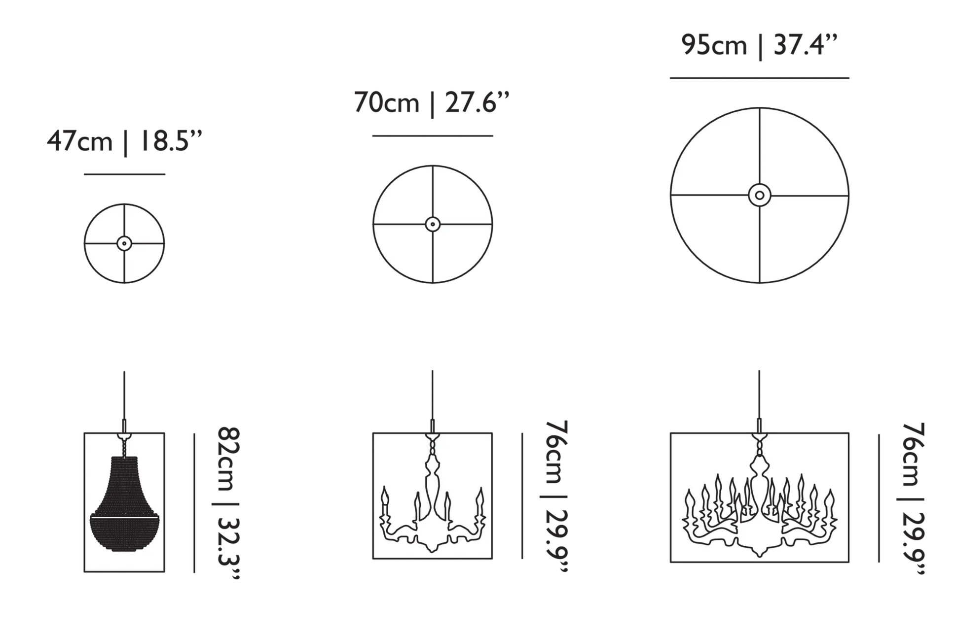 Średnica: 47 / 70 / 95 cm