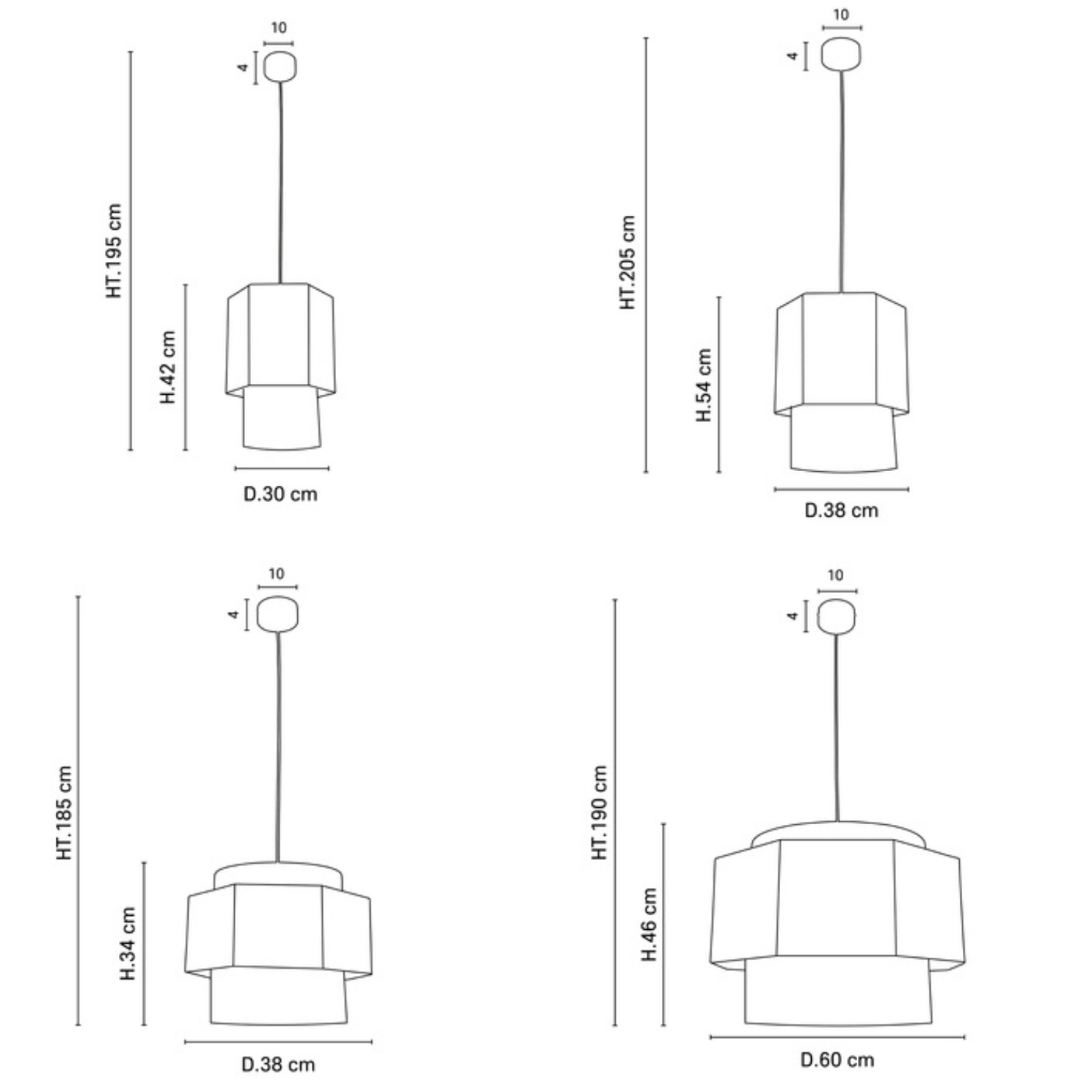 Wysokość klosza: 42 / 54 / 34 / 46 cm