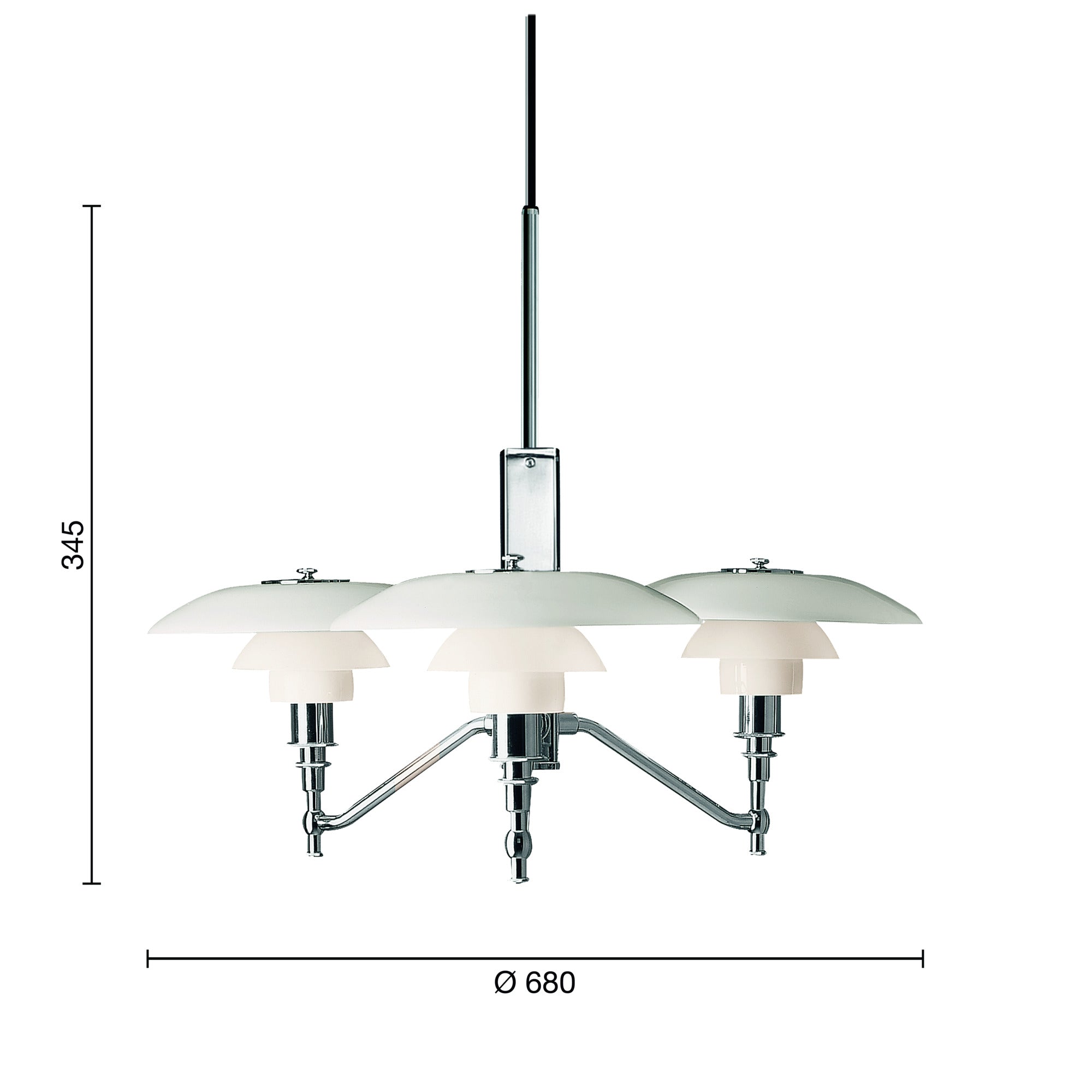 Trzy klosze wykonane z ręcznie dmuchanego szkła opalowego rozpraszają światło w sposób subtelny i naturalny, tworząc przyjemną atmosferę. Metalowa rama w chromowanym, lśniącym wykończeniu dodaje całości elegancji i klasycznego charakteru. Lampa wisząca PH 3/2 Academy doskonale sprawdzi się nad stołem jadalnym, w salonie lub w pomieszczeniach reprezentacyjnych, gdzie liczy się połączenie estetyki i funkcjonalności.