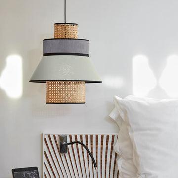 Lampa wisząca Singapour XML/ML w kolorze miętowym to eleganckie oświetlenie składające się z kompletnego zestawu czterech abażurów stworzonych z wysokiej jakości spranego lnu i wikliny. Każdy z abażurów łączy w sobie wyjątkową delikatność tekstylnych włókien z naturalnym urokiem wikliny, tworząc subtelne światło o wyjątkowym charakterze.