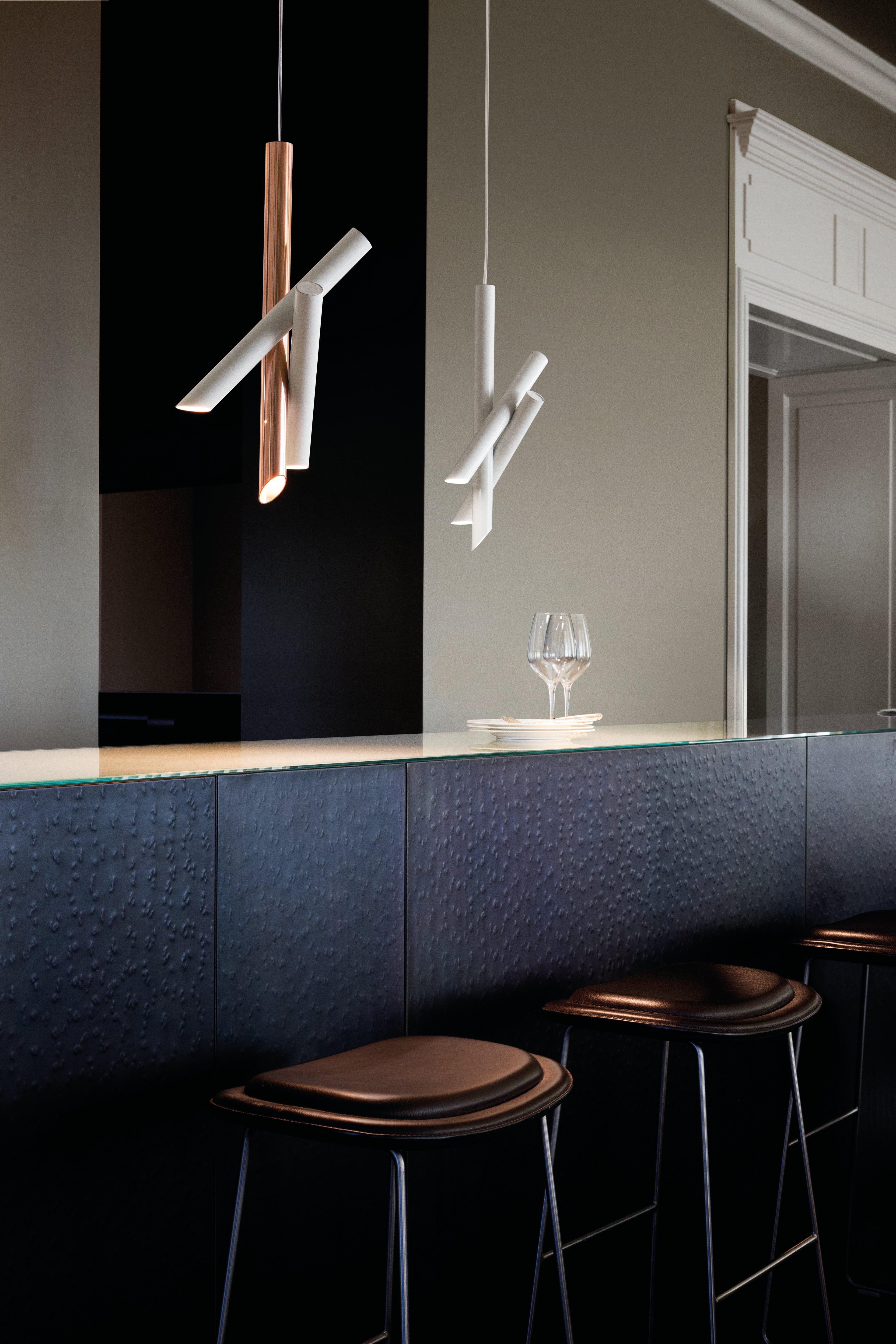 Lampa wisząca Tubes 3 charakteryzuje się czystym, liniowym i minimalistycznym designem, wyrażonym przez proste kształty elementów rurowych. Dostępna w wersji wiszącej, Tubes 3 stanowi eleganckie i funkcjonalne rozwiązanie oświetleniowe. Jej trzy aluminiowe tuby emitują światło w sposób efektywny, doskonale komponując się z nowoczesnymi wnętrzami i dodając im wyrafinowanego charakteru