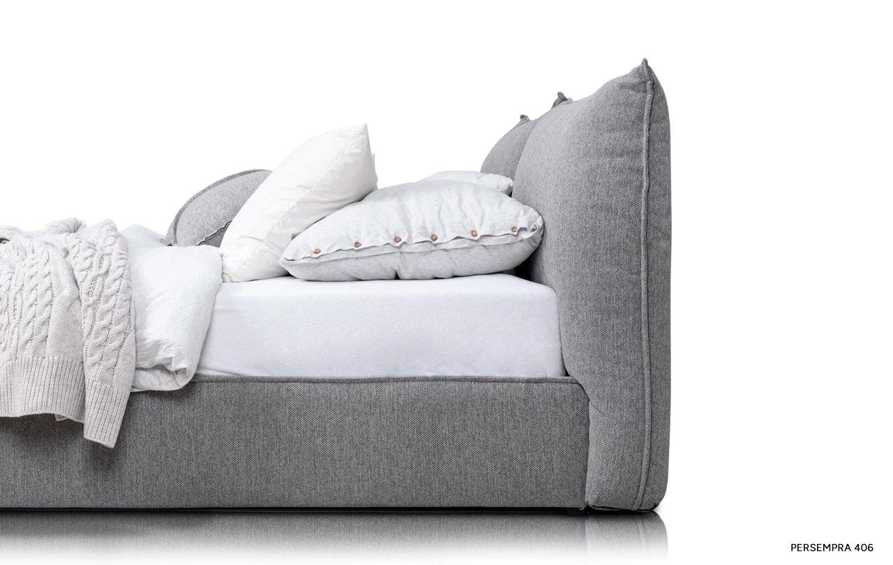 Beżowe łóżko Molia to symfonia wygody i funkcjonalności, gdzie szerokie wezgłowie obejmuje materac, zapewniając nie tylko doskonałe wsparcie dla ciała, ale również wyjątkowy komfort snu. Miękkość tapicerowania oraz delikatność tkanin dostępnych w ofercie Rosanero podkreślają wyrafinowany charakter tego łóżka, czyniąc go nie tylko meblem, ale prawdziwym dziełem sztuki.