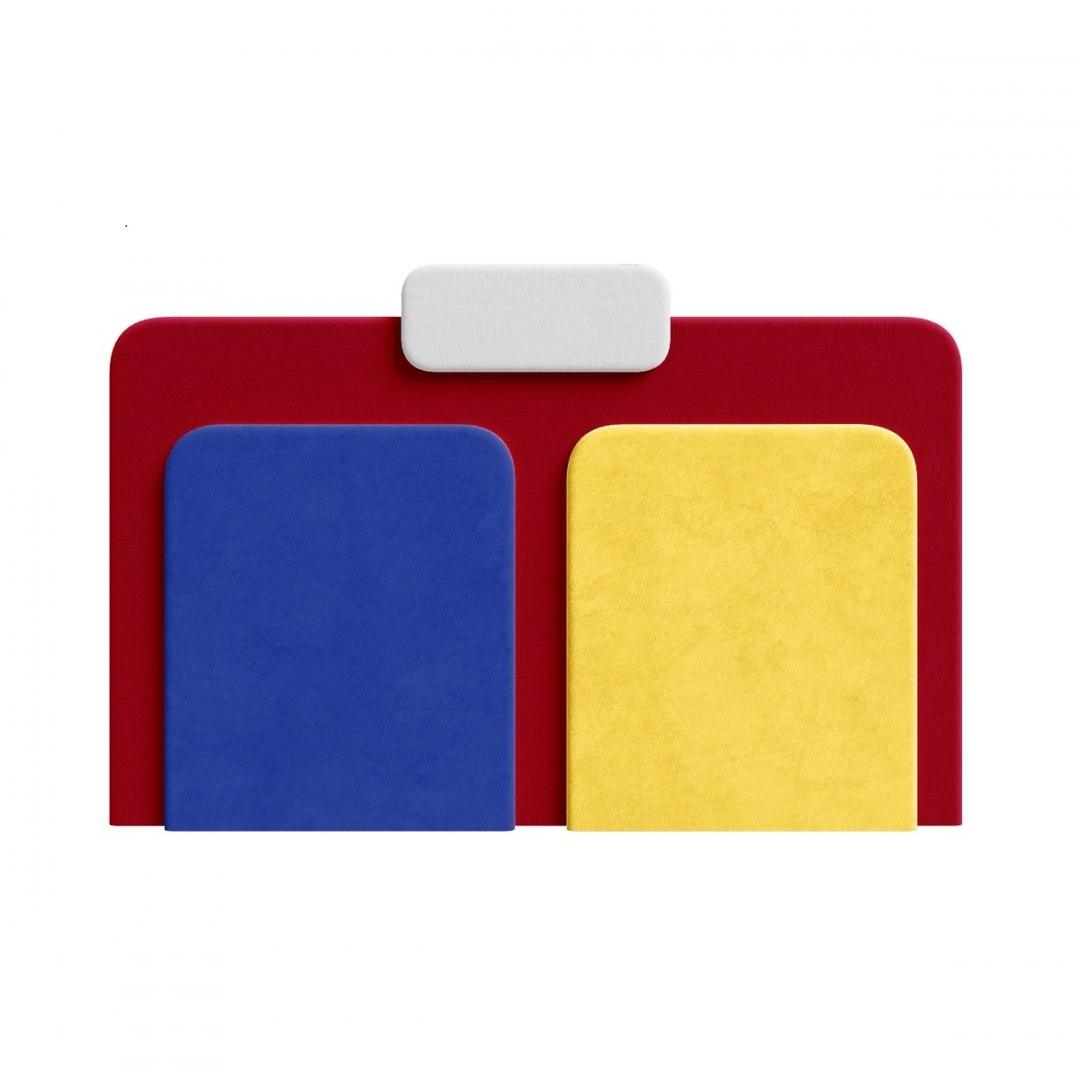 Łóżko tapicerowane PLUM 7 żółty z czerwonym i niebieskim