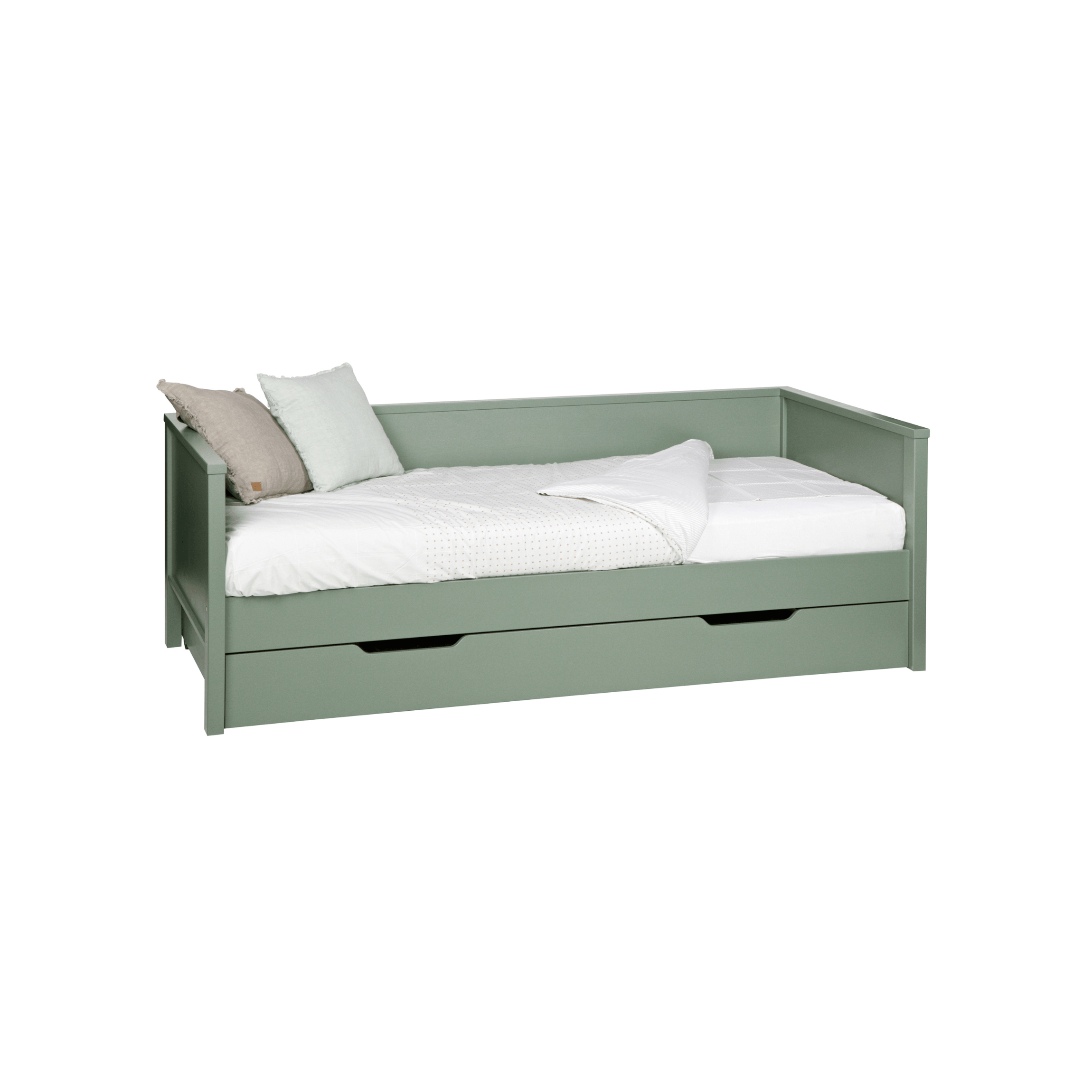 Niewielki rozmiar łóżka Nikki sprawia, że jest to idealny wybór do małych sypialni. Dzięki swojej pastelowej zieleni i minimalistycznemu designowi, to łóżko będzie doskonałym dodatkiem do każdego wnętrza, podkreślając jego charakter i dodając odrobinę skandynawskiej prostoty.