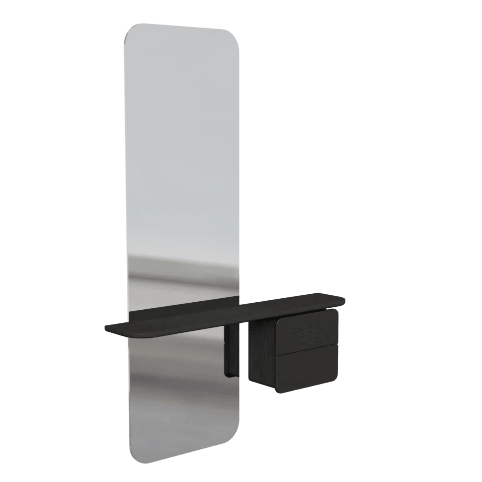 Dzięki odpowiedniej wysokości lustro zapewnia odbicie na całej swojej długości, co umożliwia perfekcyjne przygotowanie się przed wyjściem z domu. Dodatkowo, lustro wyposażone jest w półkę oraz małą szafkę z praktycznym lusterkiem i skórzaną tacką – idealne rozwiązanie do przechowywania codziennych przedmiotów, takich jak klucze, kosmetyki, okulary przeciwsłoneczne czy zapasowe monety.