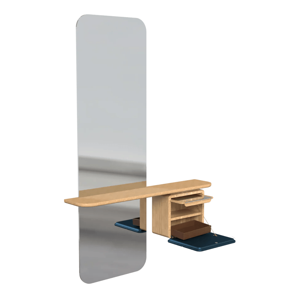 One More Look to jasne i przestronne lustro o minimalistycznym skandynawskim charakterze, które posiada wiele dodatkowych funkcji, spełniających codzienne potrzeby miejskiego życia. Zajmując minimalną przestrzeń, One More Look jest idealne do korytarzy każdej wielkości, ale sprawdzi się także doskonale w sypialniach, hotelach oraz biurowych korytarzach.