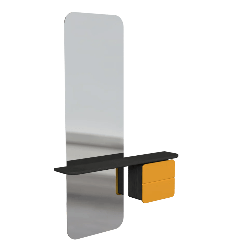 Dzięki odpowiedniej wysokości lustro zapewnia odbicie na całej swojej długości, co umożliwia perfekcyjne przygotowanie się przed wyjściem z domu. Dodatkowo, lustro wyposażone jest w półkę oraz małą szafkę z praktycznym lusterkiem i skórzaną tacką – idealne rozwiązanie do przechowywania codziennych przedmiotów, takich jak klucze, kosmetyki, okulary przeciwsłoneczne czy zapasowe monety.