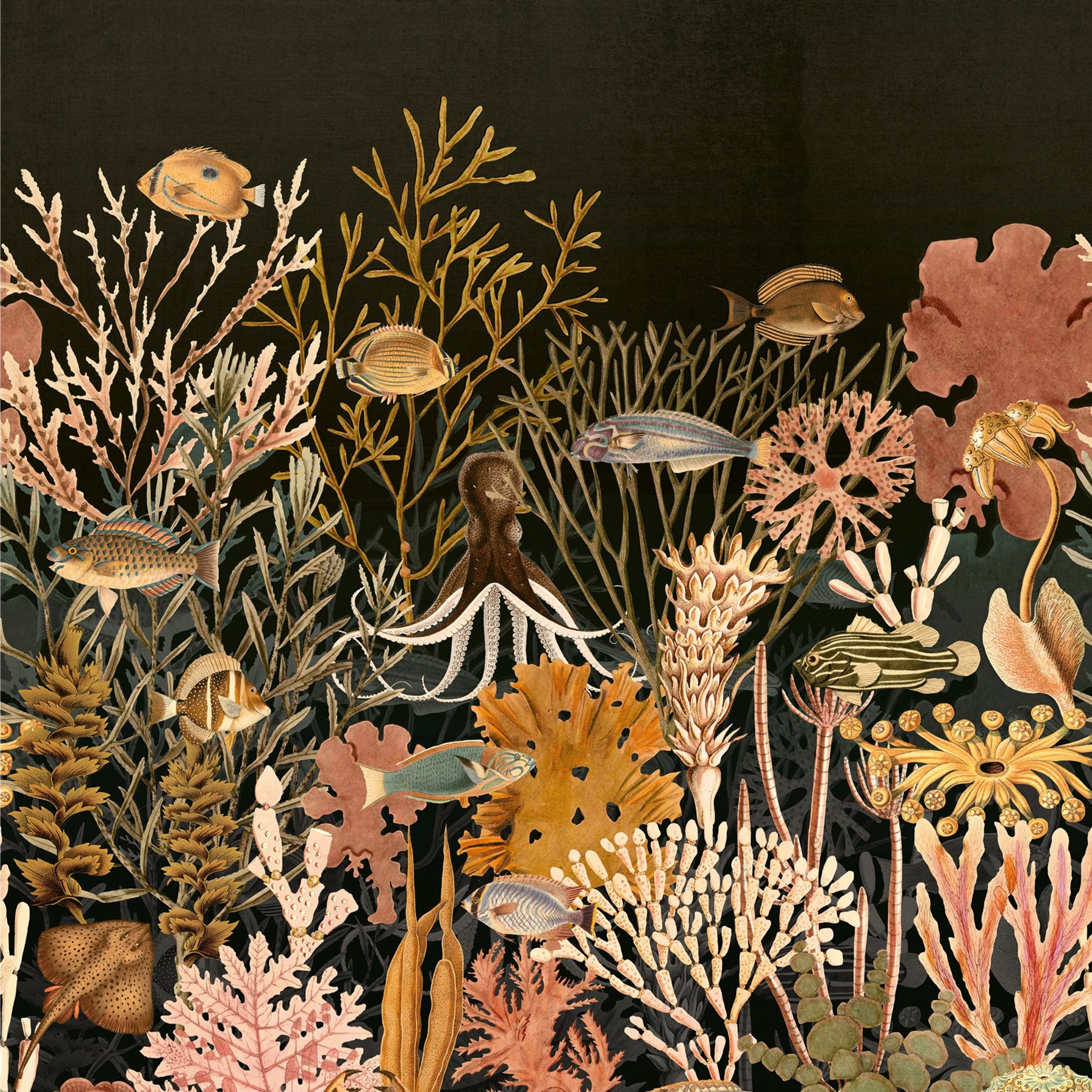 Mural Moorea to panoramiczna dekoracja ścienna inspirowana egzotyczną wyspą i bogactwem podwodnego świata. Kompozycja przedstawiająca rafy koralowe oraz różnorodne formy życia morskiego została dopracowana z niezwykłą dbałością o detal, tworząc efekt głębi i ruchu. Subtelny rysunek połączony z dekoracyjną strukturą powierzchni sprawia, że mural zachwyca artystycznym charakterem i elegancją.