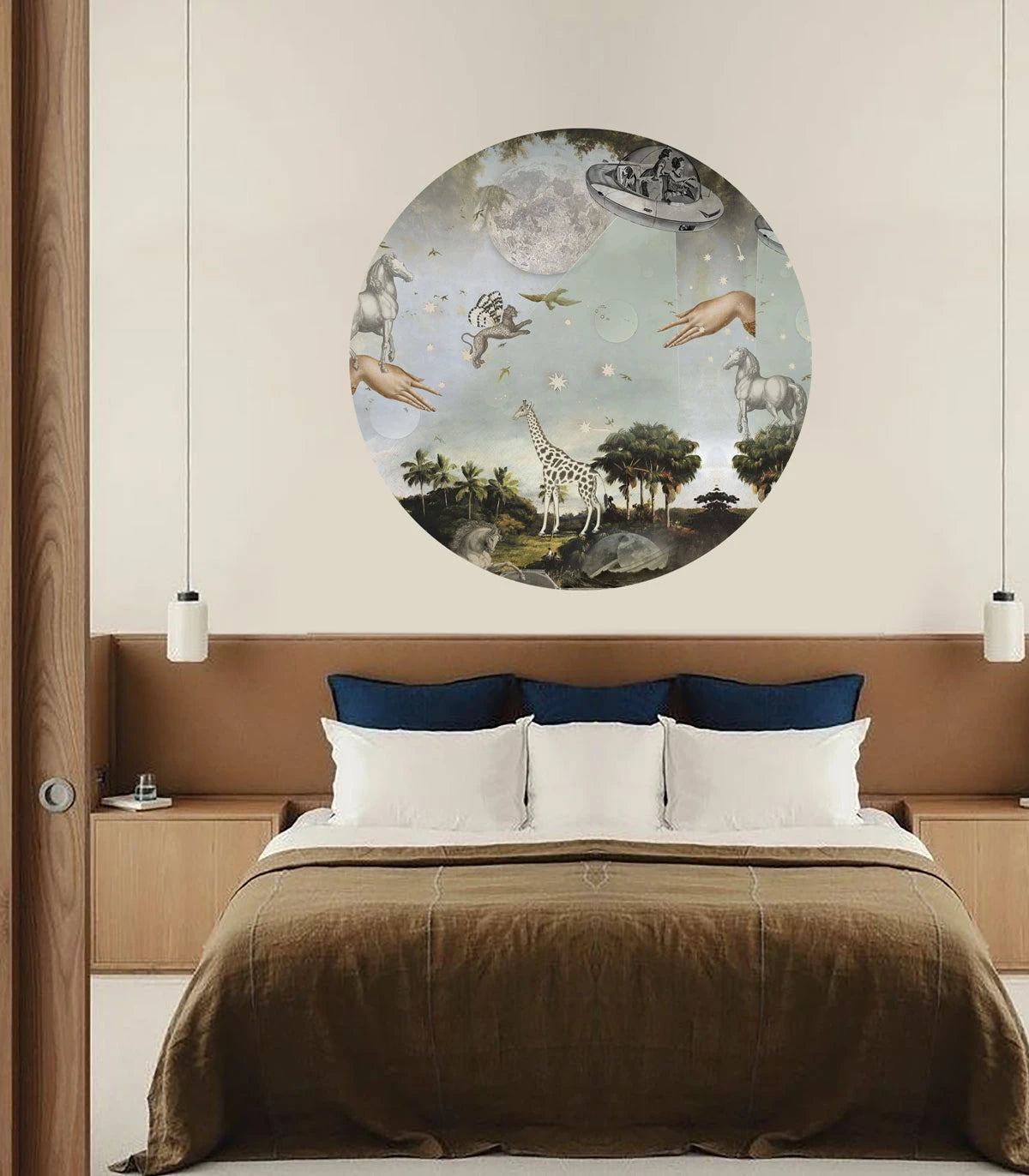Mural Dots Stardust Safari to nowoczesna dekoracja ścienna w kształcie koła, która w oryginalny sposób łączy dzikość motywów safari z subtelnym, kosmicznym blaskiem. Połączenie naturalnych form z gwiezdnymi tonami tworzy intrygującą, harmonijną kompozycję, która przyciąga wzrok i dodaje wnętrzu wyjątkowego charakteru. To dekoracja pełna energii, a jednocześnie elegancko wyważona.