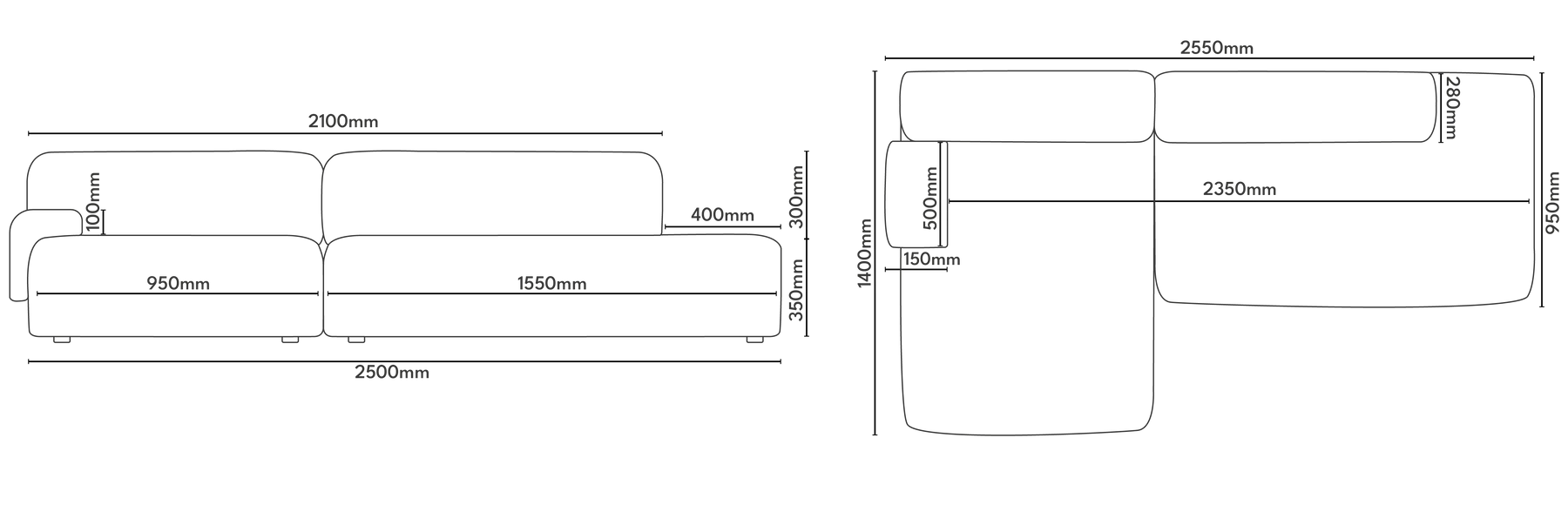 Wykonany z najwyższej jakości materiałów, nowoczesny narożnik modułowy Umi gwarantuje trwałość i wygodę przez lata. Solidna rama z twardego drewna, sprężyny kieszeniowe oraz elastyczna pianka zapewniają odpowiednie podparcie, a miękkie oparcie z pianki i watoliny dba o komfort codziennego użytkowania. Tkanina odporna na zadrapania, wolna od chemicznych PFC i certyfikowana przez Oeko-Tex, łączy trwałość z bezpieczeństwem i łatwością pielęgnacji.