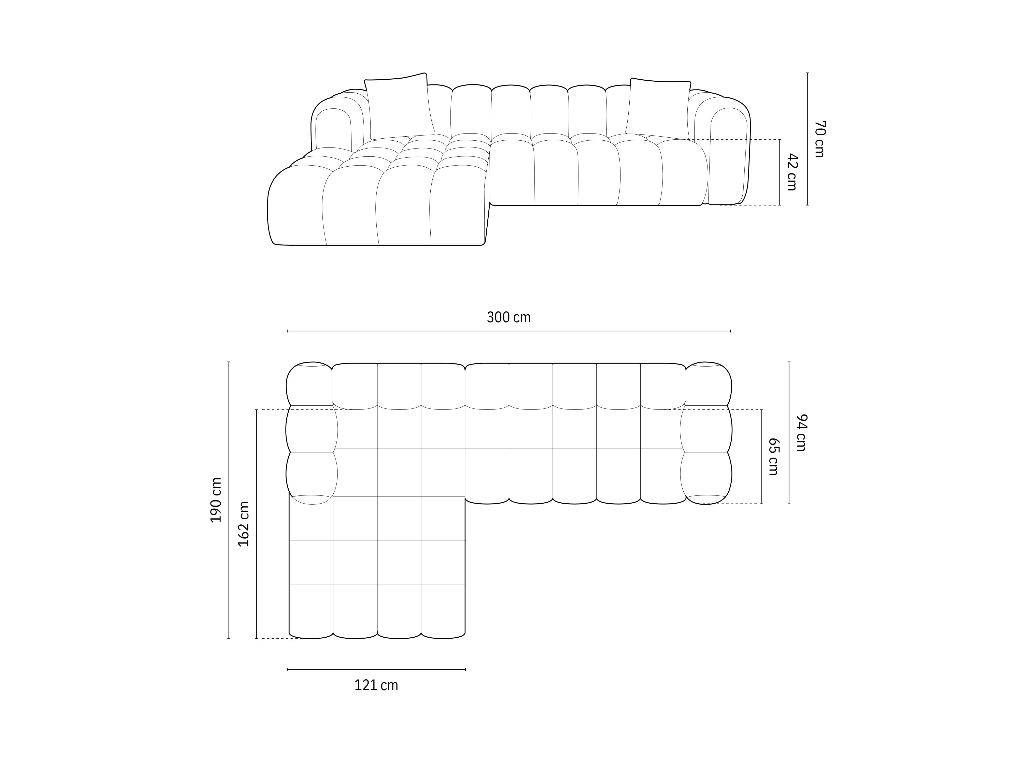 Nowoczesny narożnik łączy w sobie trwałą konstrukcję, miękkie wypełnienie i tkaninę wysokiej jakości. Dzięki sprężynom falistym oraz piance poliuretanowej narożnik gwarantuje wygodę i długowieczność, a jej przemyślana forma nadaje wnętrzu wyjątkowy charakter.