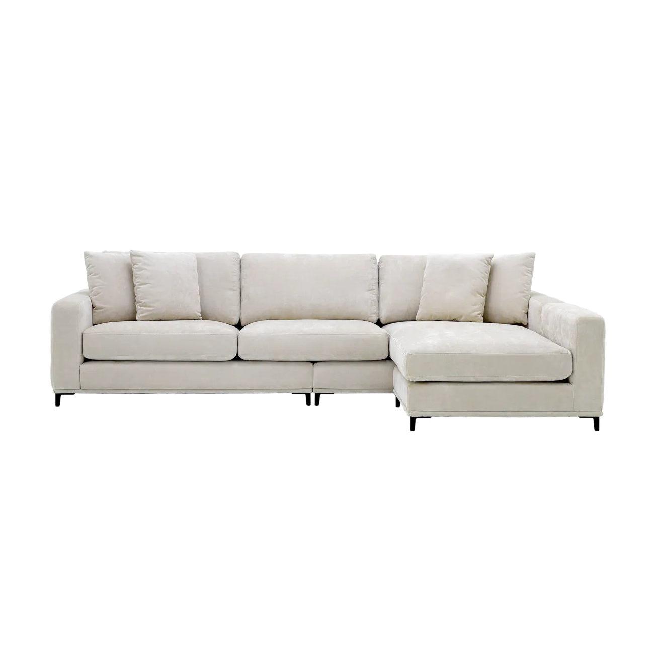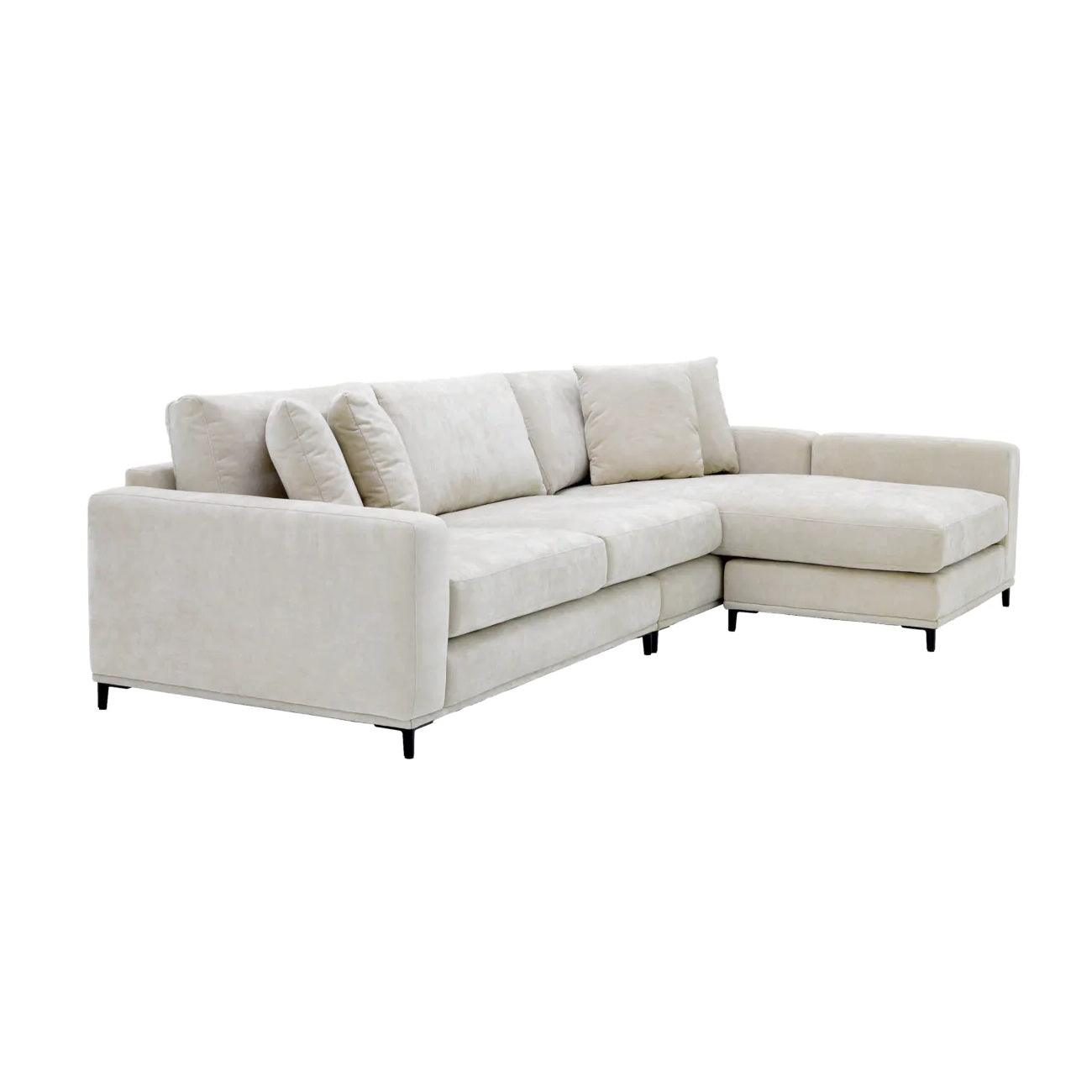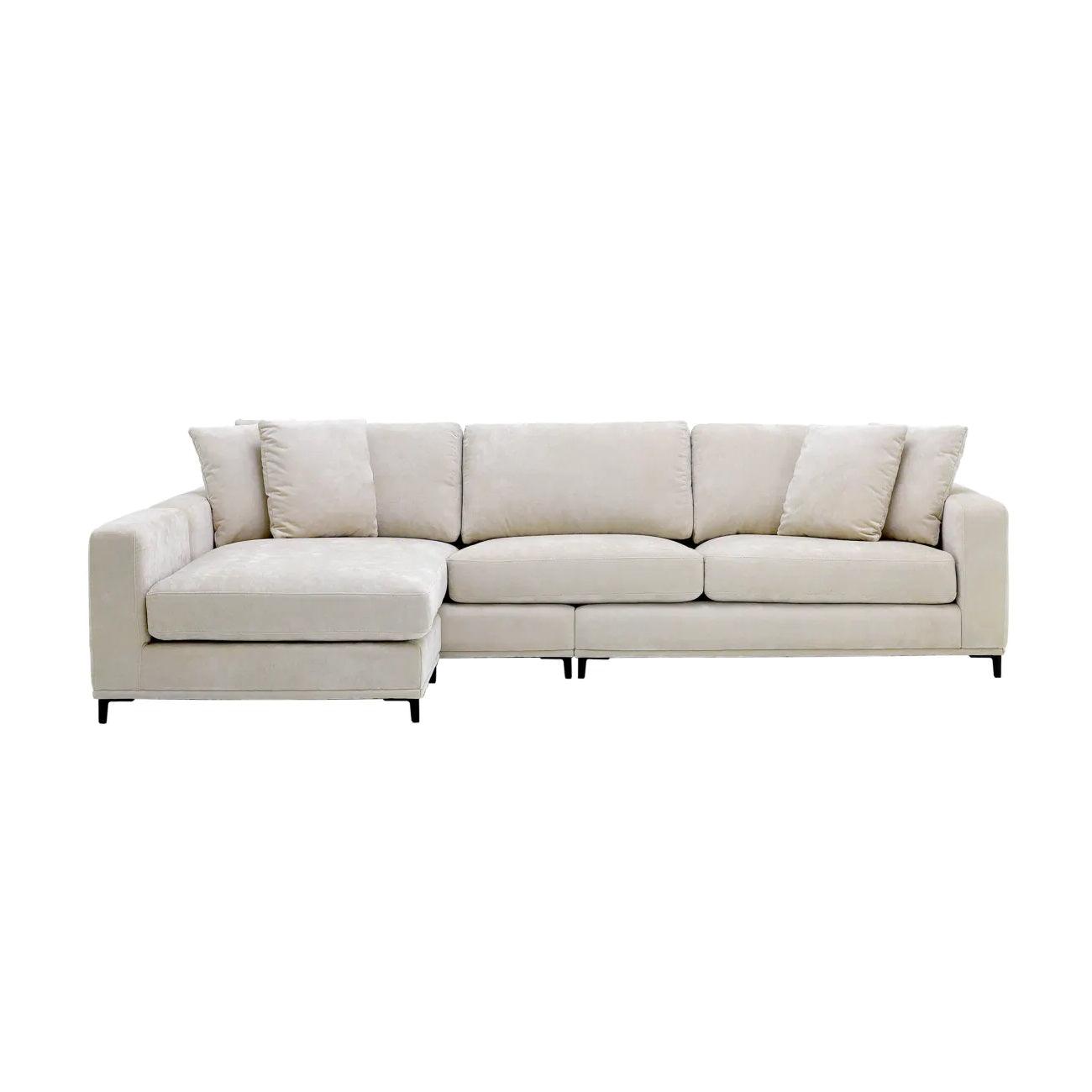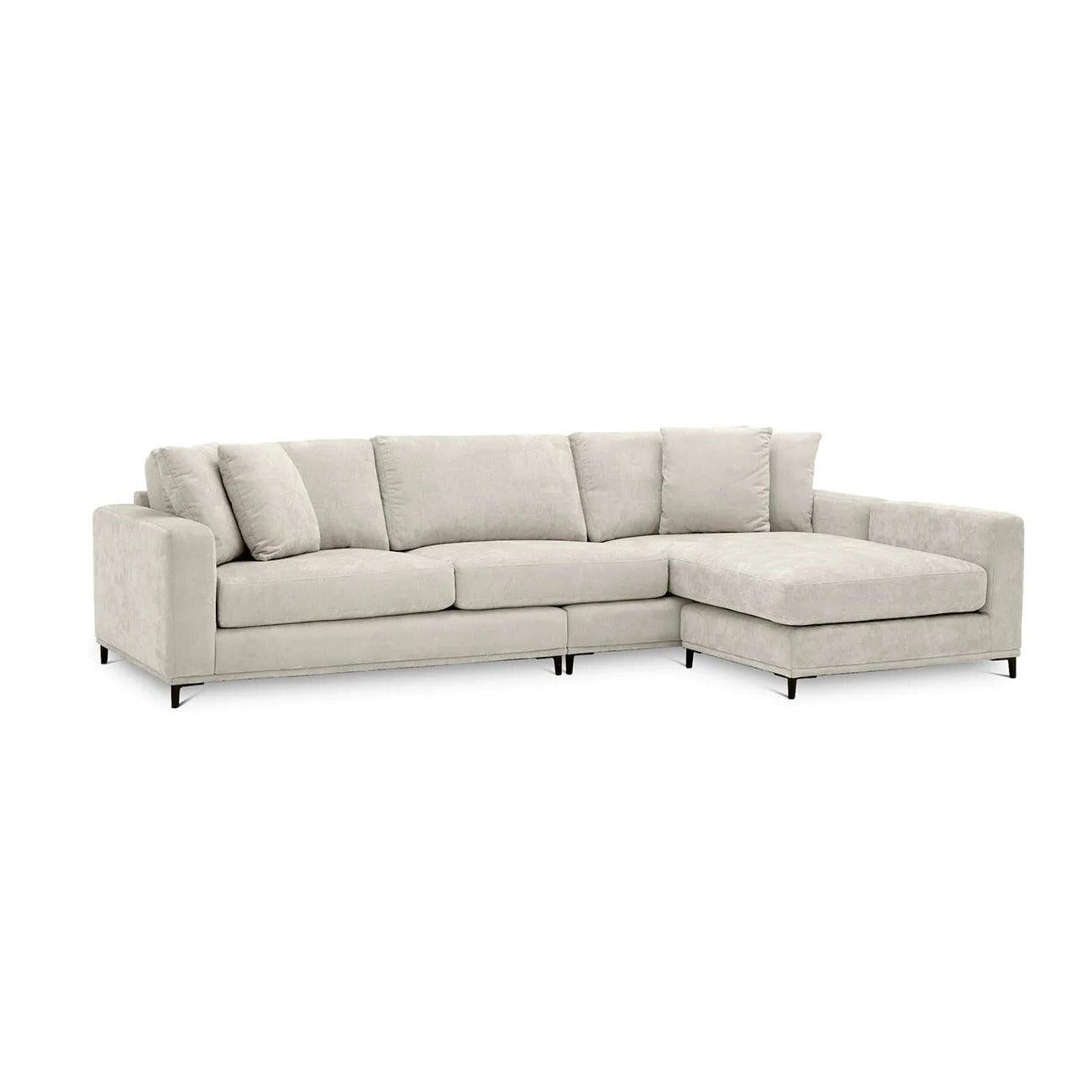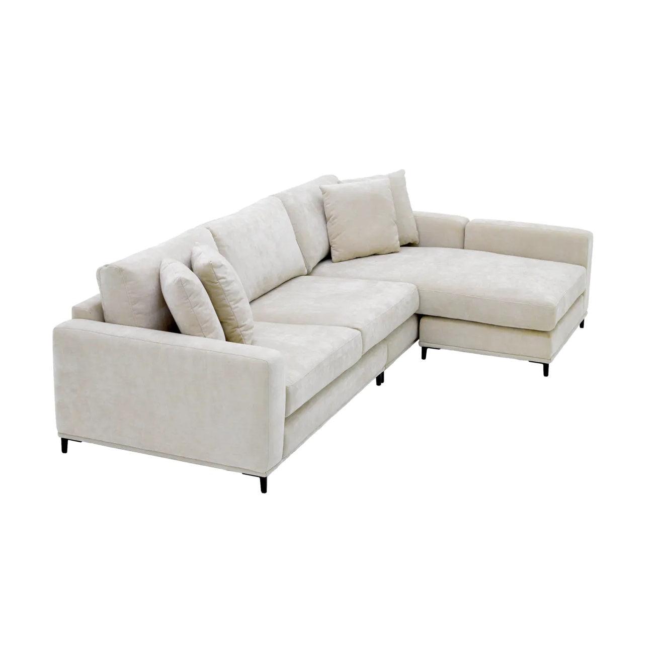 Narożnik Feraud zachwyca swoim piaskowym kolorem- jego elegancka tapicerka dodaje wnętrzu subtelności i ponadczasowego uroku. Czarne nogi stanowią doskonały kontrast, nadając meblowi wyjątkowego charakteru. To komfortowy narożnik, który nie tylko zachwyca swoim designem, ale także zapewnia wyjątkowy komfort i przestrzeń do relaksu. Feraud to mebel, który podkreśli charakter Twojego wnętrza, dodając mu wyjątkowego stylu i elegancji.