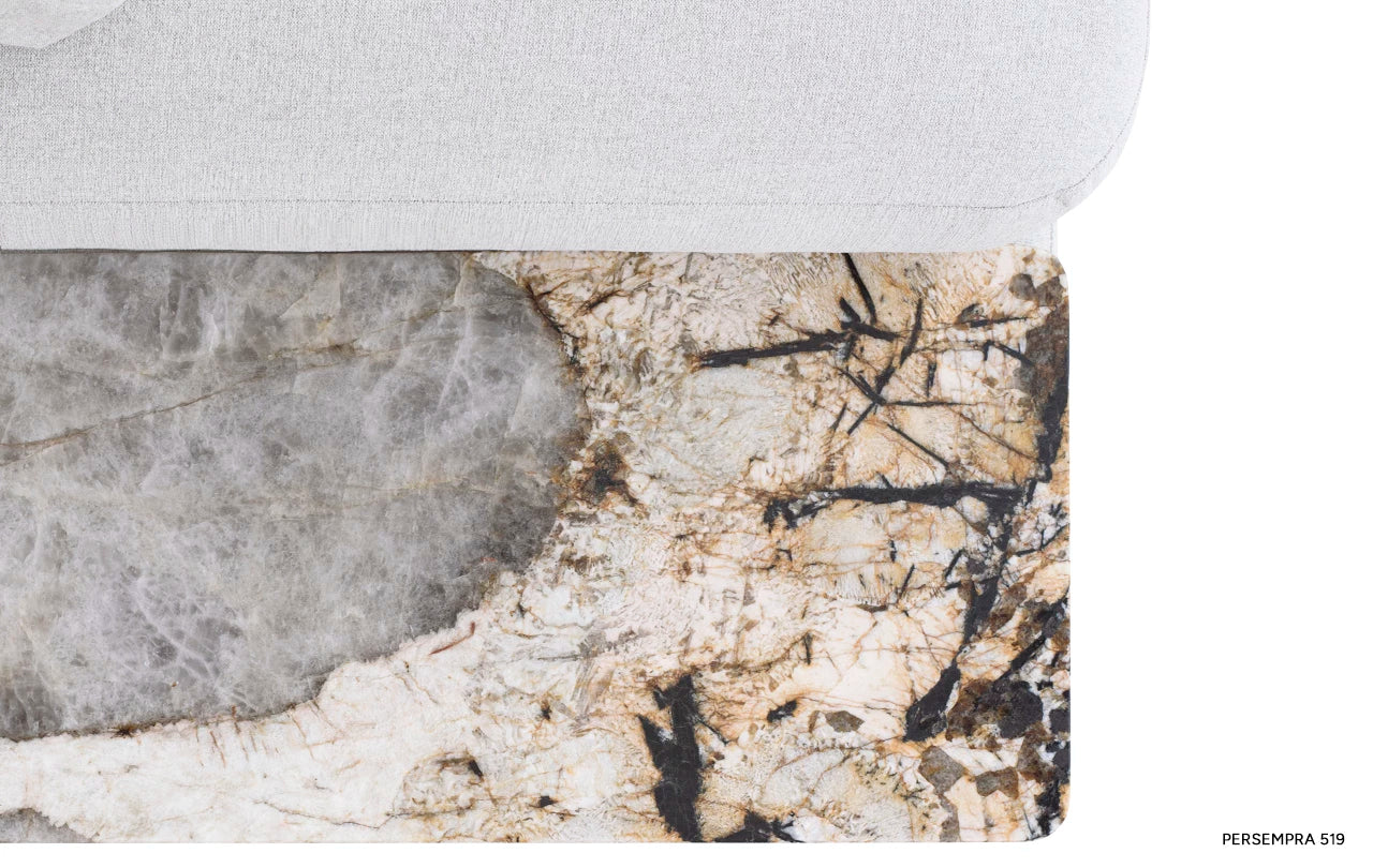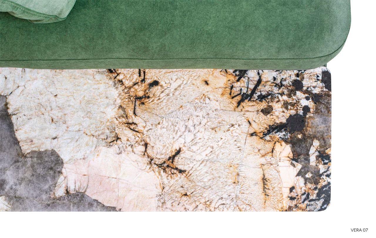 Projektanci sięgnęli po inspiracje ze świata natury, tworząc mebel, który łączy klasyczną elegancję z nowoczesnością. Narożnik tapicerowany został wysokiej jakości tkaninami włoskimi, w tym bawełną, wełną, lnem i wiskozą, które gwarantują zarówno estetykę, jak i wygodę. Dodatkowo zastosowanie naturalnych materiałów, takich jak granit, marmur Patagonia czy drewno, podkreśla luksusowy charakter tego mebla.