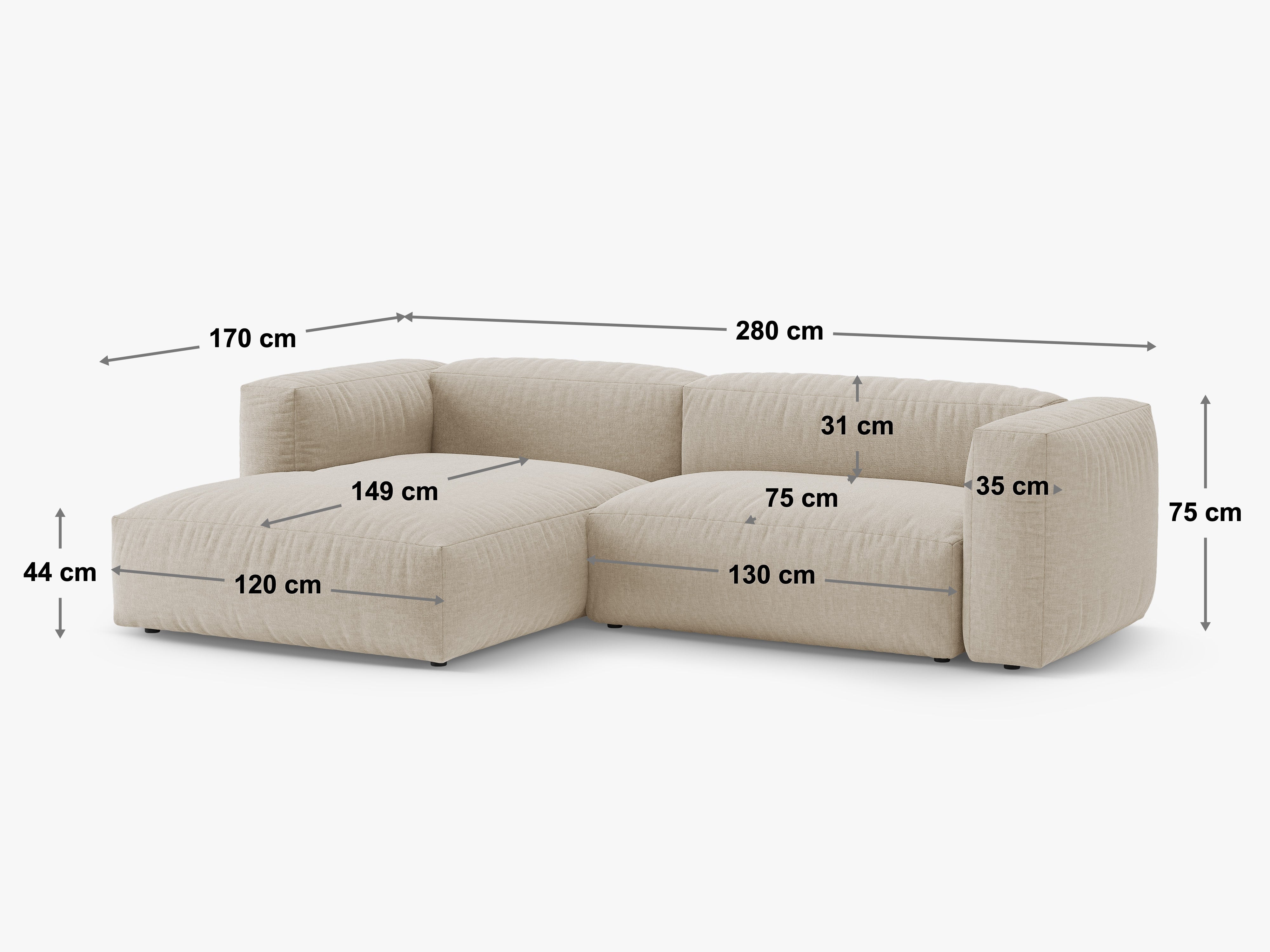 Funkcjonalna konstrukcja oparta na mechanizmie typu puma umożliwia szybkie i wygodne rozkładanie - siedzisko wysuwa się, a druga część automatycznie się unosi, tworząc równą powierzchnię do spania. Brak pojemnika upraszcza budowę mebla i podkreśla jego lekką, harmonijną formę. Wypełnienie z dwóch rodzajów pianki oraz sprężyny faliste gwarantują odpowiednie podparcie i trwałość podczas codziennego użytkowania.