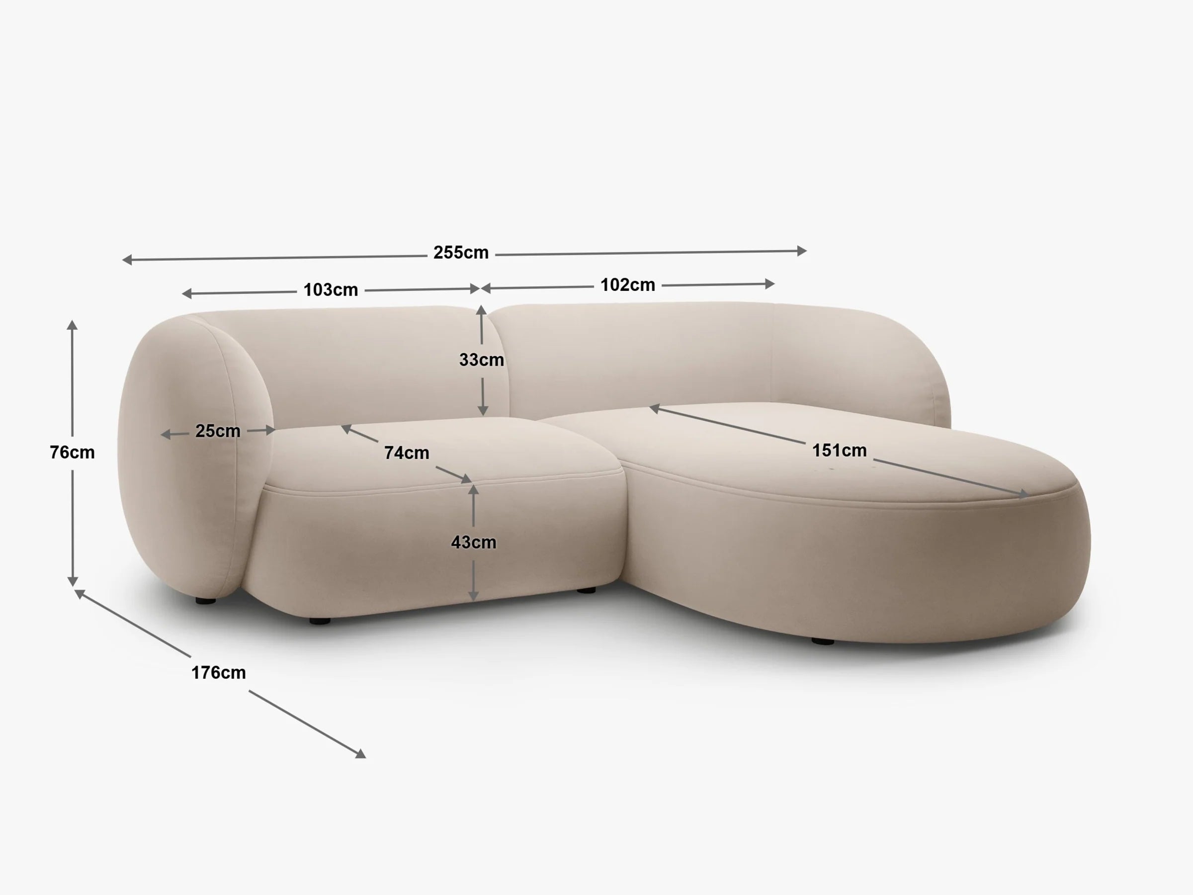 Narożnik Kate to połączenie elegancji i funkcjonalności, które idealnie wpisuje się w nowoczesne aranżacje. Jego zaokrąglona sylwetka inspirowana stylem mid-century nadaje wnętrzu wyjątkowego charakteru, a przestronna forma zapewnia komfort codziennego użytkowania. Miękka tapicerka i głębokie siedzisko sprawiają, że narożnik jest doskonałym miejscem do odpoczynku, spotkań rodzinnych i towarzyskich.