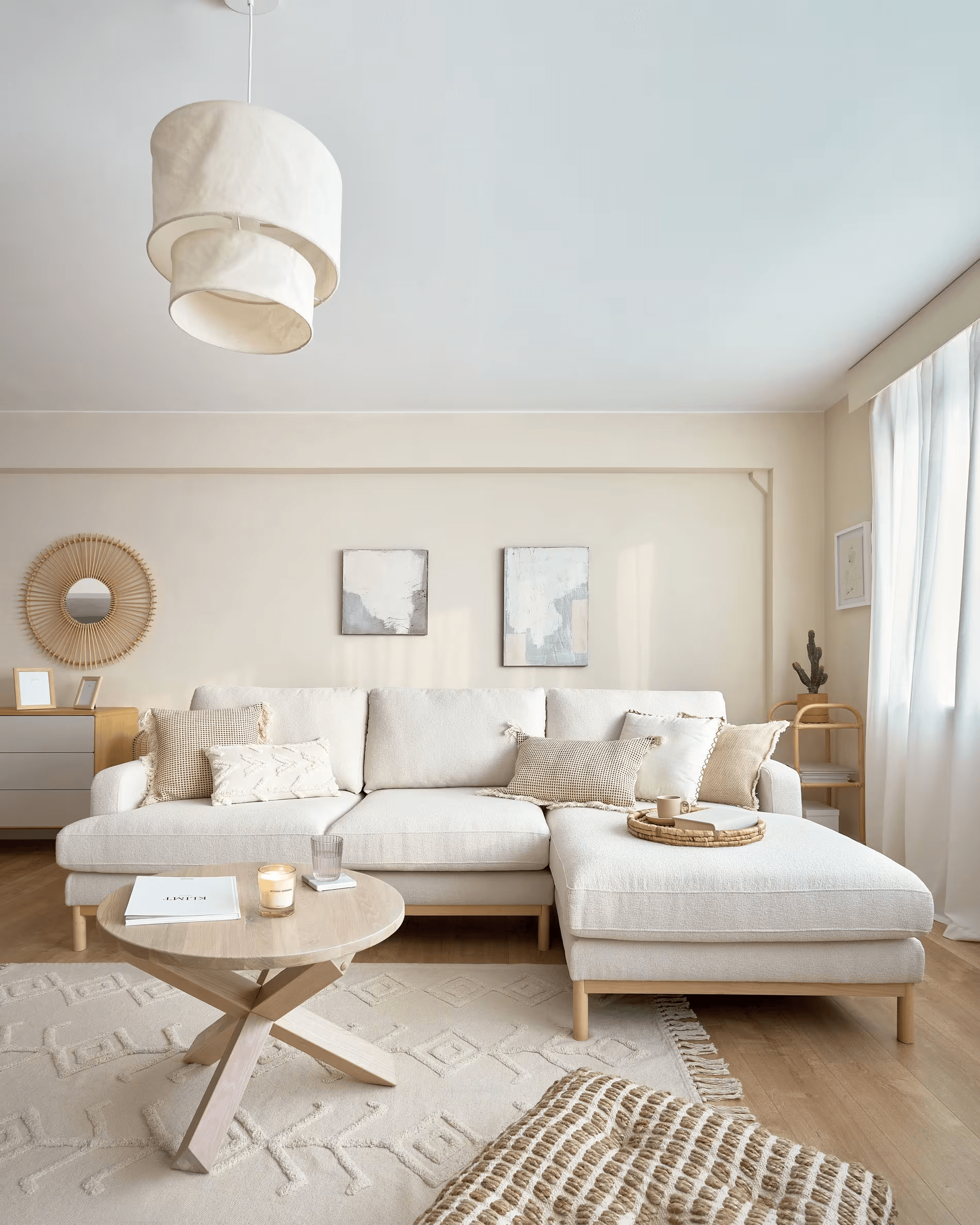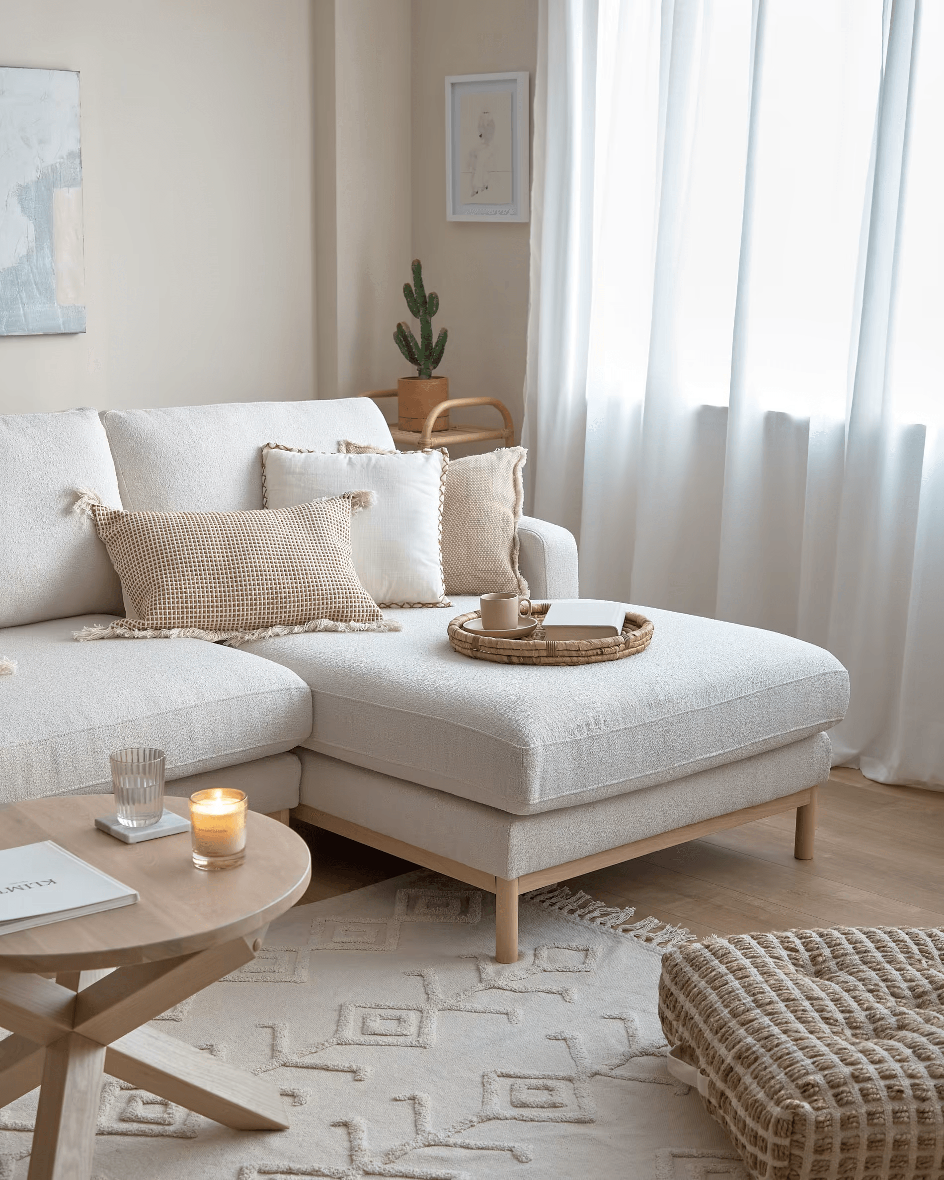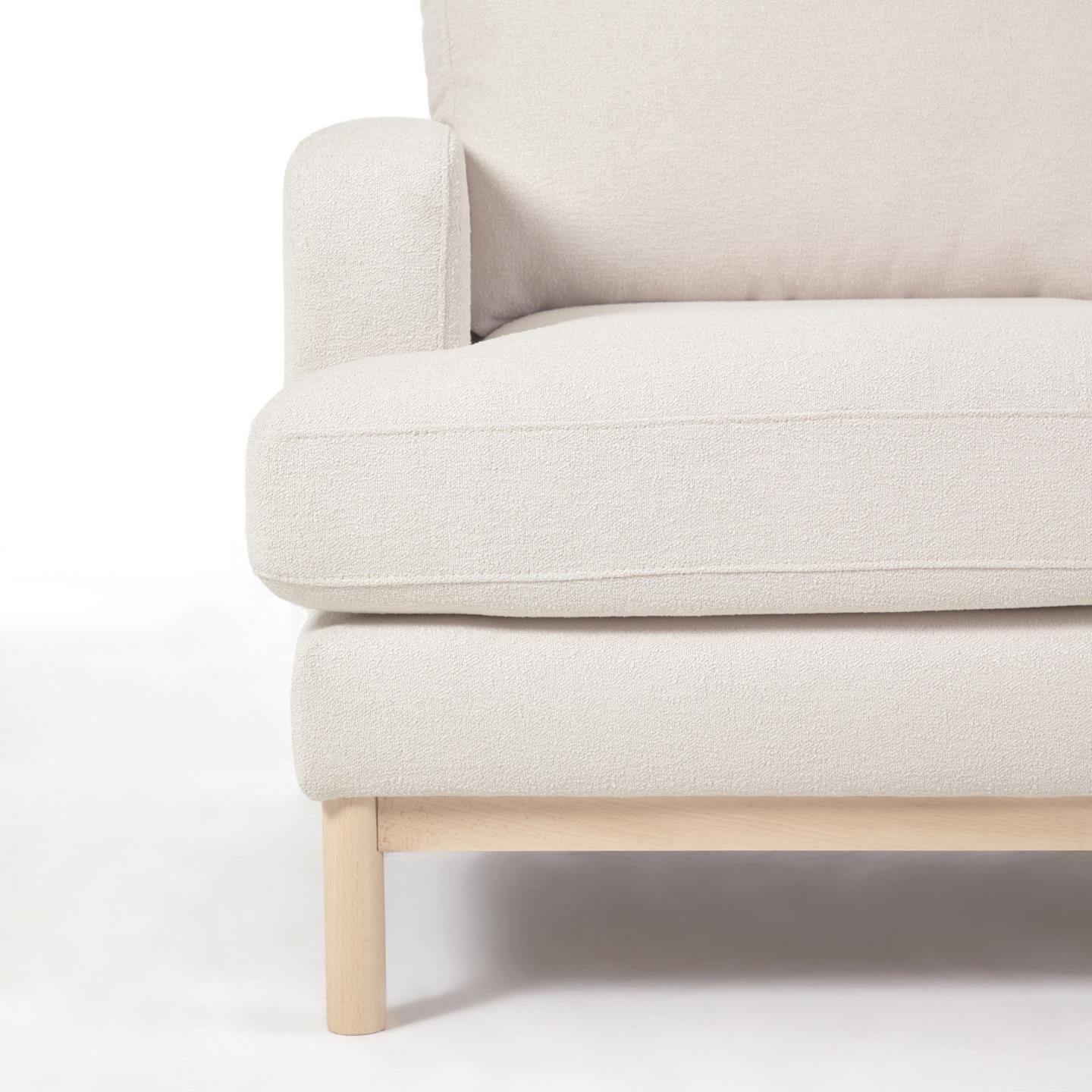 Narożnik prawostronny Mihaela w odcieniu kremowego bouclé to nie tylko wyraz doskonałego designu od Kave Home, ale także świadomej troski o naszą planetę. Z tapicerką wykonaną z mikro bouclé oraz wypełnieniem PET pochodzącym z recyklingu, Mihaela łączy w sobie luksusową estetykę z zaangażowaniem w ochronę środowiska.