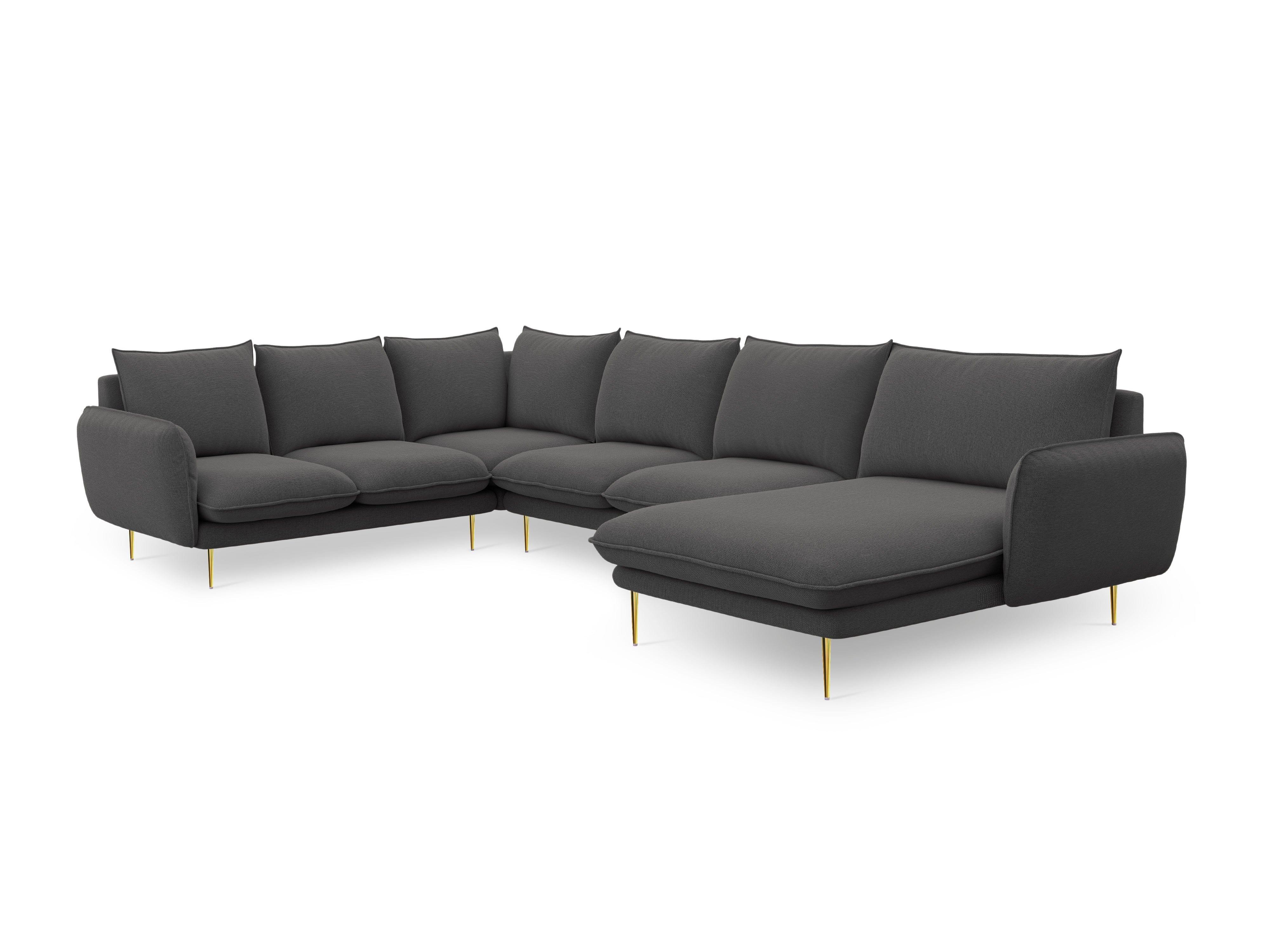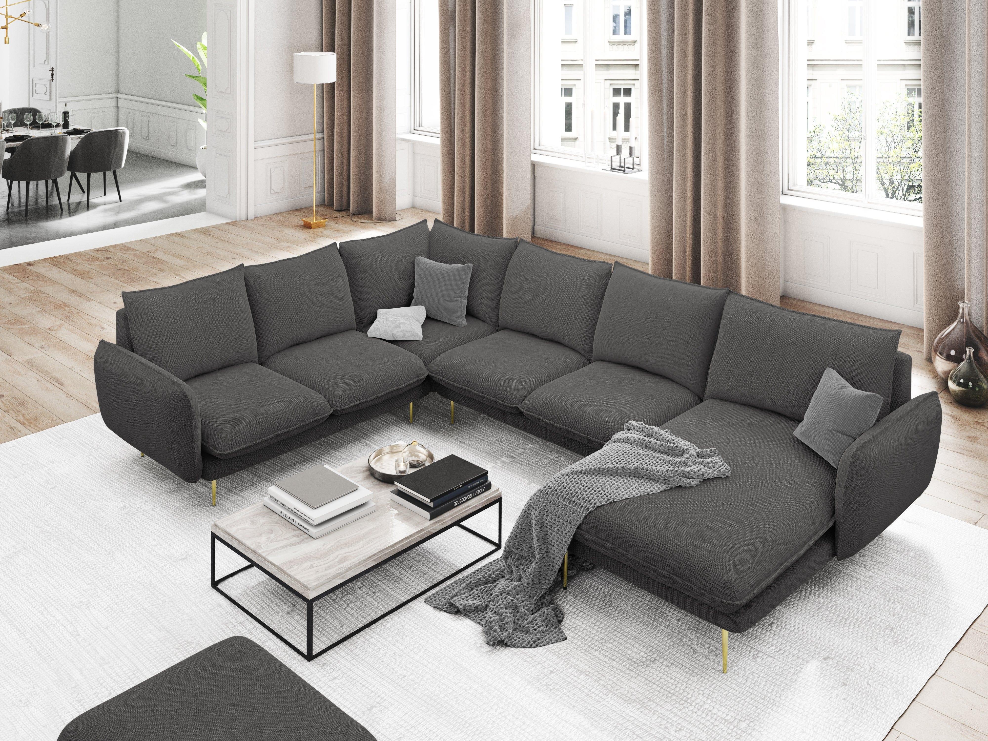Narożnik panoramiczny Vienna wyróżniają piękne proporcje i harmonijne kształty. Narożnik do salonu jest nie tylko wygodny, ale też wprowadzi do wnętrza nutę paryskiego szyku i elegancji. Subtelna forma i miękkie siedzisko zapewnią niezwykły komfort użytkowania. Metalowe nogi nadają całej formie lekkości.