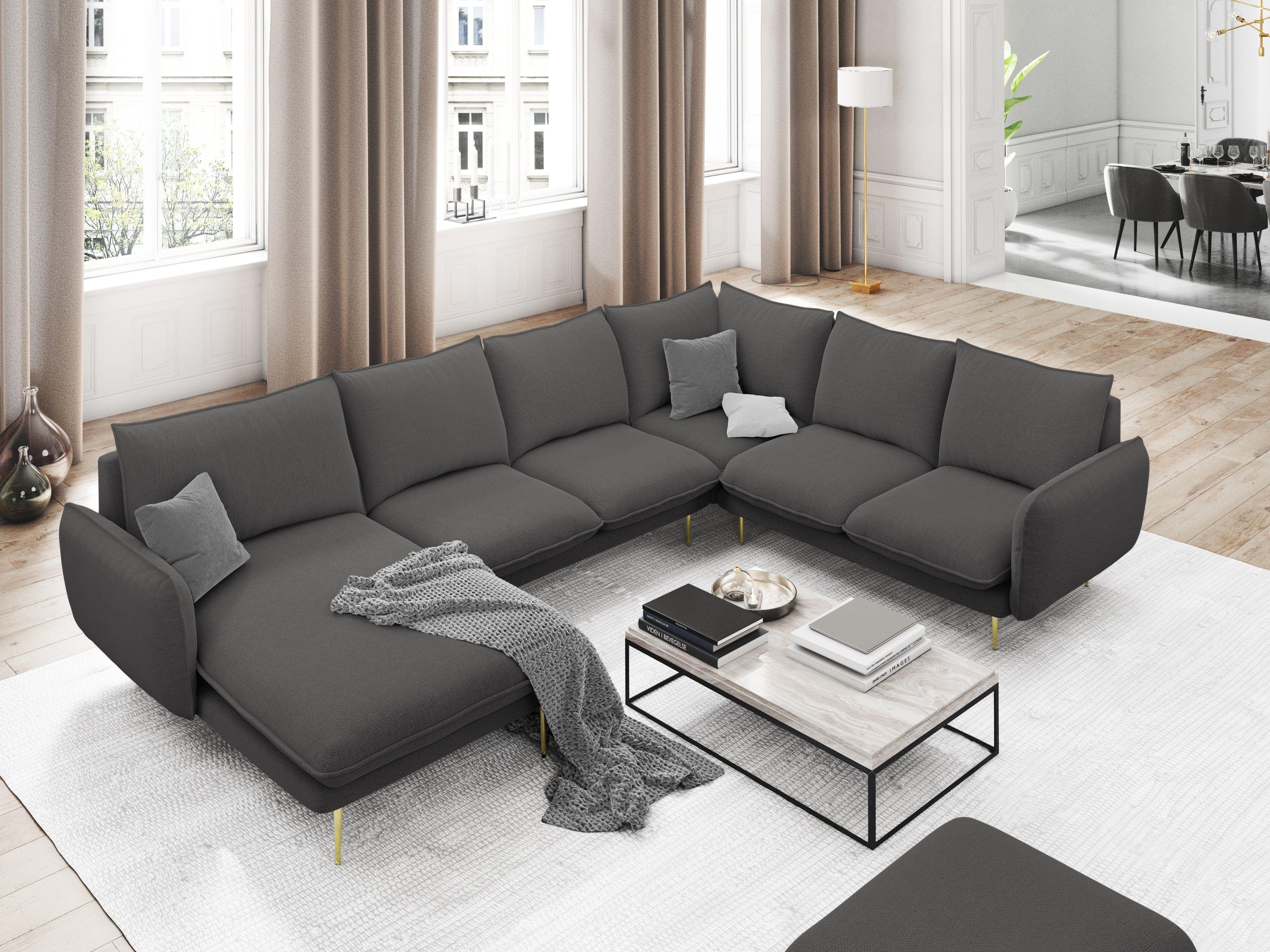 Narożnik prawostronny panoramiczny VIENNA ciemnoszary ze złotą podstawą