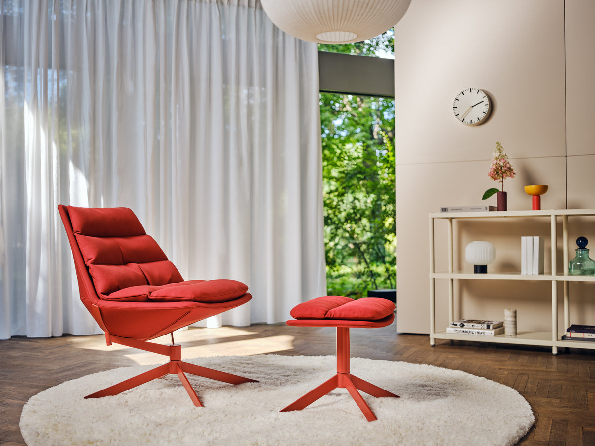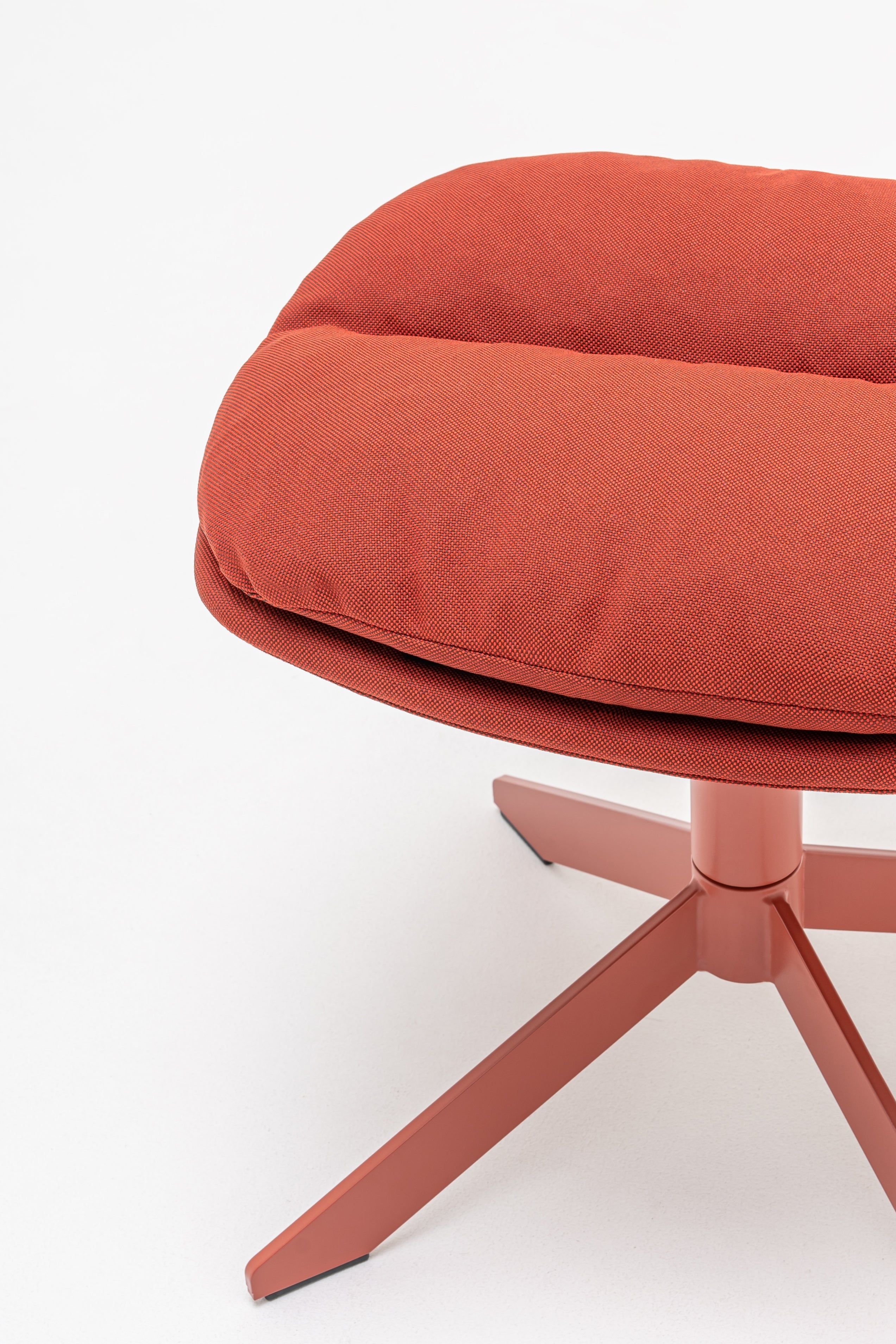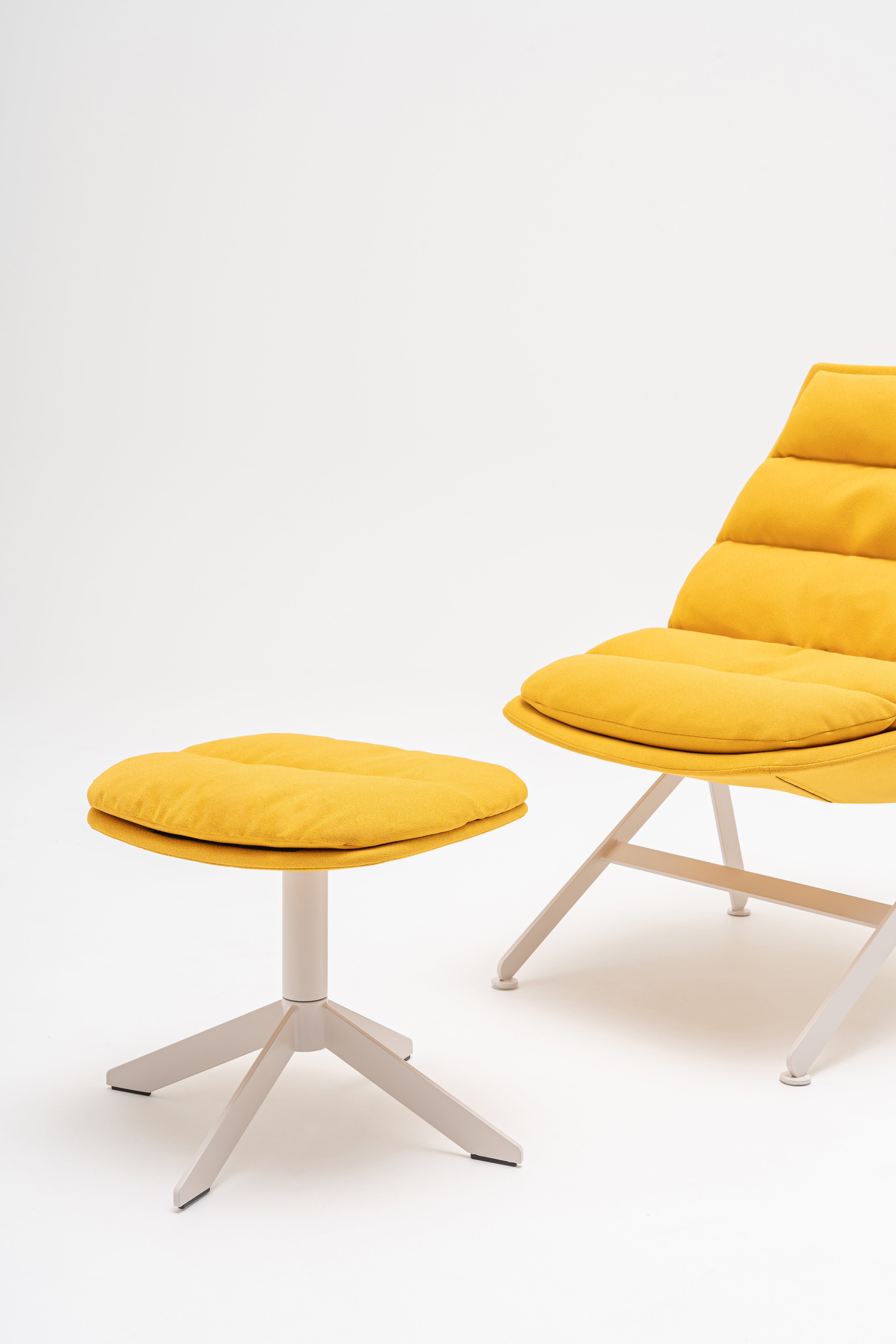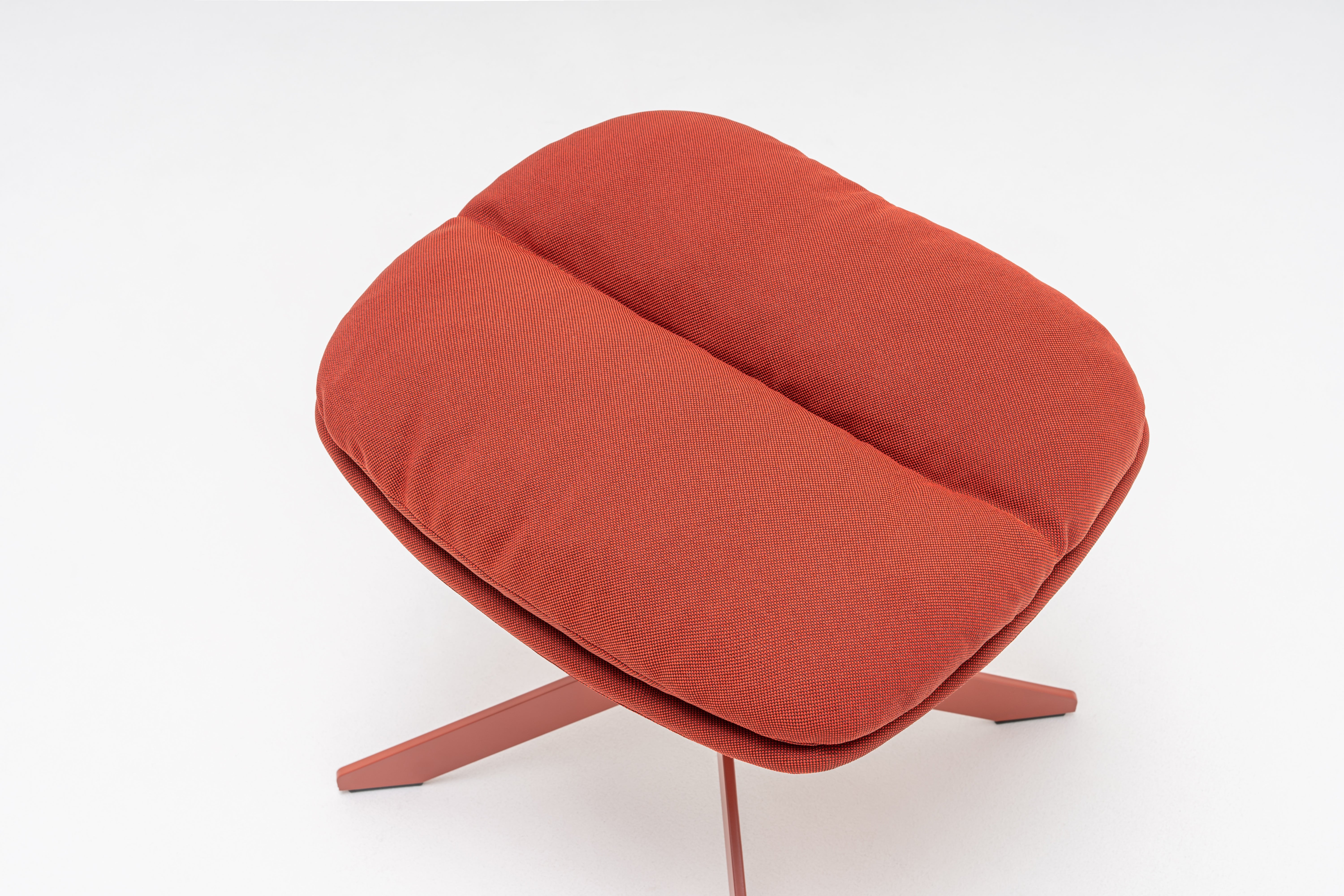 Fotel Fat Frank to synonim najwyższego komfortu, dzięki miękkim poduszkom i obrotowej podstawie, który zaprasza do pełnego relaksu. Jego elegancka, zaokrąglona forma, z głębokim siedziskiem i odchylonym o 30° oparciem, pozwala na swobodne oparcie się i otwarcie klatki piersiowej, co sprzyja wygodnemu siedzeniu bez garbienia się. Fotel dostępny jest na klasycznej czworonożnej lub czteroramiennej obrotowej podstawie, co dodaje mu nowoczesnego charakteru.