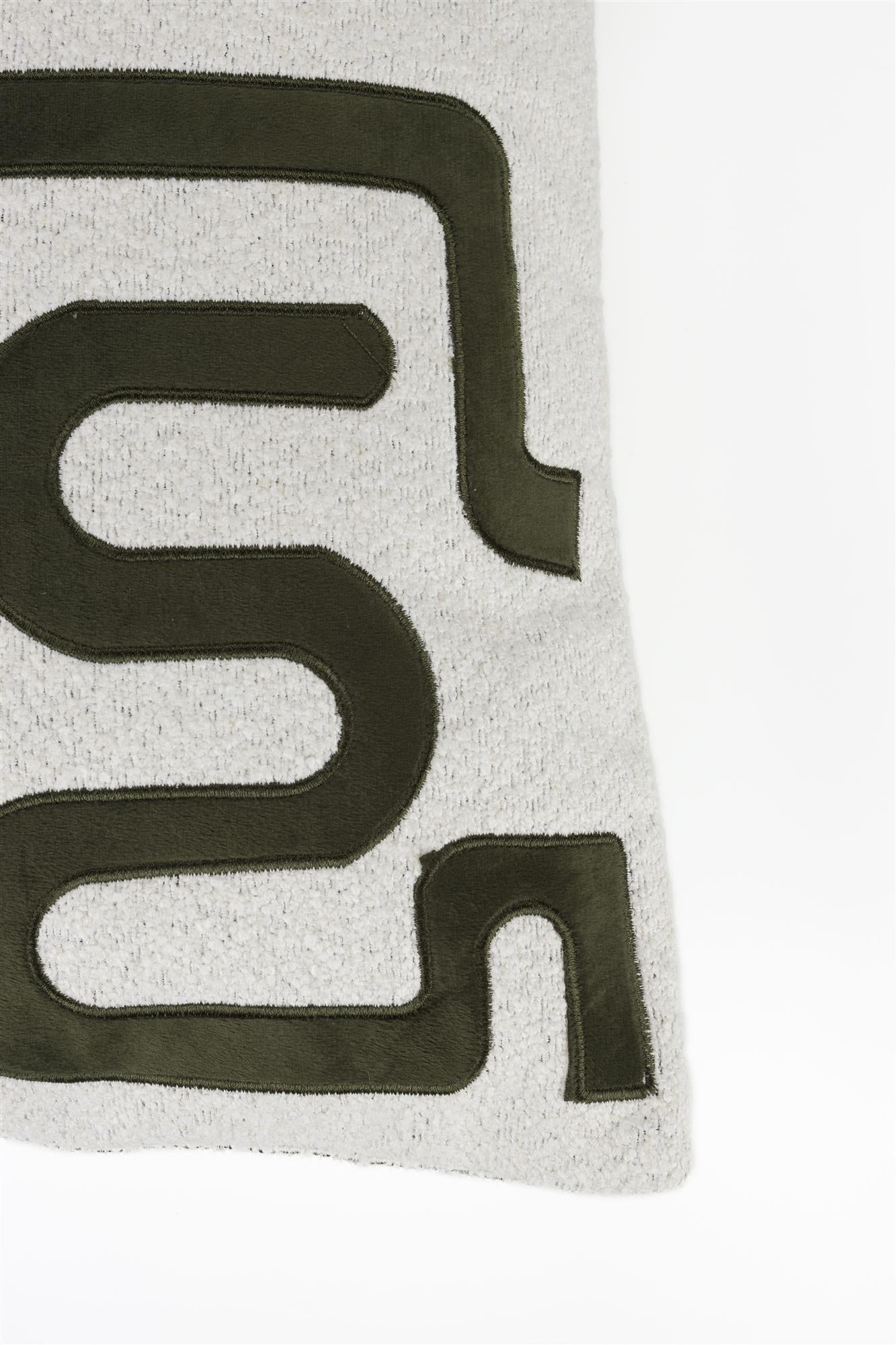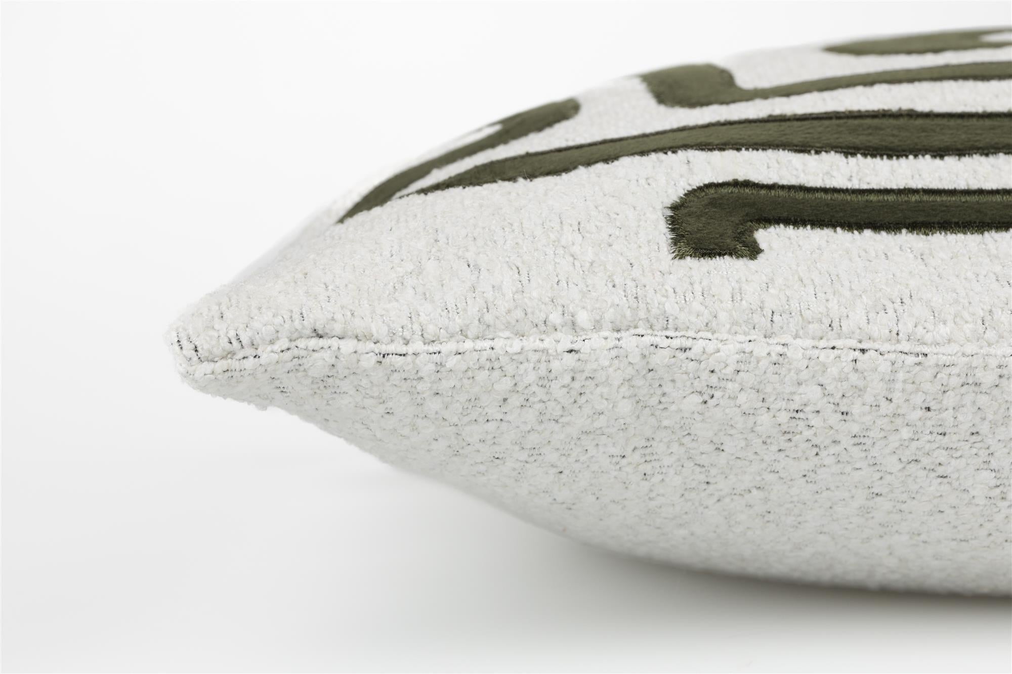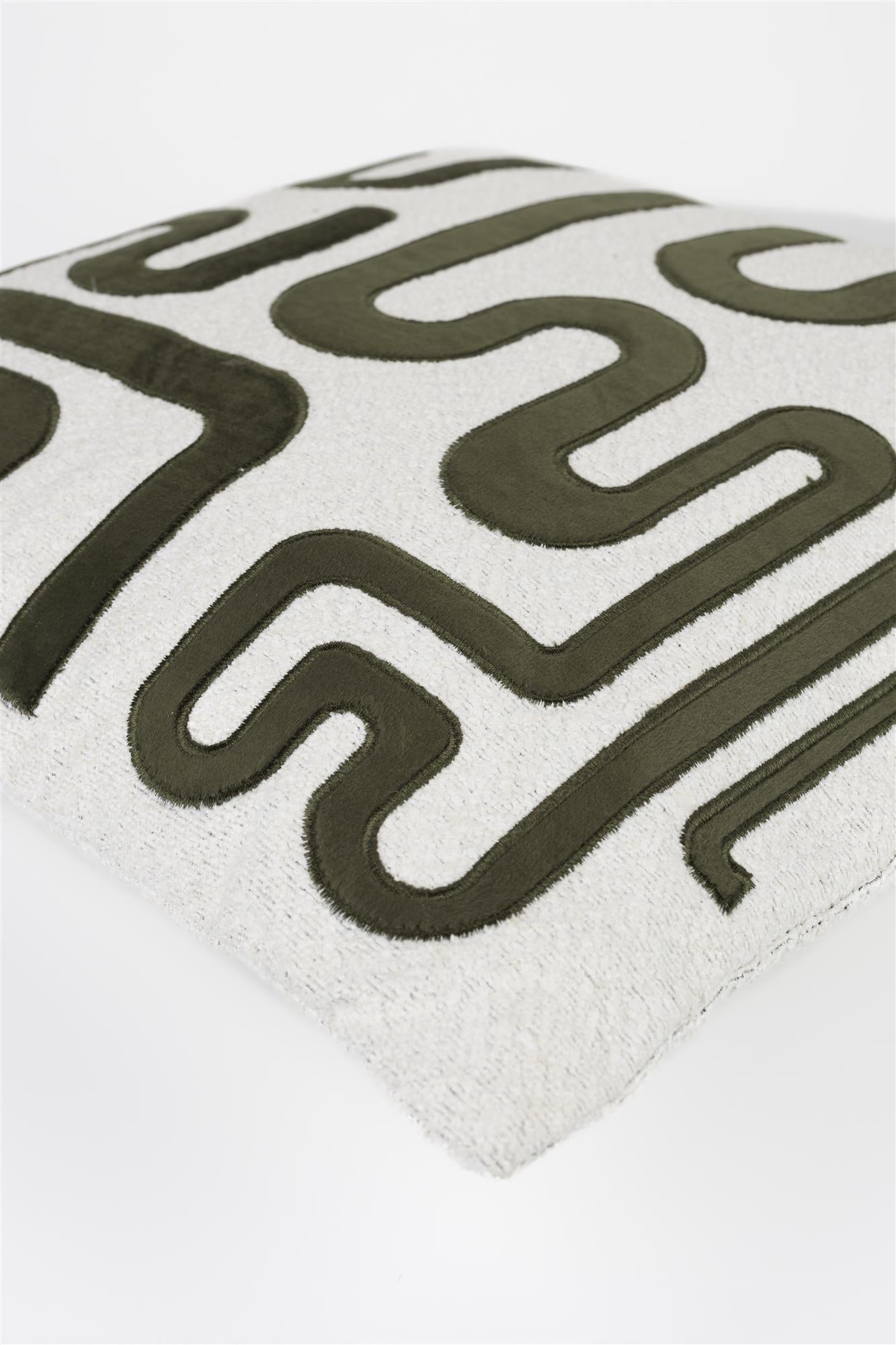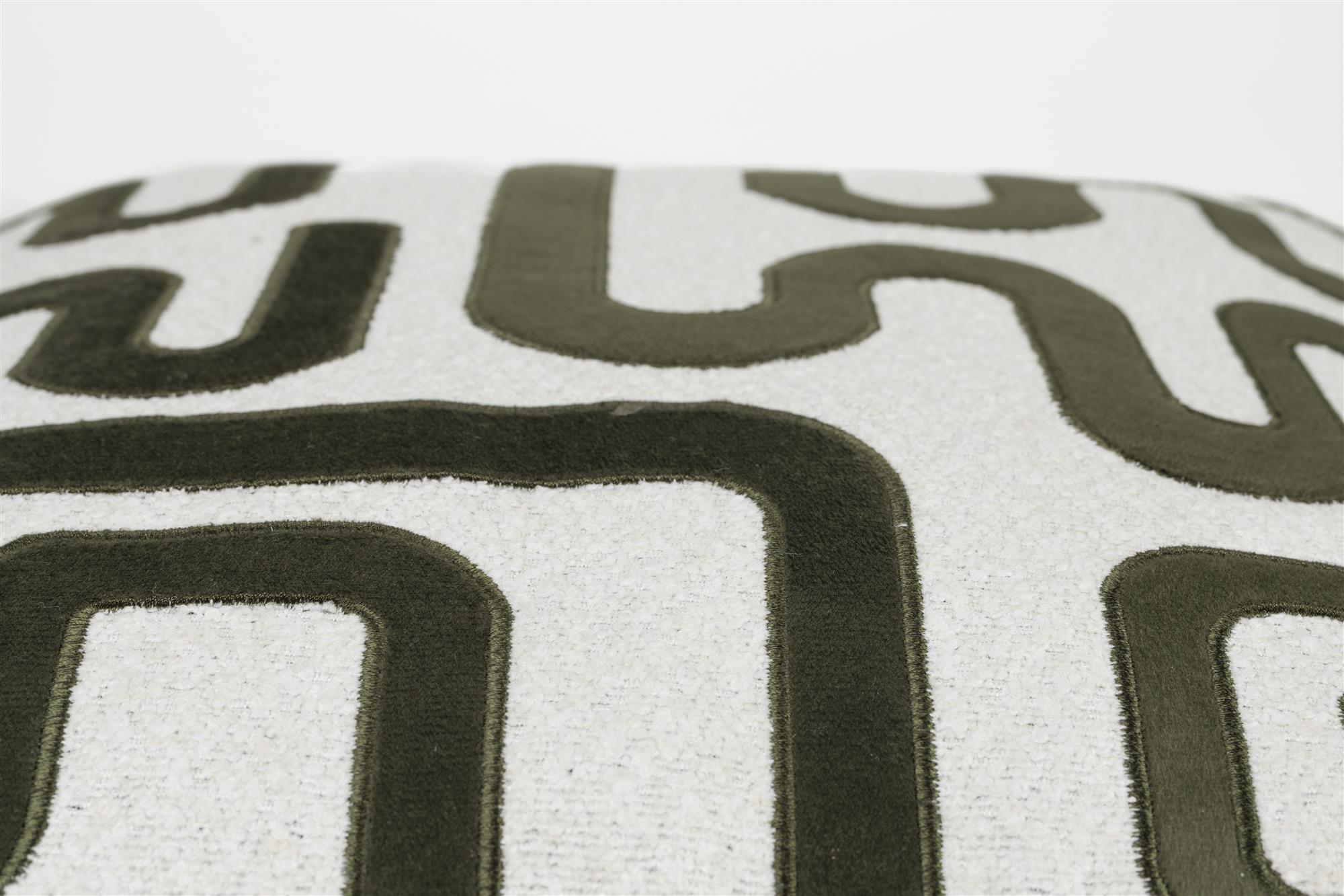 Ta poduszka dekoracyjna to designerski akcent, który wnosi do wnętrza nie tylko komfort, ale i graficzną wyrazistość. Aksamitny wzór w kolorze zielonym kontrastuje z jasnym tłem, tworząc przyciągającą uwagę kompozycję inspirowaną formami geometrycznymi i stylem retro. Idealnie sprawdzi się w nowoczesnych salonach, sypialniach lub przestrzeniach w stylu mid-century modern.