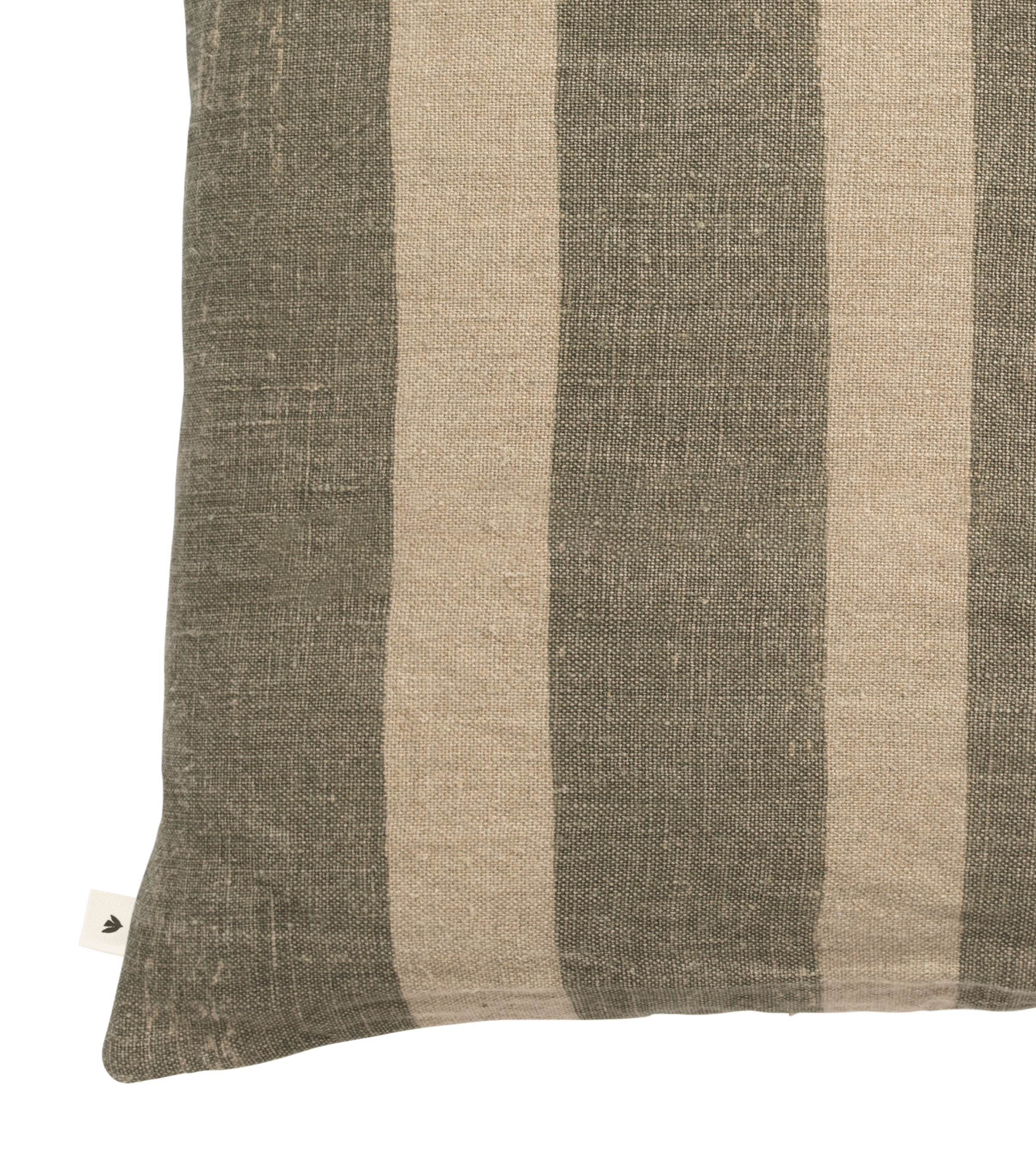 Poduszka dekoracyjna Oleo wykonana jest ze 100% zmiękczanego lnu i zdobiona ręcznie nanoszonym wzorem metodą sitodruku. Artystyczne, odręczne linie nadają jej unikalny charakter, a precyzyjne wykonanie podkreśla rzemieślniczy kunszt.