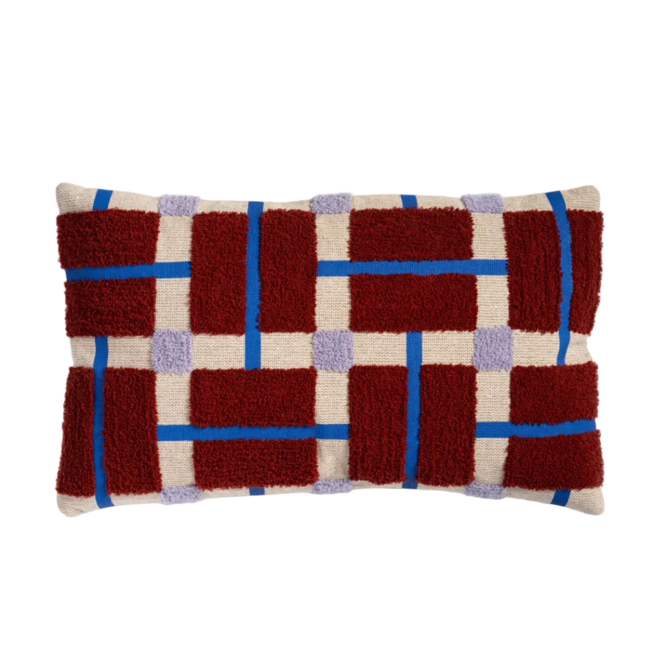 Poszewka na poduszkę PLANO bordowy z beżowym i niebieskim