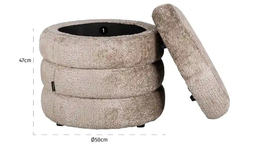 Nowoczesny puf Adele tapicerowany w miękkiej tkaninie boucle to idealny dodatek do wnętrz, w których liczy się styl i komfort. Okrągła forma z dekoracyjnymi przeszyciami nadaje mu oryginalny charakter, a neutralny kolor doskonale komponuje się zarówno z jasnymi, jak i ciemnymi aranżacjami. Może pełnić funkcję dodatkowego siedziska w salonie, praktycznego elementu przy toaletce czy designerskiego akcentu w sypialni.