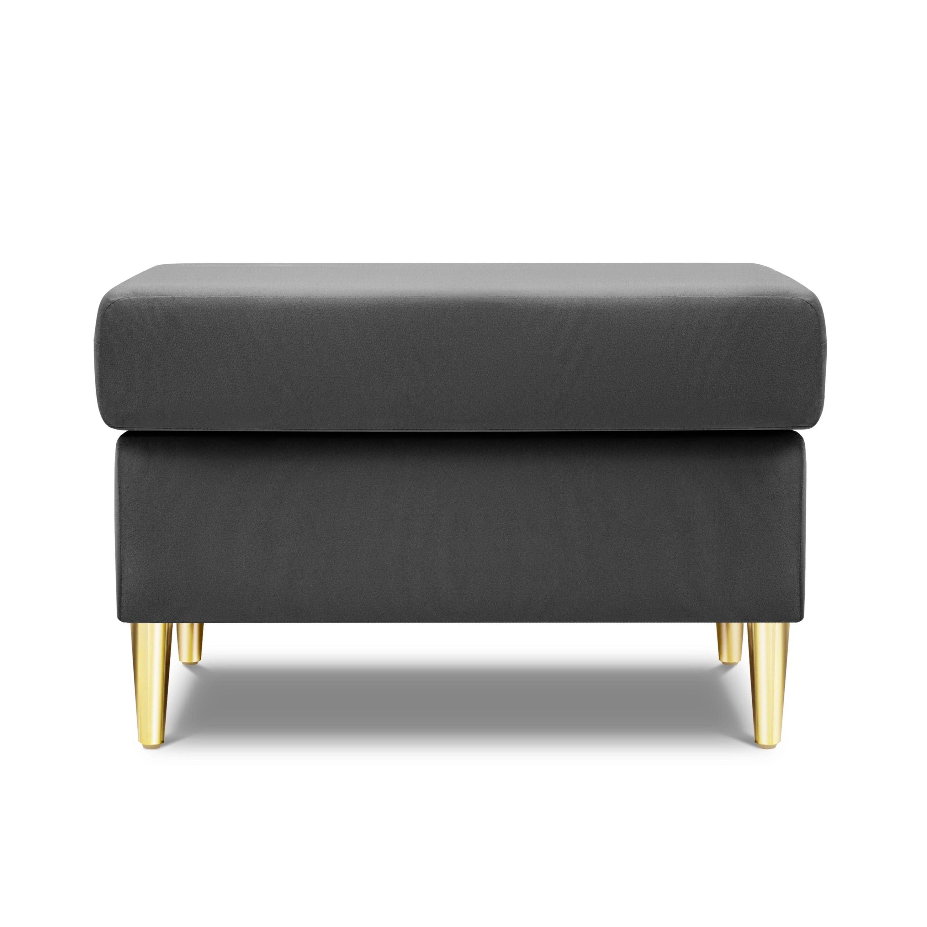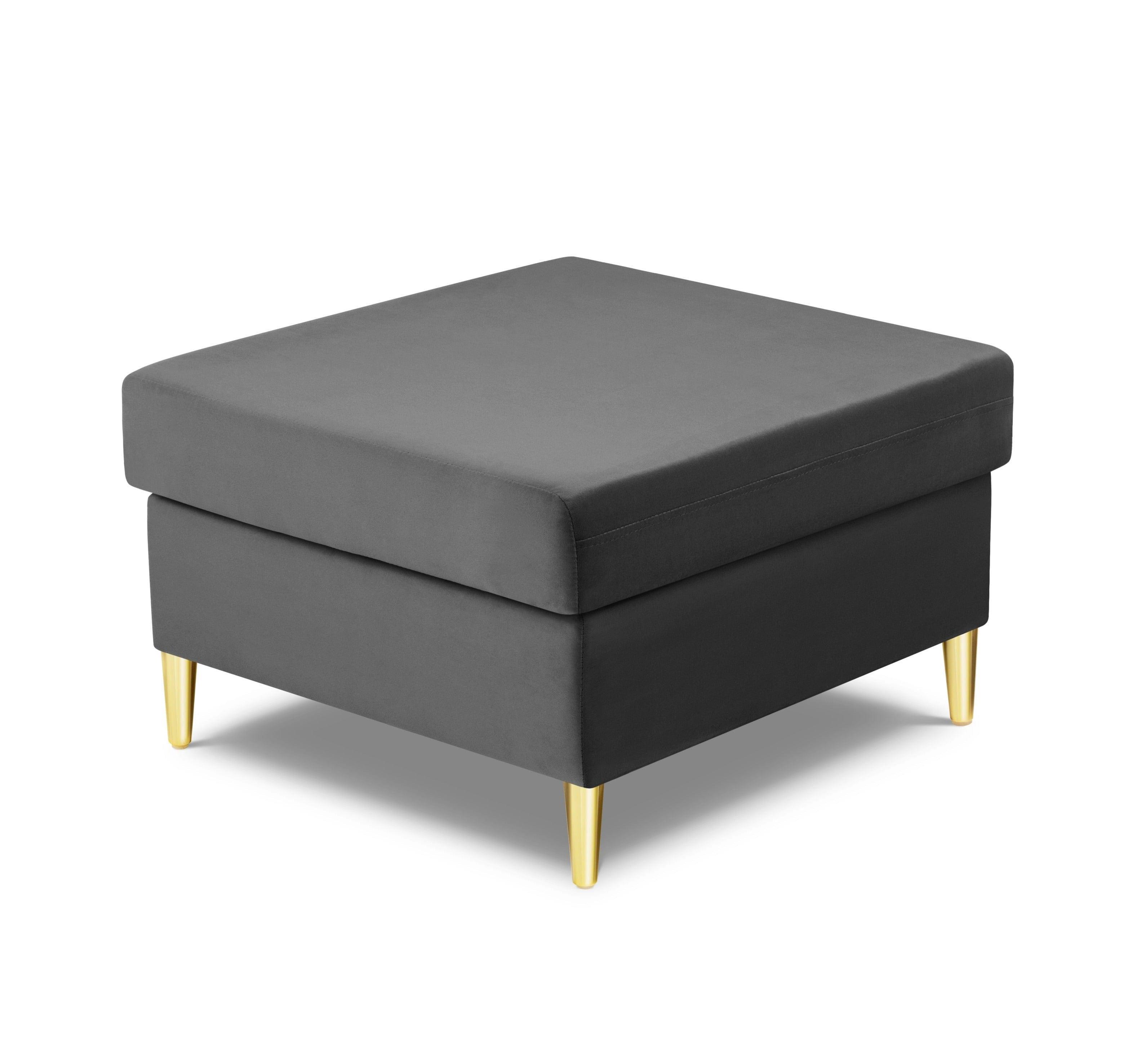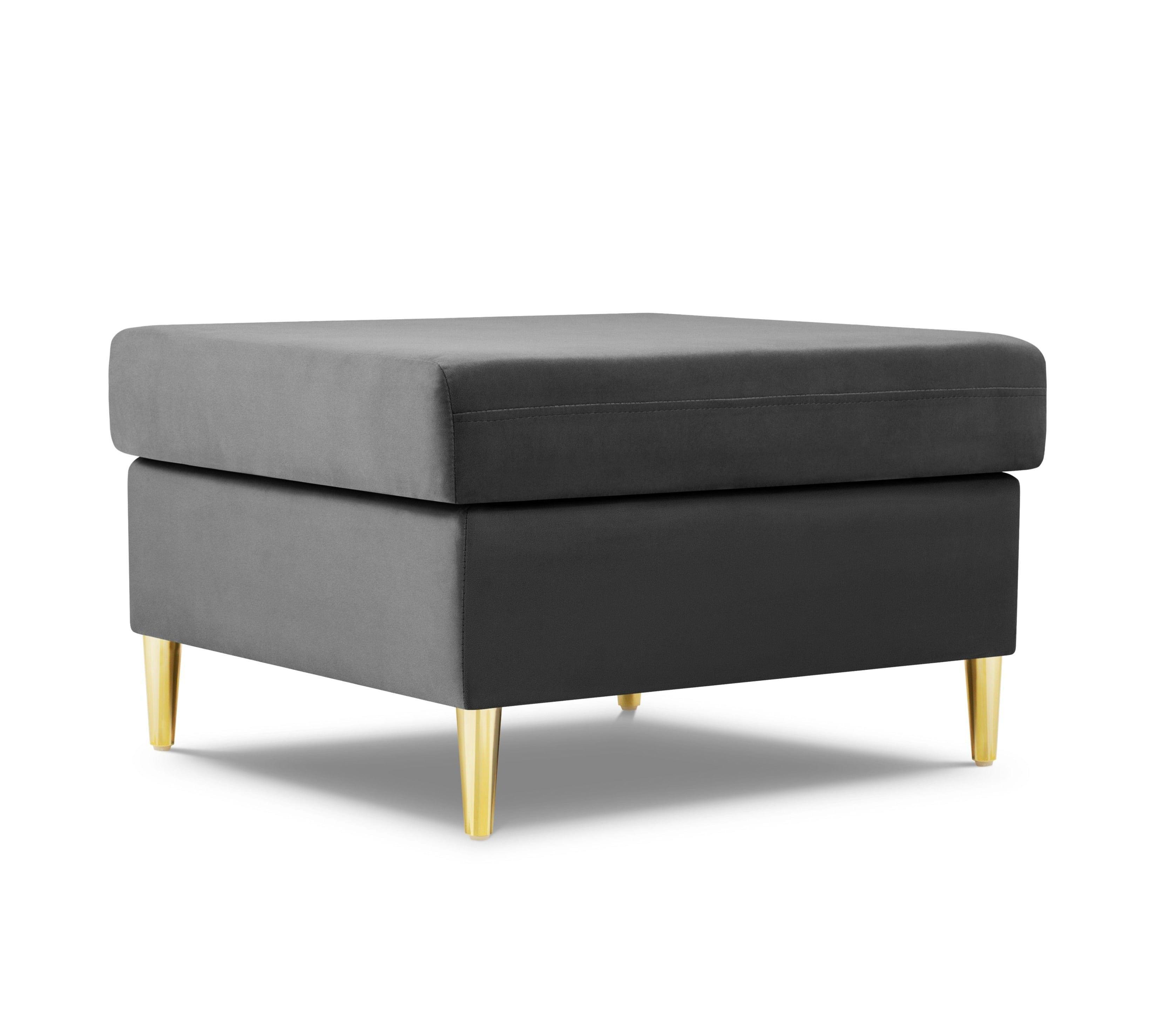 Puf aksamitny KYOTO jasnoszary ze złotą podstawą