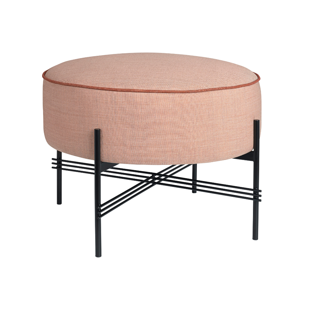 Puf dostępny jest w szerokiej gamie tkanin i skór, co pozwala dopasować go do każdego wnętrza — od minimalistycznych po bardziej dekoracyjne aranżacje. Lekka konstrukcja z czarnym malowaniem proszkowym w odcieniu zapewnia trwałość i elegancki wygląd, jednocześnie umożliwiając łatwe przestawianie mebla w zależności od potrzeb.