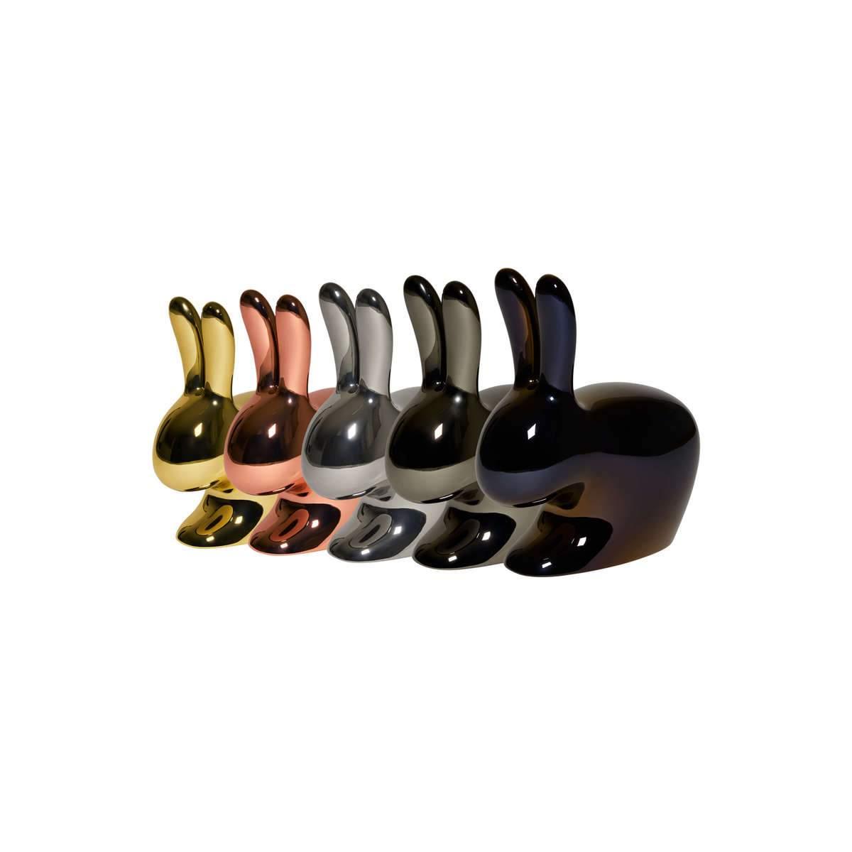 Warto zauważyć, że w wielu kulturach królik postrzegany jest jako zwierzę przynoszące szczęście domownikom. Połączenie zwierzęcego korpusu z konstrukcją krzesła, gdzie królicze uszy stają się oparciem, świetnie sprawdzi się w pokoju dziecięcym lub nastolatka. Wykonany z polietylenu z metalicznym wykończeniem