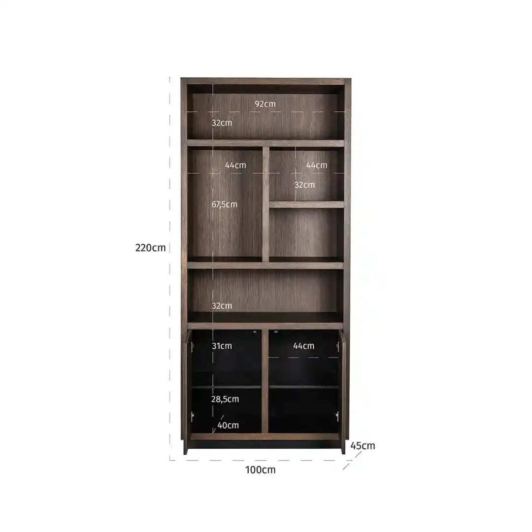 Dzięki swojej pojemności i estetycznej konstrukcji, regał na książki Oakura sprawdzi się zarówno w salonie, jak i gabinecie czy domowej bibliotece. Dolne zamykane szafki zapewniają dodatkowe miejsce do przechowywania, co czyni go wyjątkowo funkcjonalnym. To idealny wybór, jeśli szukasz stylowego i praktycznego rozwiązania – regał do salonu, który doda wnętrzu klasy i porządku. Regał brązowy Oakura harmonijnie wpisuje się w eleganckie aranżacje i nadaje im przytulny charakter.