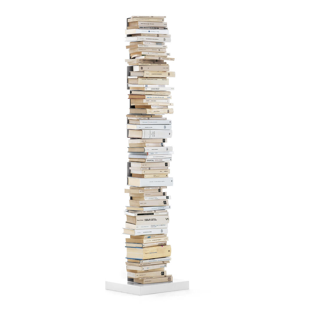 Regał Original Ptolomeo, zaprojektowany przez Bruno Rainaldiego i nagrodzony prestiżowym Compasso d’Oro w 2004 roku, to ikona współczesnego designu, która rewolucjonizuje sposób przechowywania książek. Ten stojący, pionowy regał to z pozoru prosta stalowa kolumna, do której przymocowane są cienkie półki. Wypełniony książkami, znika z pola widzenia, eksponując jedynie swoją zawartość, co nadaje mu niepowtarzalny efekt – jakby książki unosiły się w powietrzu.