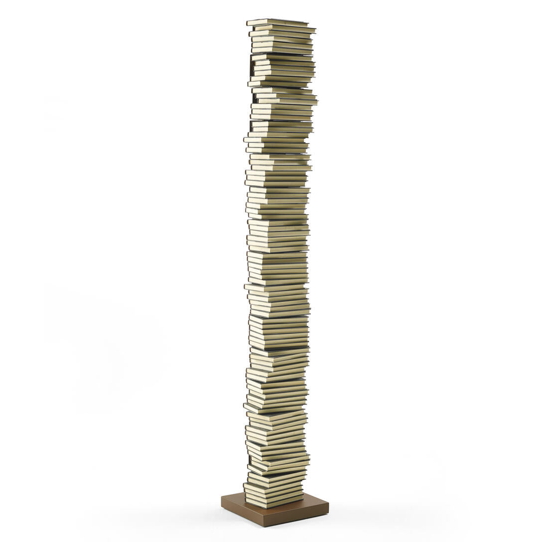 Regał Original Ptolomeo, zaprojektowany przez Bruno Rainaldiego i nagrodzony prestiżowym Compasso d’Oro w 2004 roku, to ikona współczesnego designu, która rewolucjonizuje sposób przechowywania książek. Ten stojący, pionowy regał to z pozoru prosta stalowa kolumna, do której przymocowane są cienkie półki. Wypełniony książkami, znika z pola widzenia, eksponując jedynie swoją zawartość, co nadaje mu niepowtarzalny efekt – jakby książki unosiły się w powietrzu.