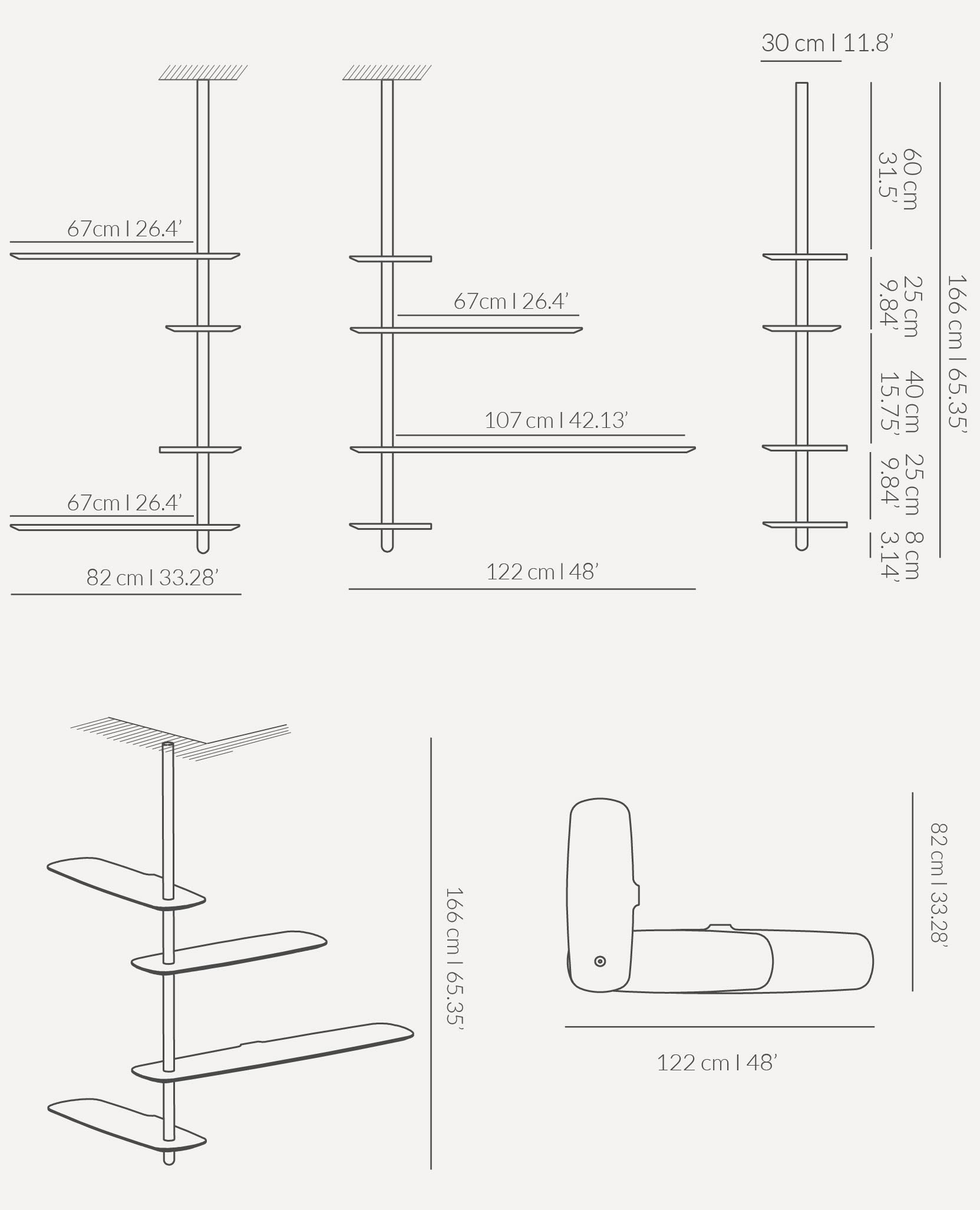 Unica w konfiguracji 09 to minimalistyczny regał wiszący o lekkiej, architektonicznej formie, który pozwala efektownie zagospodarować ścianę w salonie, gabinecie lub przestrzeni komercyjnej. Ten regał wiszący łączy funkcjonalność z elegancką linią, tworząc wyrazistą kompozycję półek o zróżnicowanych długościach.