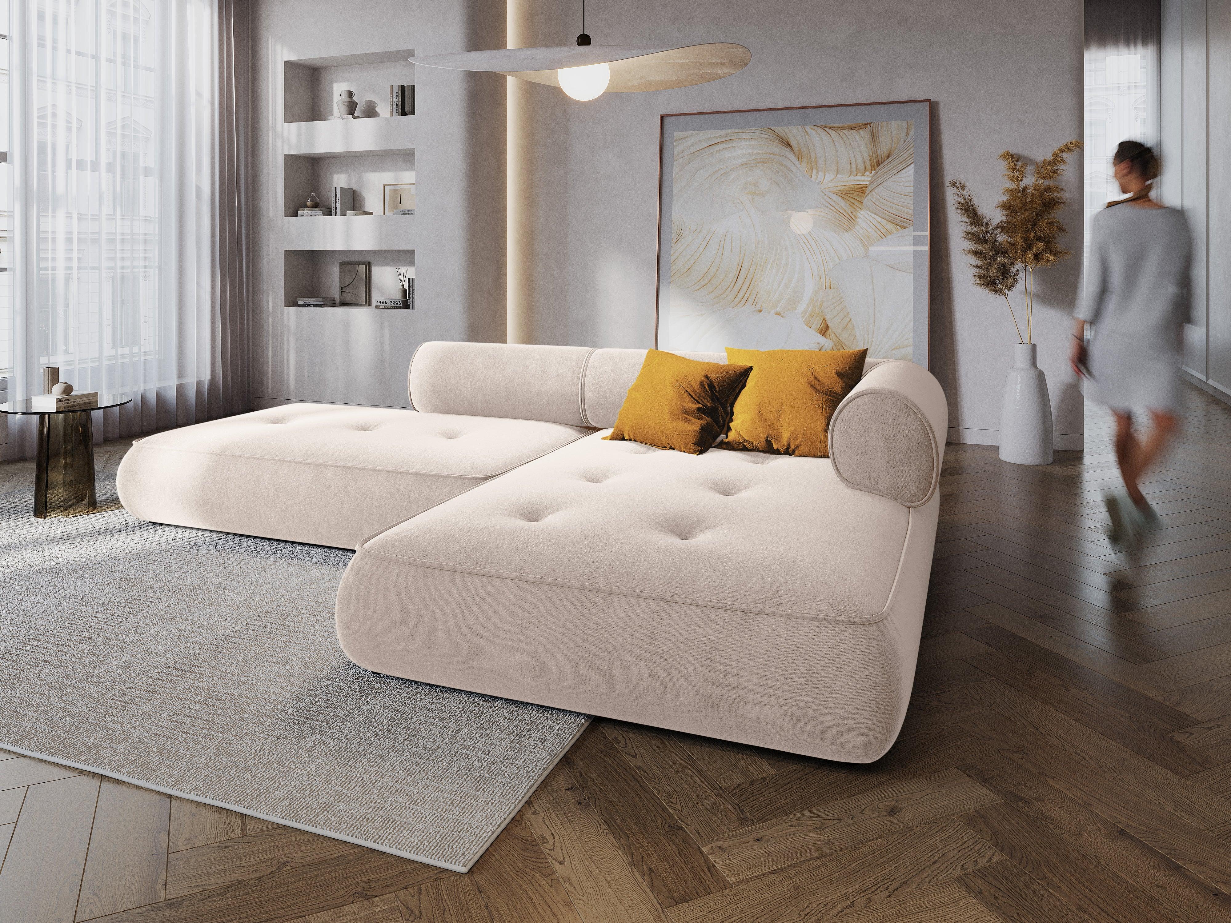 Narożnik w tkaninie szenilowej prawostronny otwarty LILY jasnobeżowy