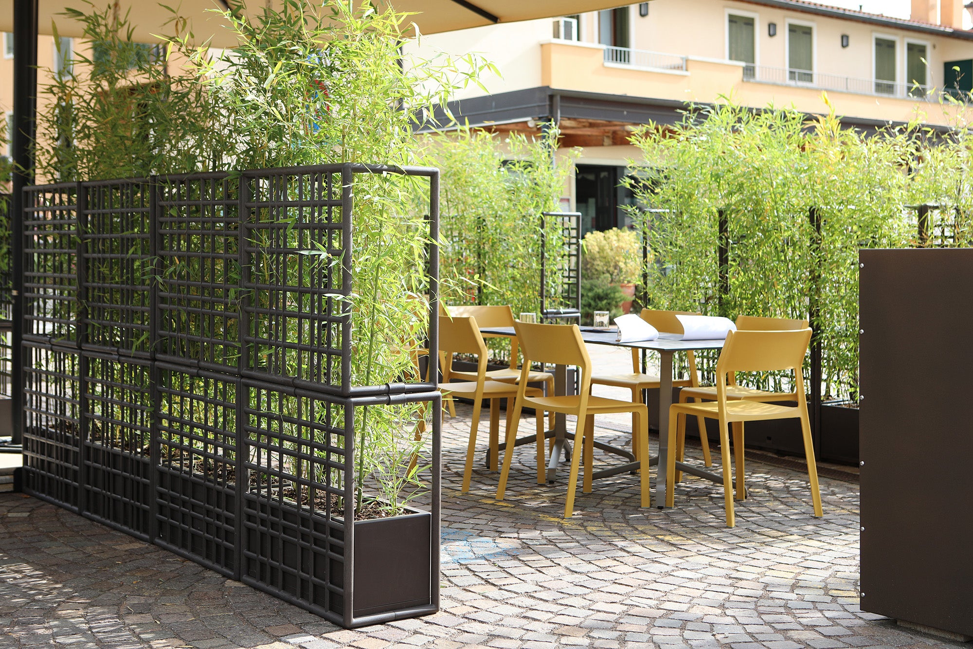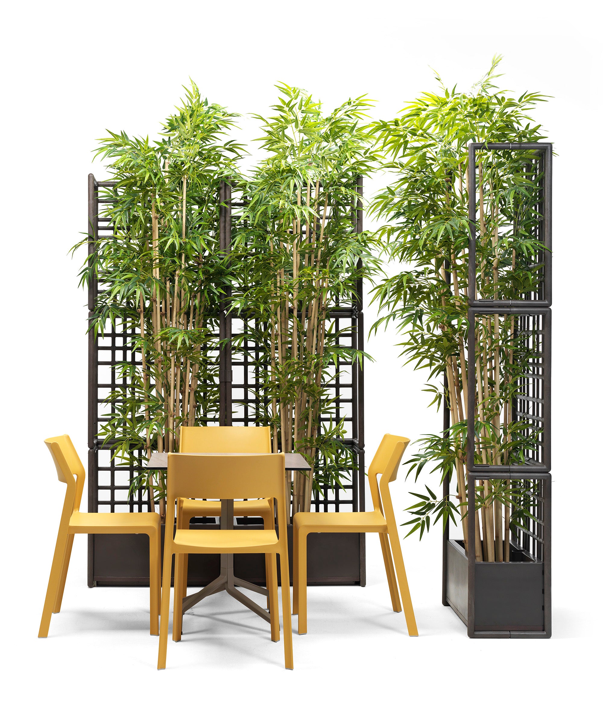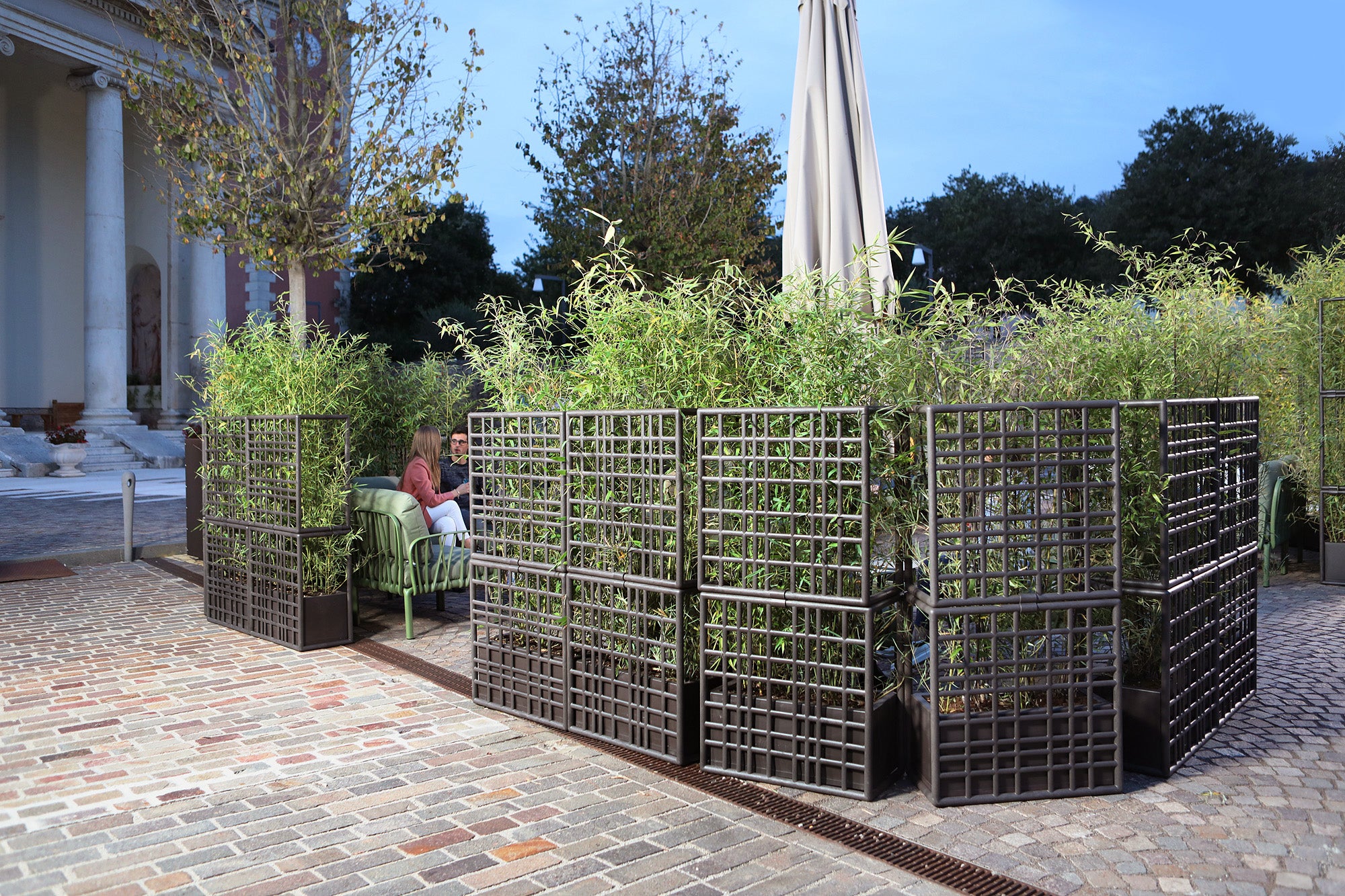 Każdy element systemu modułowego Sipario wyposażony jest w samo-nawadniający pojemnik na rośliny, który pełni funkcję dekoracyjną, a także ułatwia pielęgnację roślin. Moduły składają się z elementów siatki, które łatwo łączą się bez użycia śrub, co umożliwia szybki montaż i demontaż. System pozwala na pionowe układanie modułów, tworząc ścianę o maksymalnej wysokości trzech komponentów. Aby zapewnić stabilność, pojemnik należy wypełnić balastem o wadze co najmniej 30 kg. Wykonany z regenerowanego polipropylenu wzmocnionego włóknem szklanym z dodatkami UV, system gwarantuje trwałość i odporność na warunki atmosferyczne, a matowe wykończenie nadaje całości eleganckiego wyglądu. Sipario to ekologiczne i praktyczne rozwiązanie, które wprowadza stylową organizację przestrzeni na świeżym powietrzu.