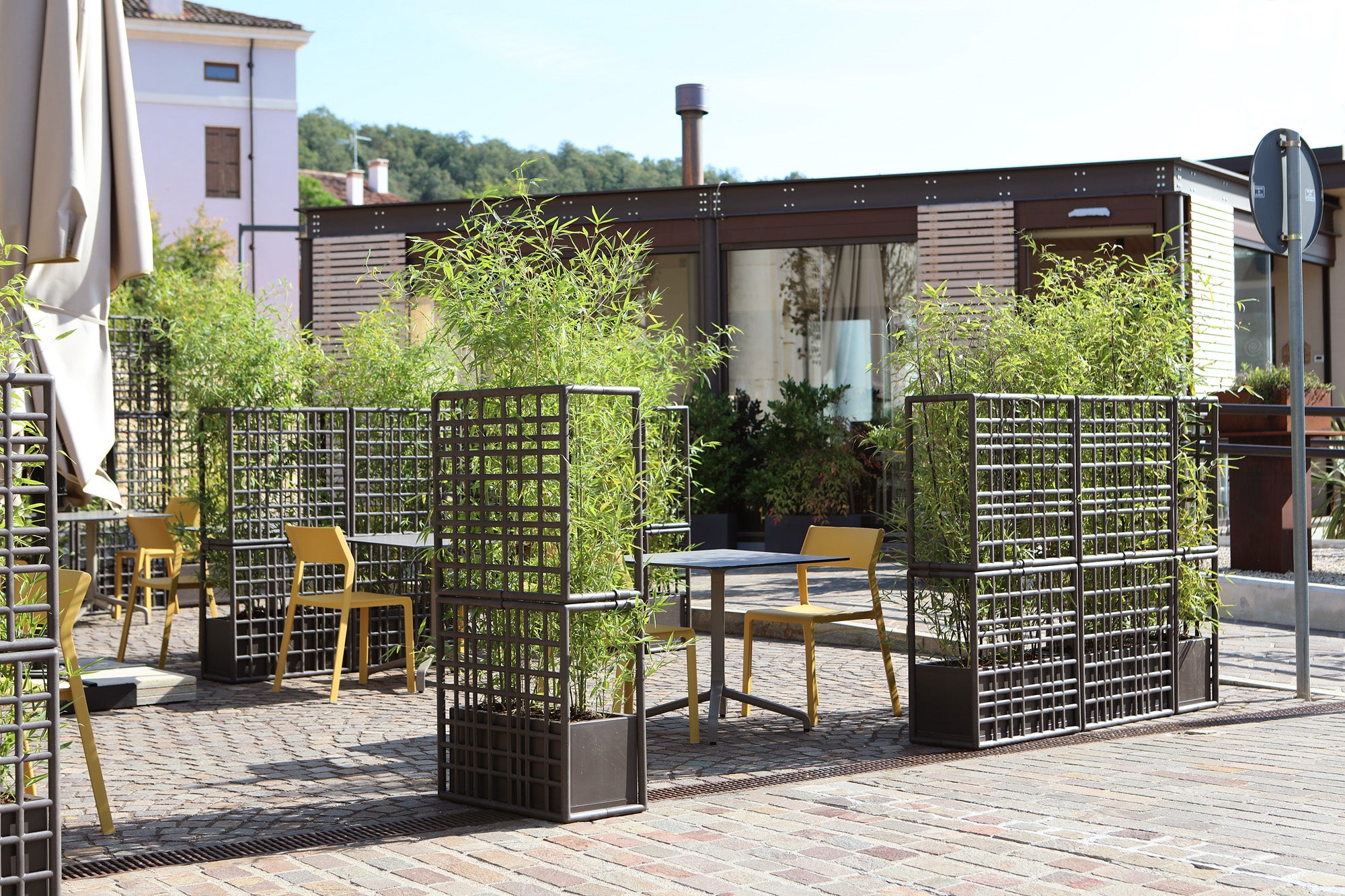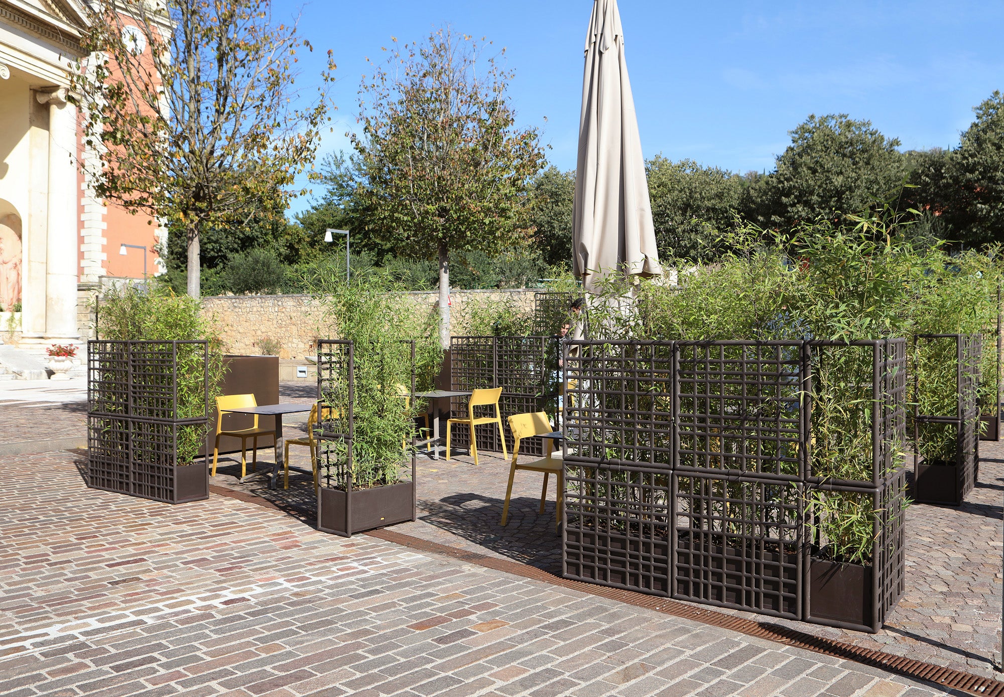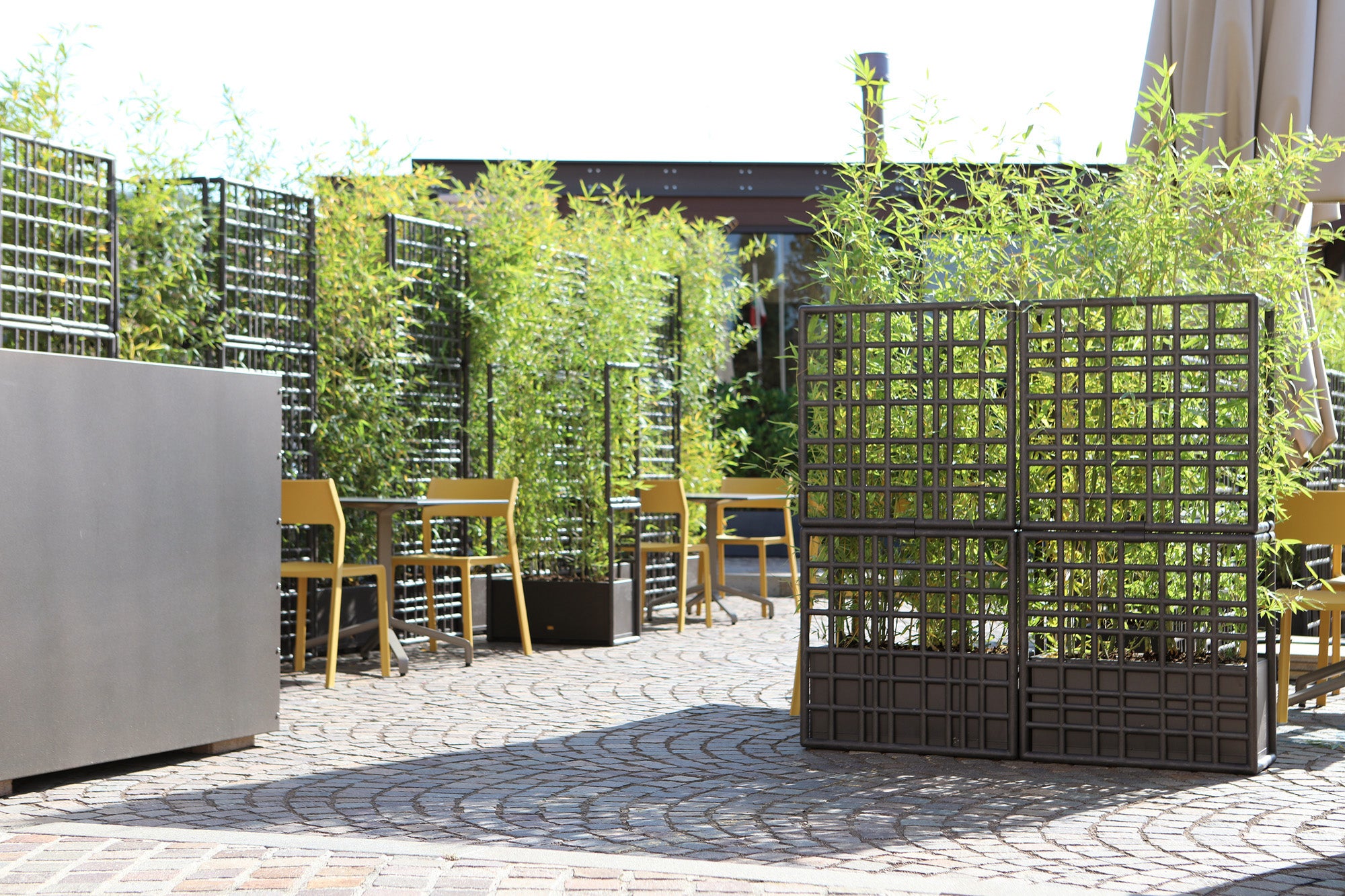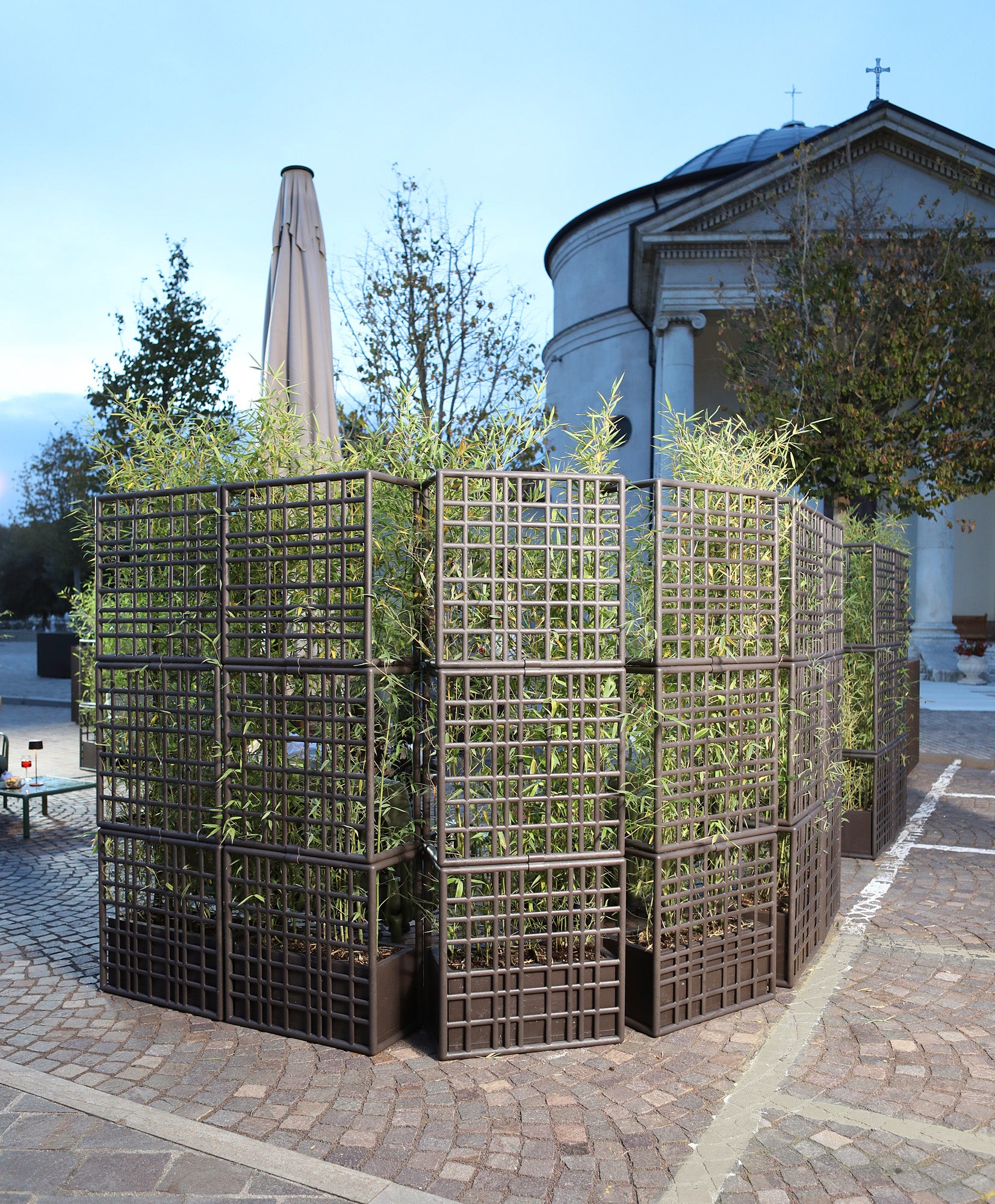 Każdy element systemu modułowego Sipario wyposażony jest w samo-nawadniający pojemnik na rośliny, który pełni funkcję dekoracyjną, a także ułatwia pielęgnację roślin. Moduły składają się z elementów siatki, które łatwo łączą się bez użycia śrub, co umożliwia szybki montaż i demontaż. System pozwala na pionowe układanie modułów, tworząc ścianę o maksymalnej wysokości trzech komponentów. Aby zapewnić stabilność, pojemnik należy wypełnić balastem o wadze co najmniej 30 kg. Wykonany z regenerowanego polipropylenu wzmocnionego włóknem szklanym z dodatkami UV, system gwarantuje trwałość i odporność na warunki atmosferyczne, a matowe wykończenie nadaje całości eleganckiego wyglądu. Sipario to ekologiczne i praktyczne rozwiązanie, które wprowadza stylową organizację przestrzeni na świeżym powietrzu.
