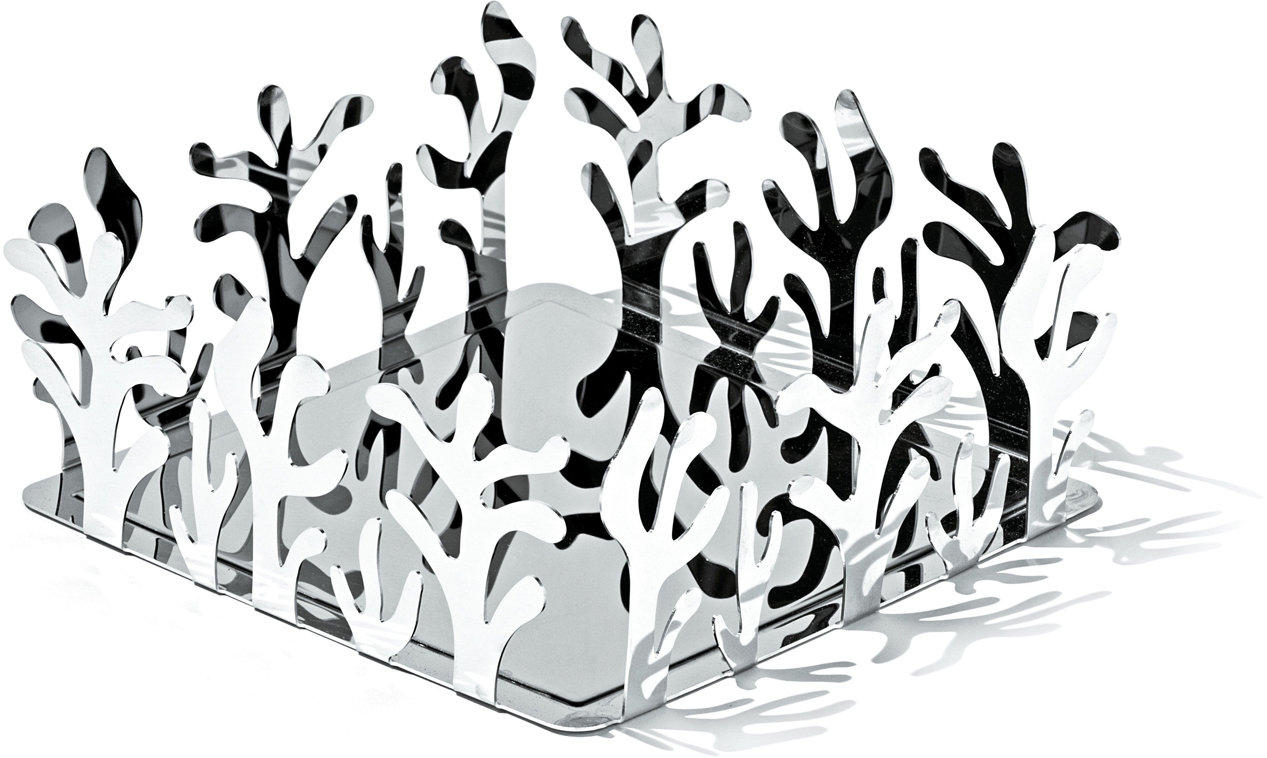 Serwetnik Mediterraneo, zaprojektowany przez Emmę Silvestris, to wyjątkowy element stołowy inspirowany naturą. Jego ażurowa forma nawiązuje do delikatnych kształtów koralowców, co nadaje serwetnikowi niepowtarzalny, organiczny charakter. Wykonany z metalu, serwetnik łączy funkcjonalność z artystycznym wyrazem, idealnie wpisując się w elegancki wystrój wnętrza. Dzięki swojej symbolice i precyzyjnemu wykonaniu, wprowadza do przestrzeni stołowej odrobinę magii Morza Śródziemnego, będąc jednocześnie praktycznym dodatkiem do codziennego użytku.