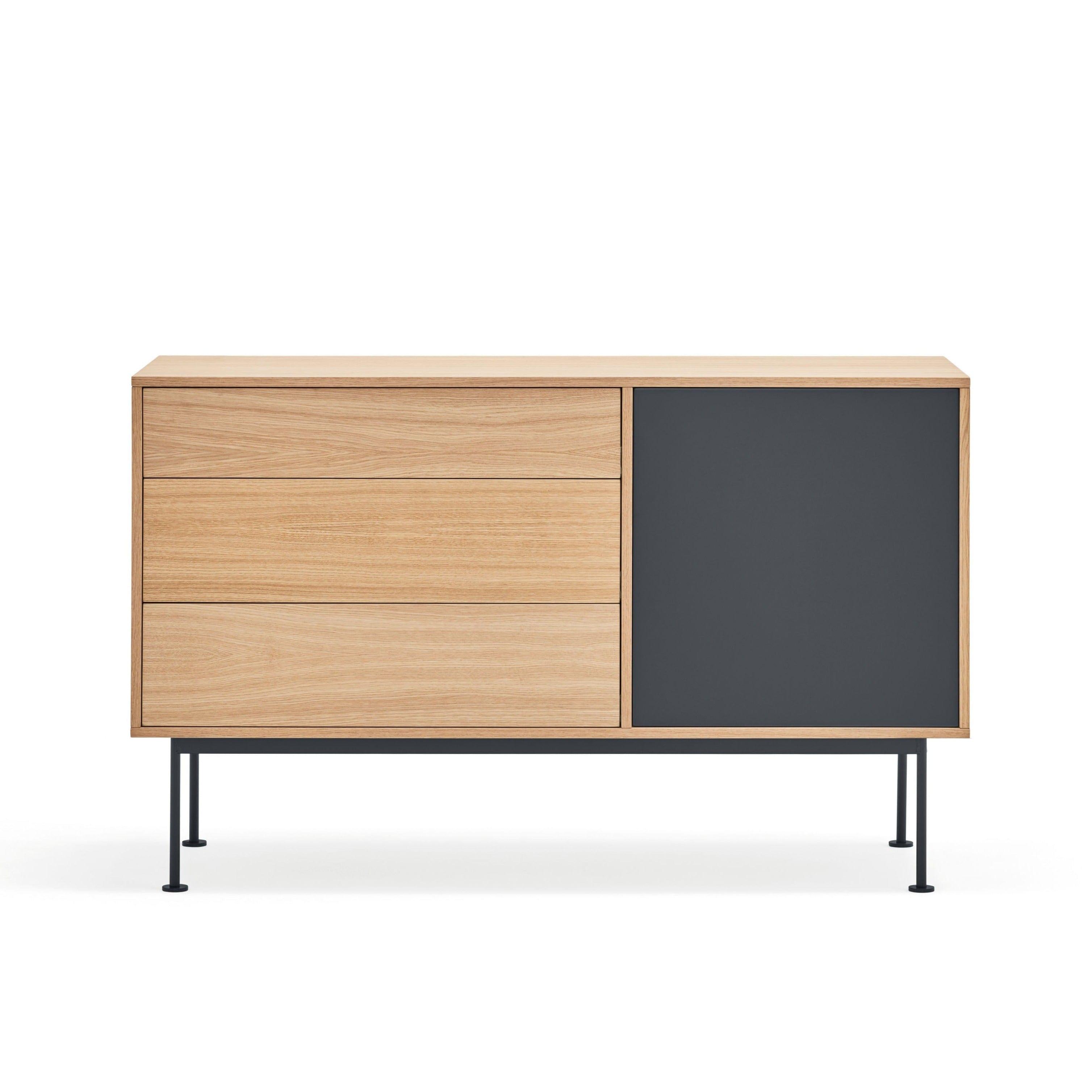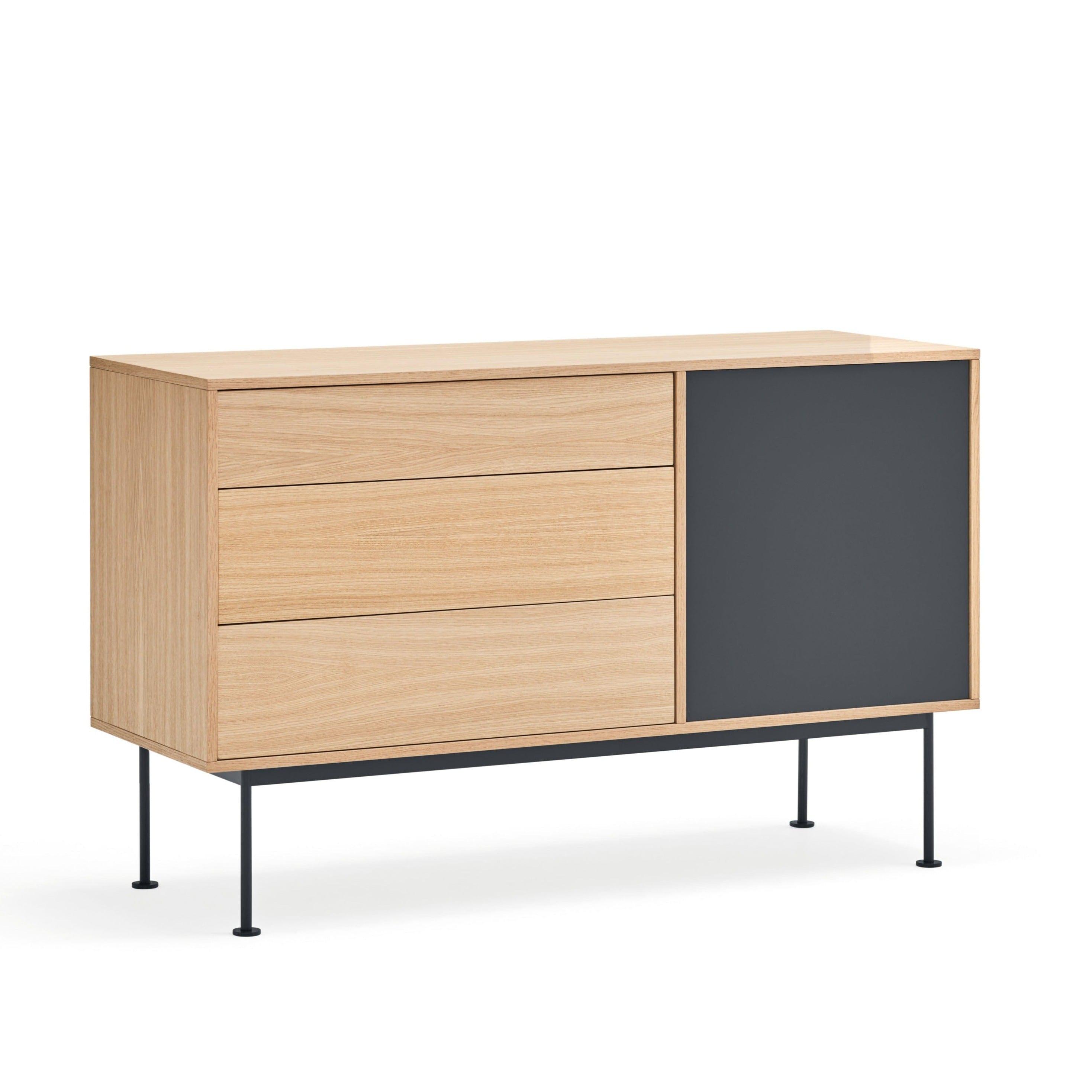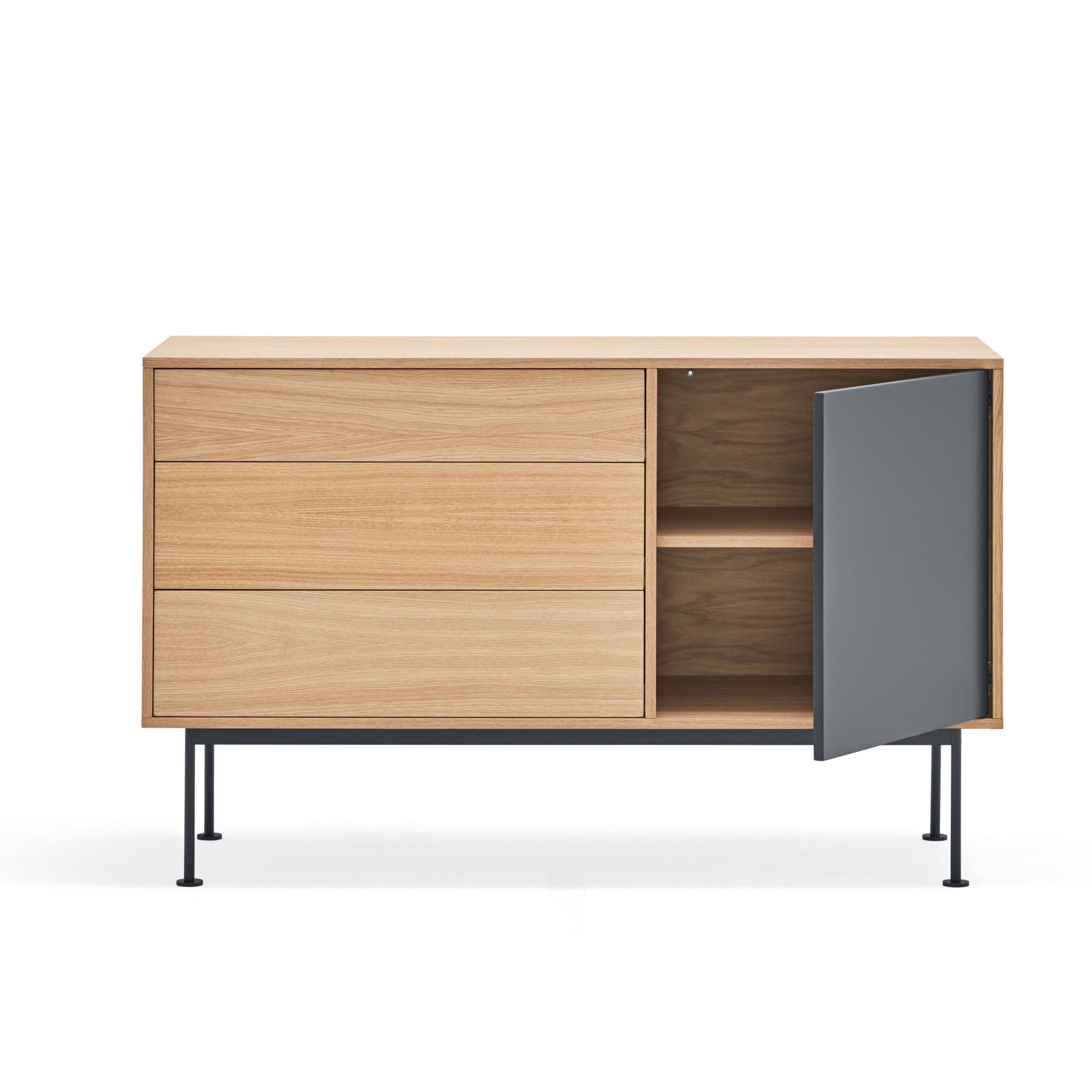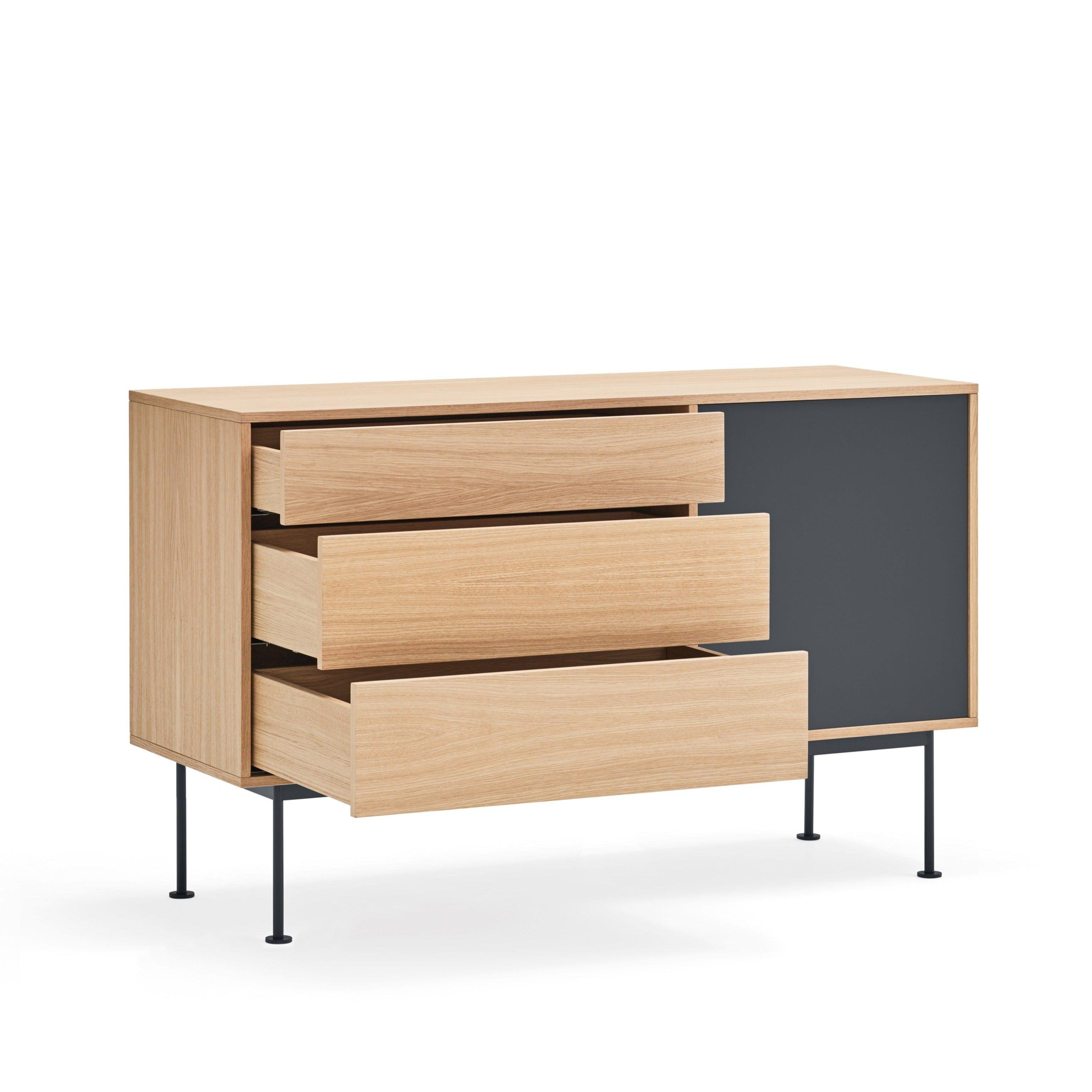 Minimalistyczne podejście widać również w konstrukcji szafka do salonu Yoko. Dzięki zastosowaniu pojemnych szuflad, a także szafek z kilkoma półkami, możesz lepiej zagospodarować przestrzeń. Minimalistyczna szafka Yoko świetnie sprawdzi się w niemal każdym pomieszczeniu.