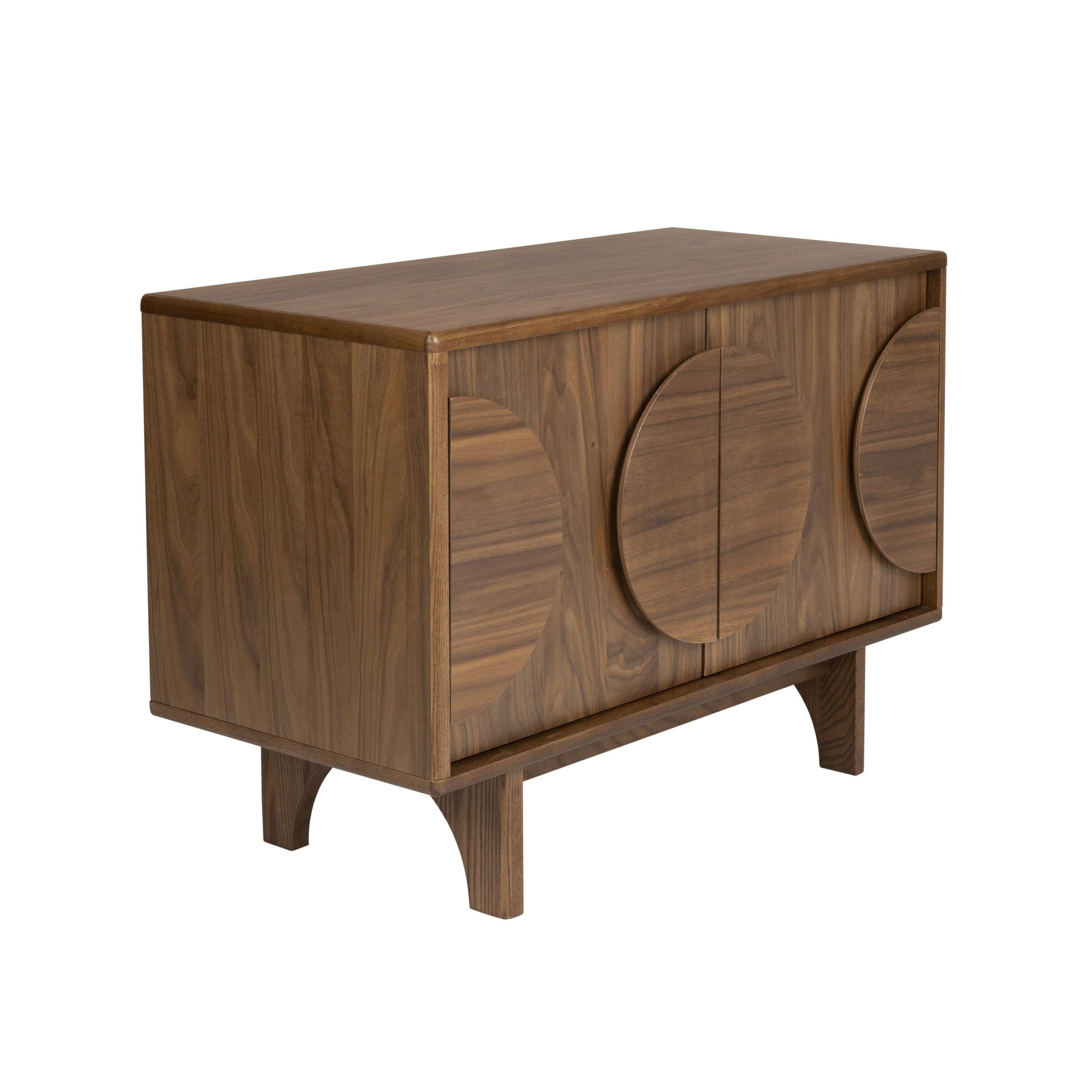 Ciesz się dużą przestrzenią do przechowywania bez rezygnacji ze stylu dzięki szafce Groove. Charakteryzuje się okrągłymi drewnianymi elementami na drzwiach oraz eleganckimi, okrągłymi nogami, które dodają unikalnego akcentu. Groove to doskonałe połączenie stylu i funkcjonalności; bez trudu komponuje się z każdą przestrzenią.