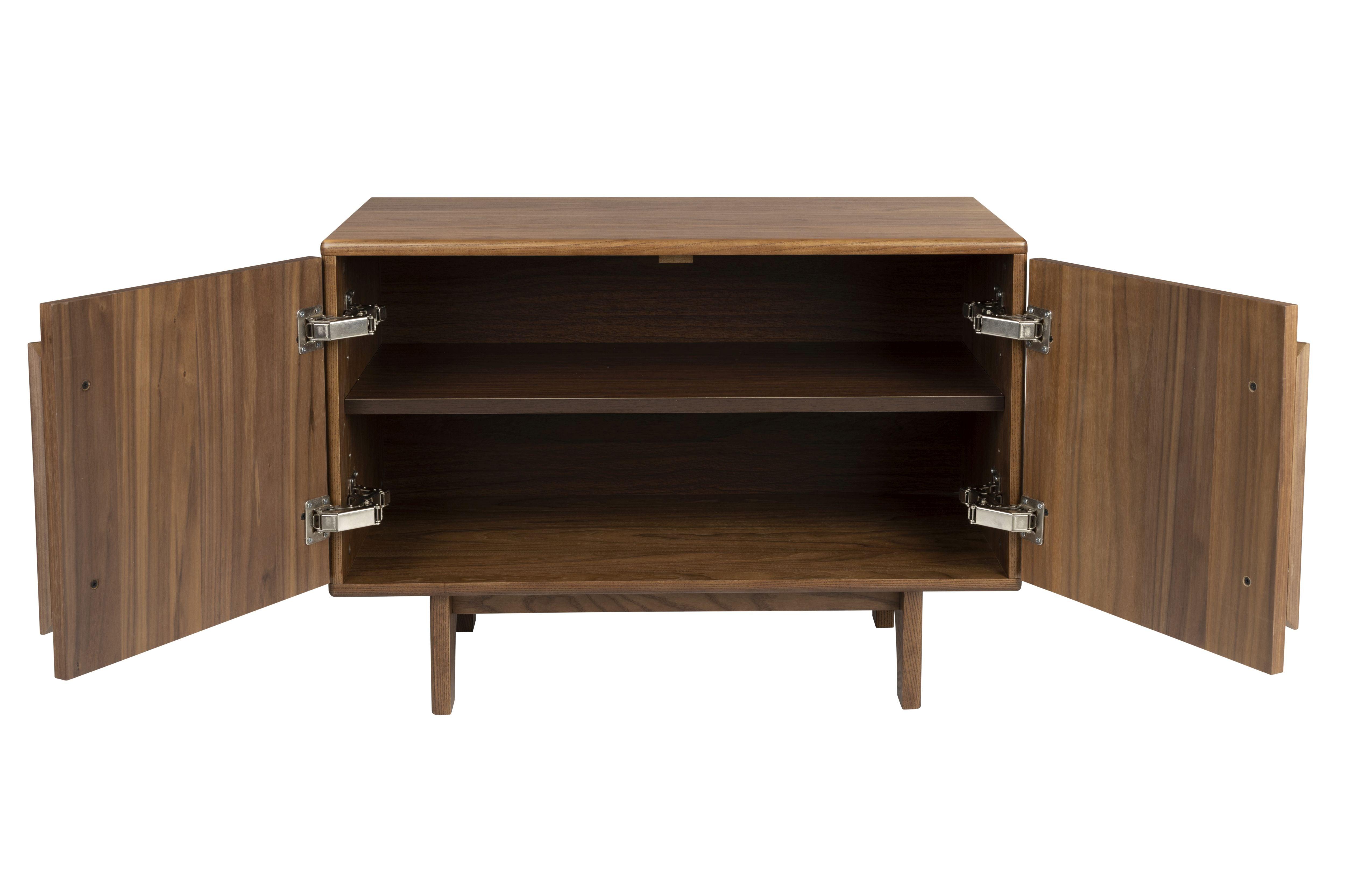 Za tymi stylowymi drzwiami kryje się obszerna przestrzeń do przechowywania. Szafkę wykonano z naturalnego forniru drewnianego. Groove dostępny jest w różnych kolorach i rozmiarach.